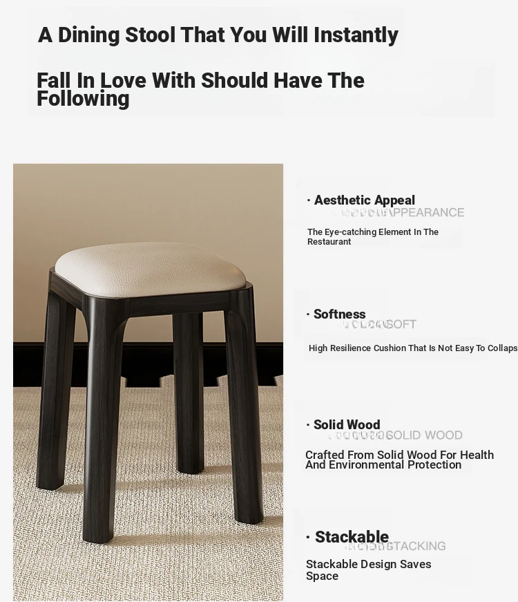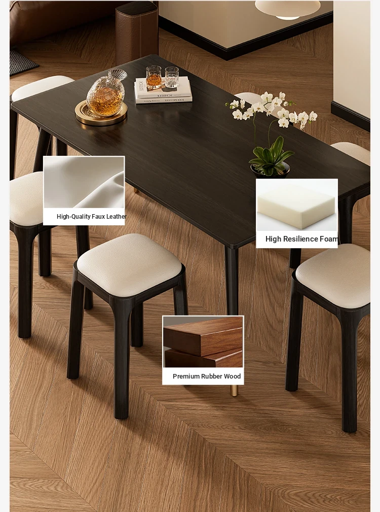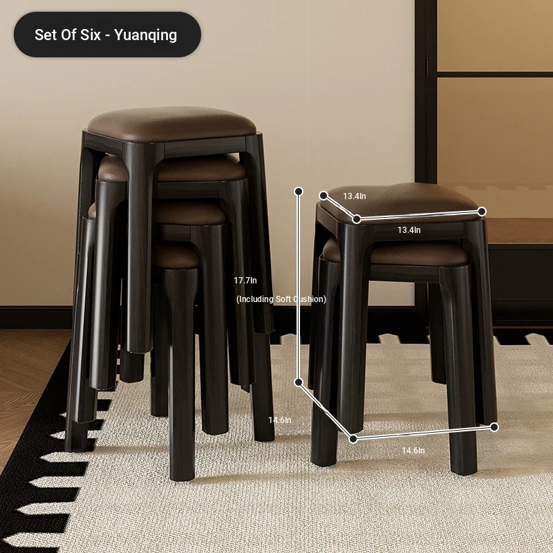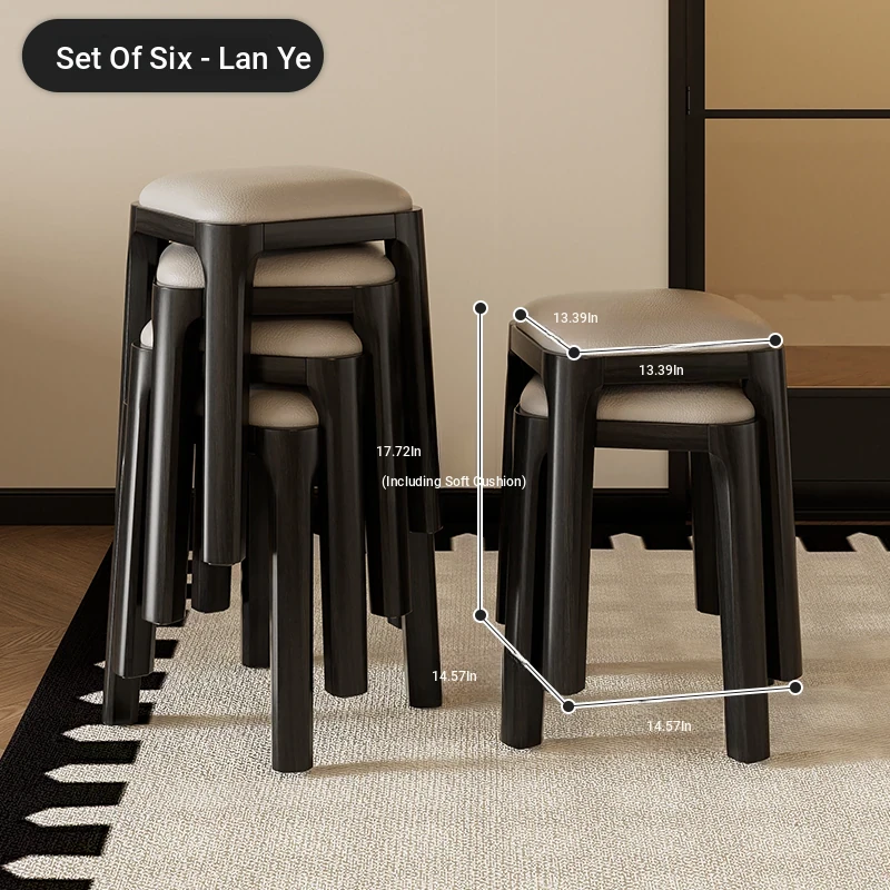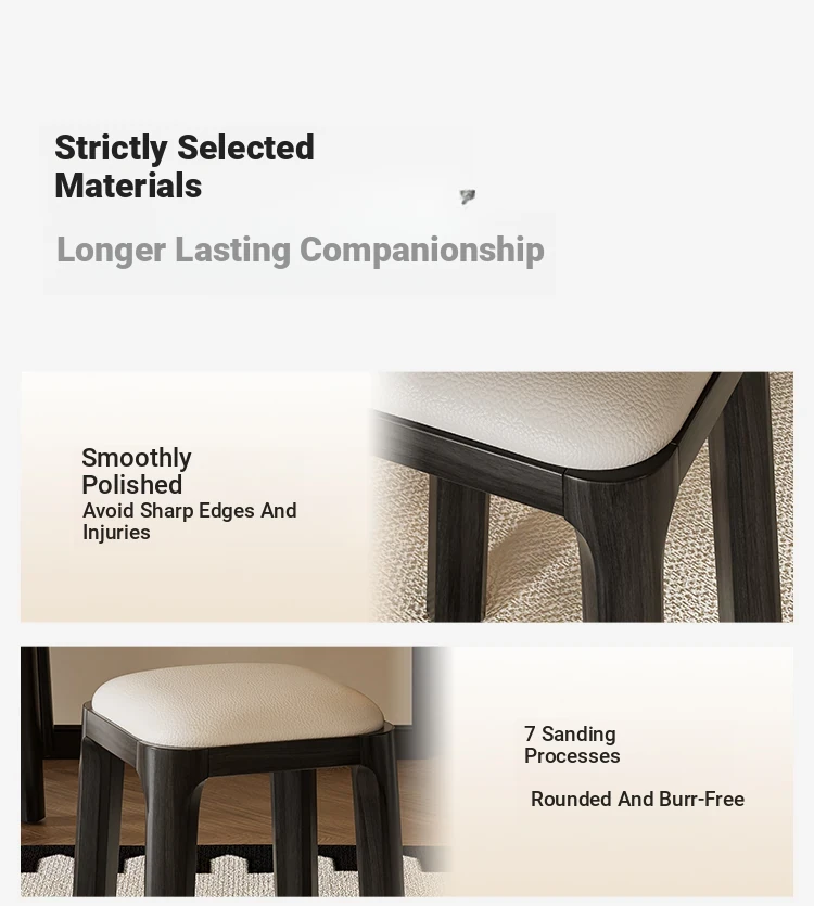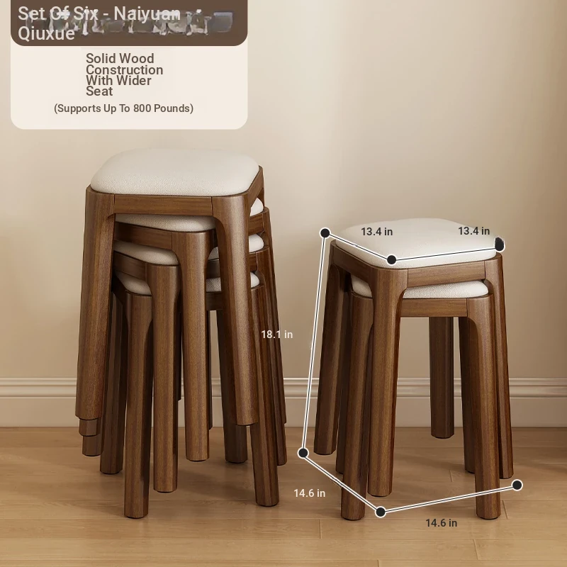 Modern Solid Wood Stool – Versatile Dining and Living Room Bench, Stackable, Upholstered Square and Round Options, Perfect for Home Use