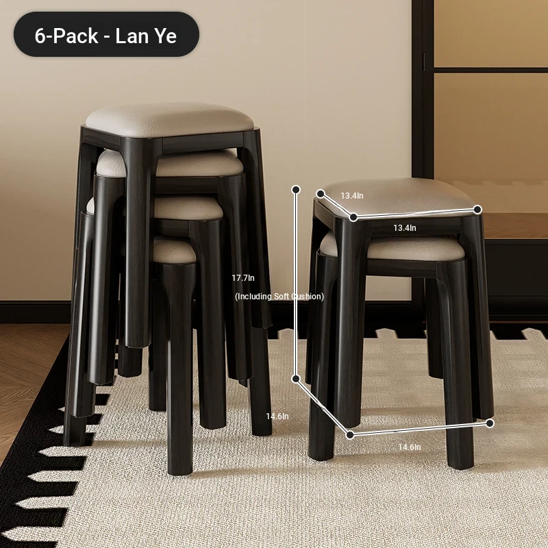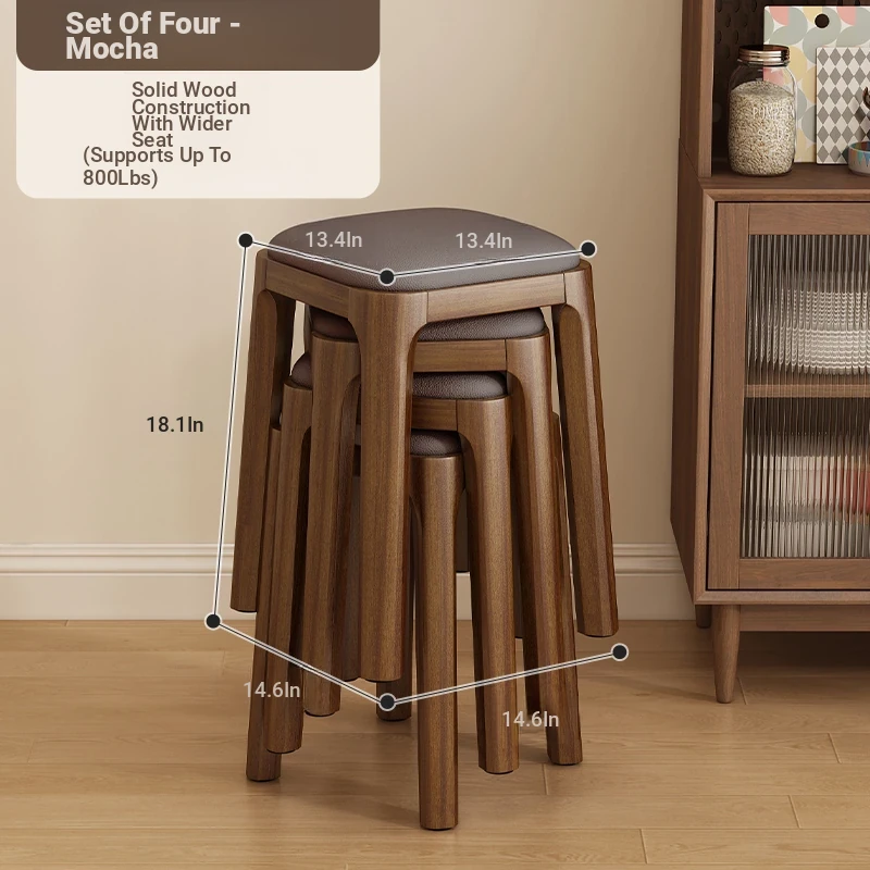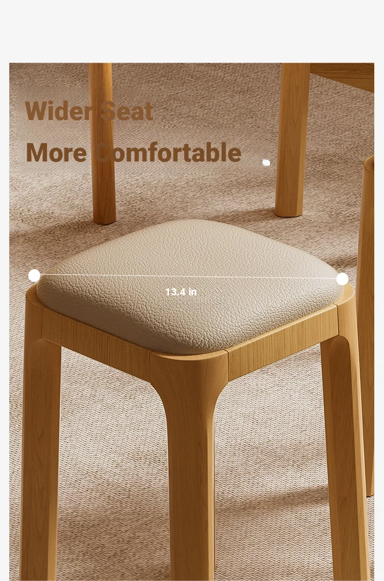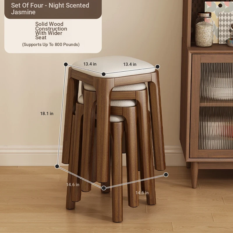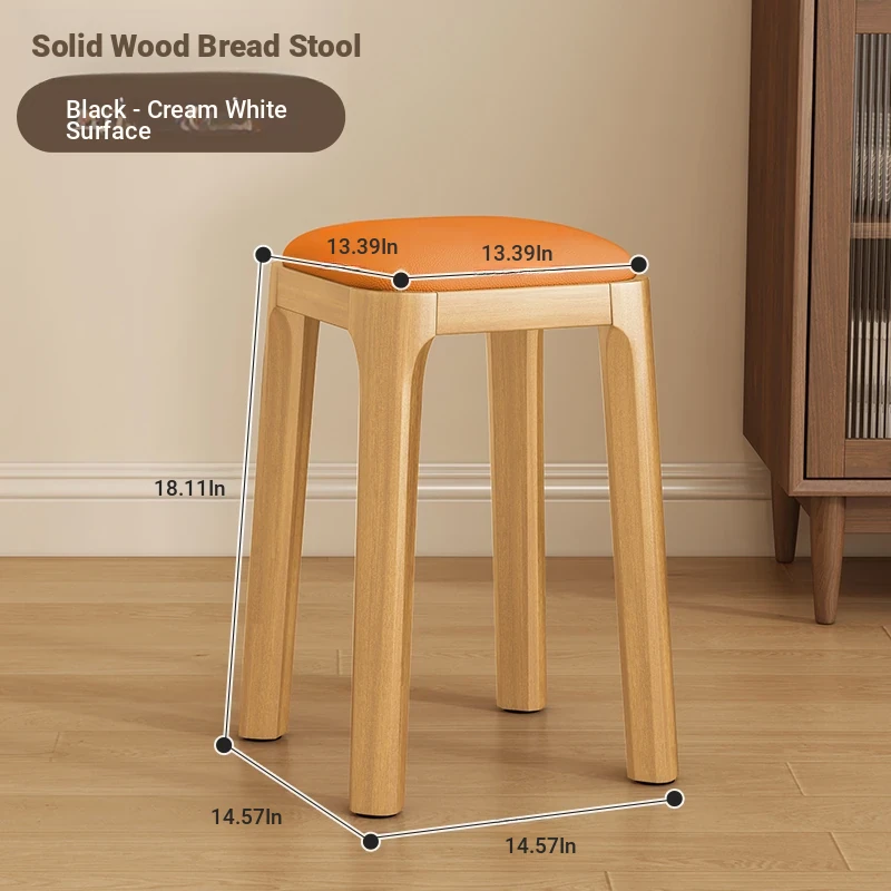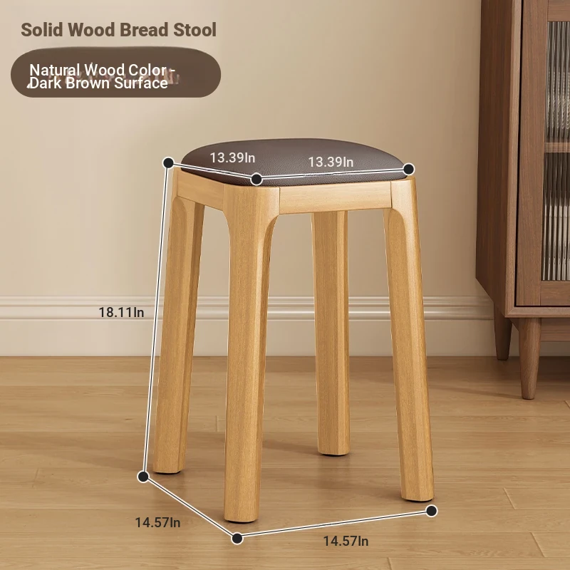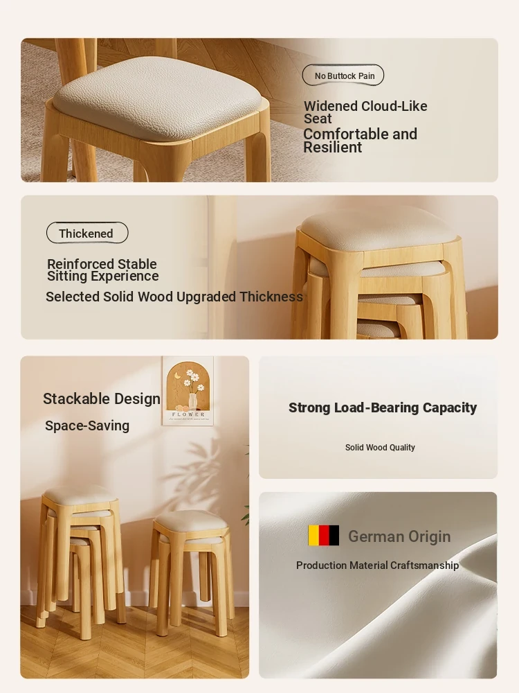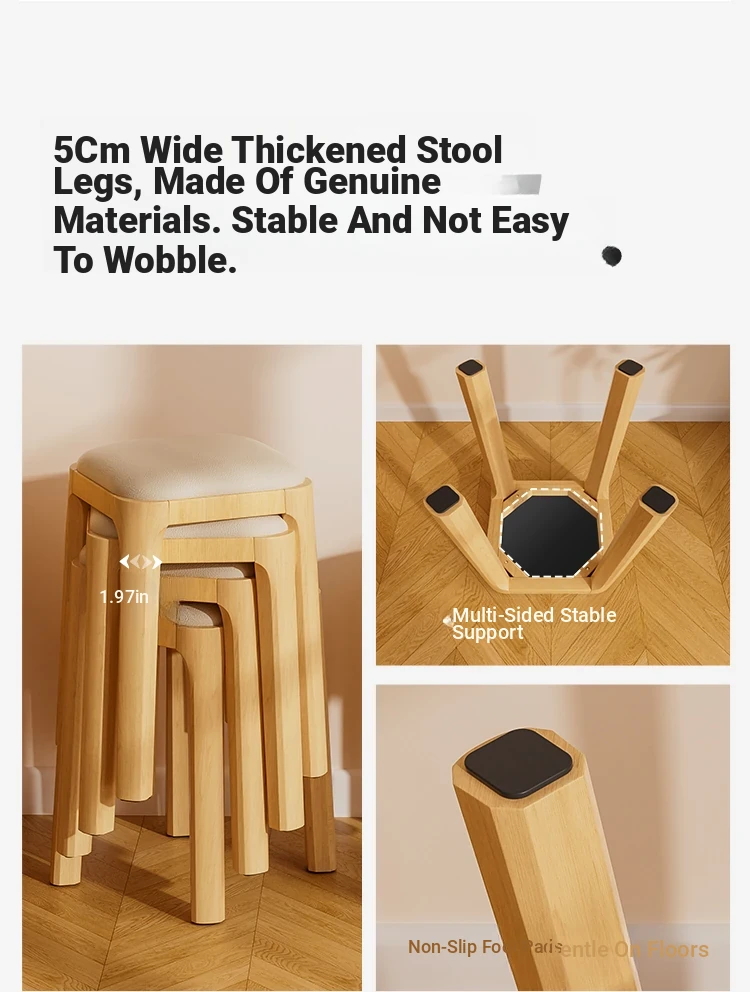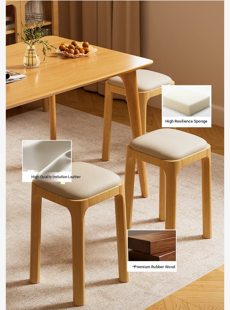 Modern Solid Wood Stool for Home Use - Soft-Padded Square Dining Chair, Stackable and Minimalist Design, Perfect for Living Room, Versatile Low Bench and Small Stool.