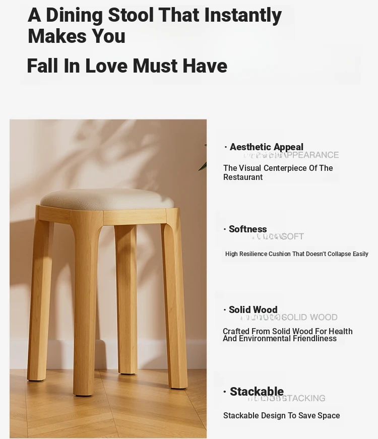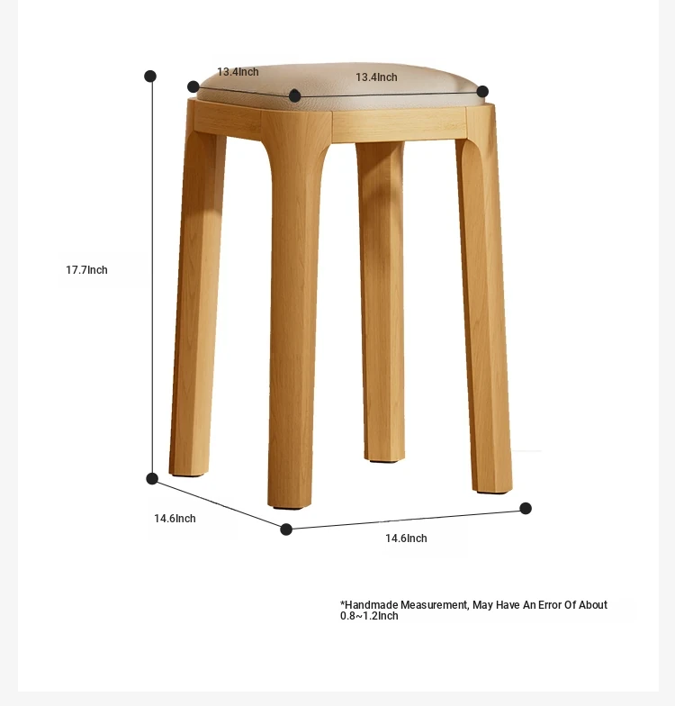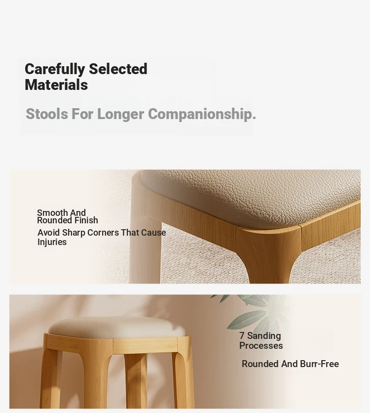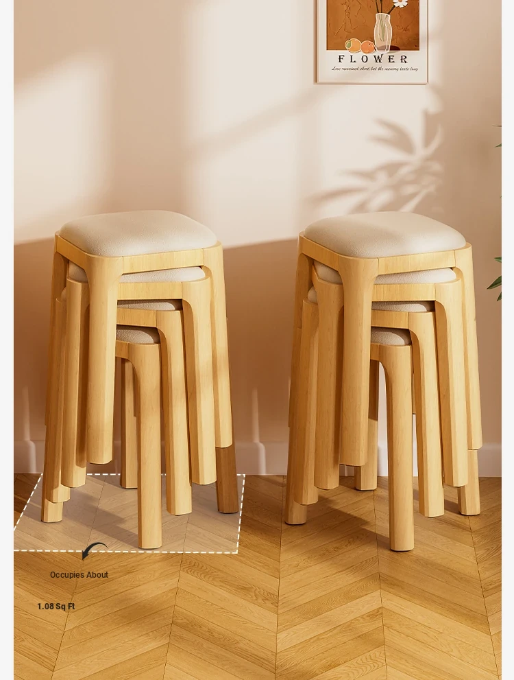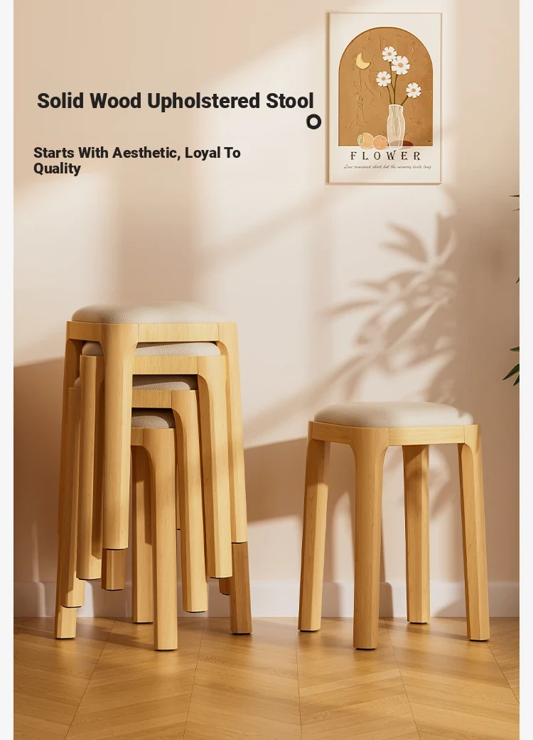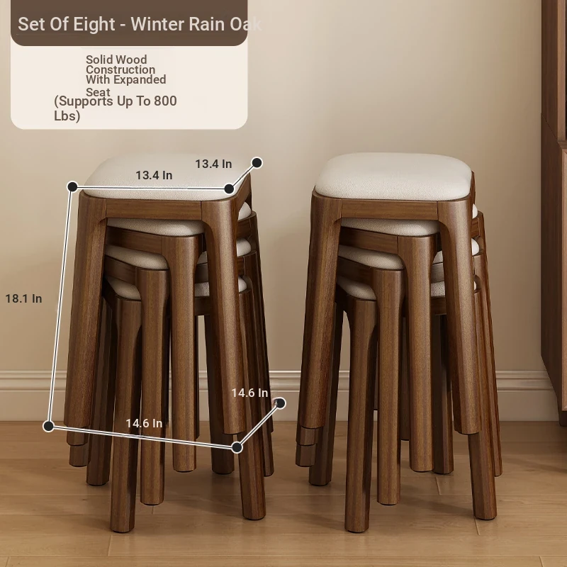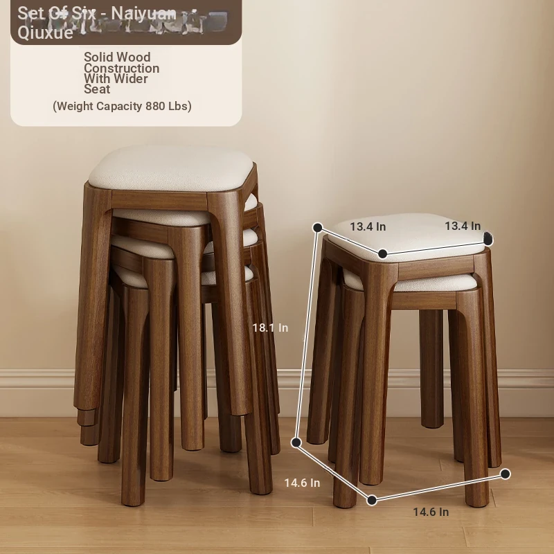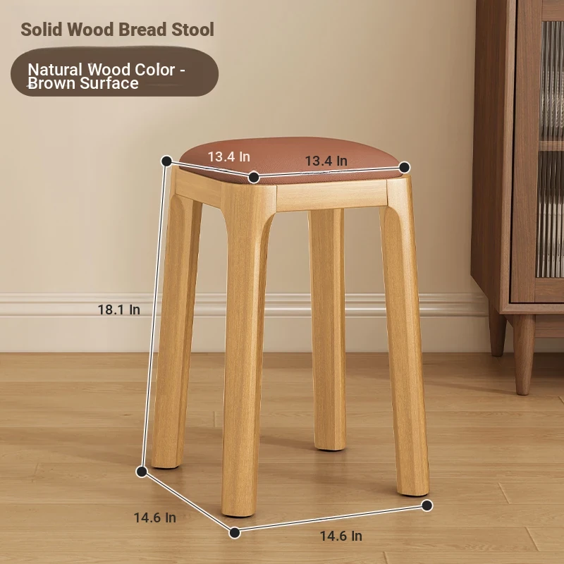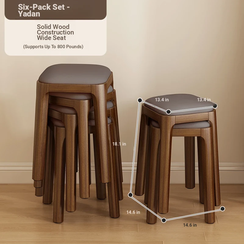 Modern Solid Wood Stool for Home Use - Soft-Padded Square Dining Chair, Stackable and Minimalist Design, Perfect for Living Room, Versatile Low Bench and Small Stool.