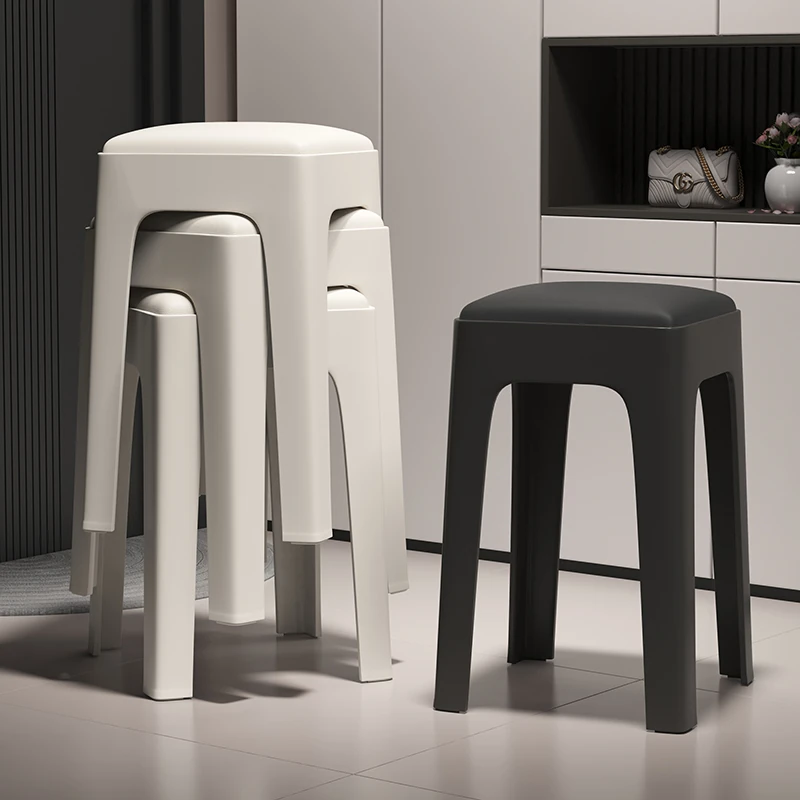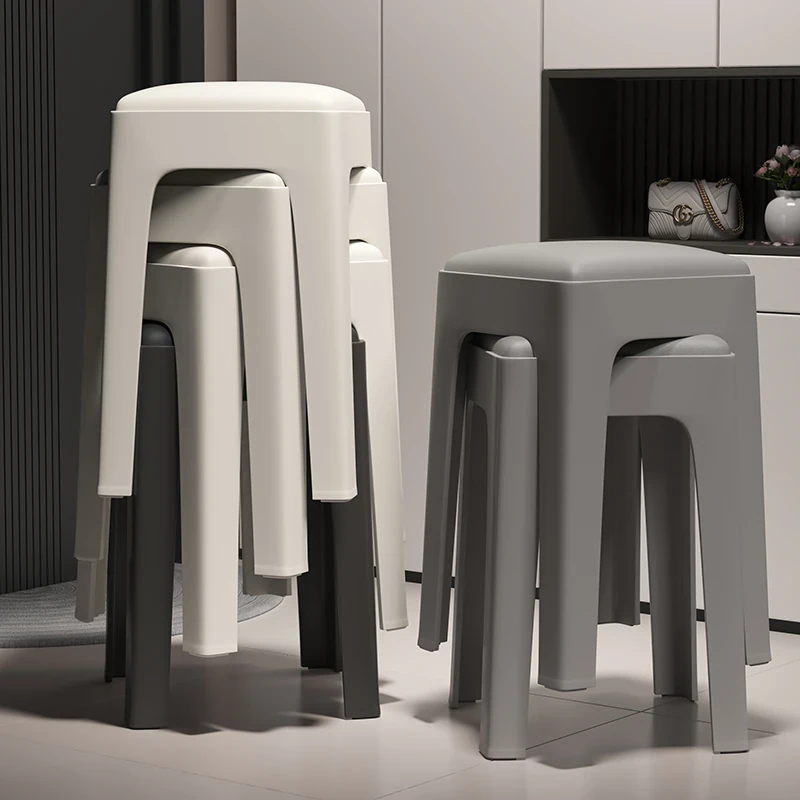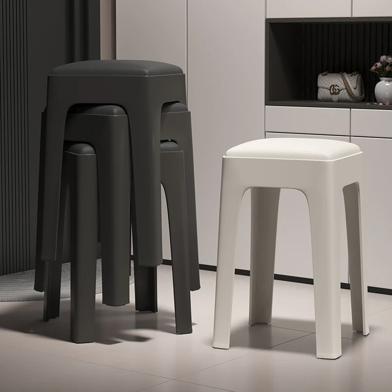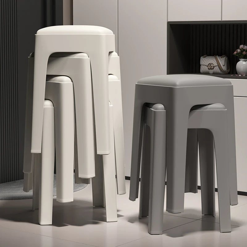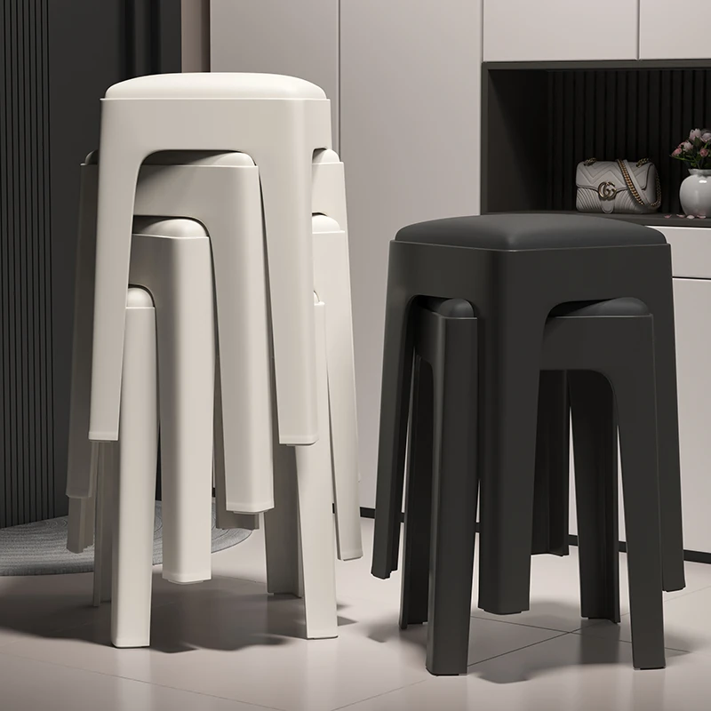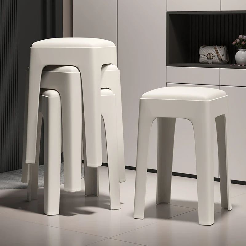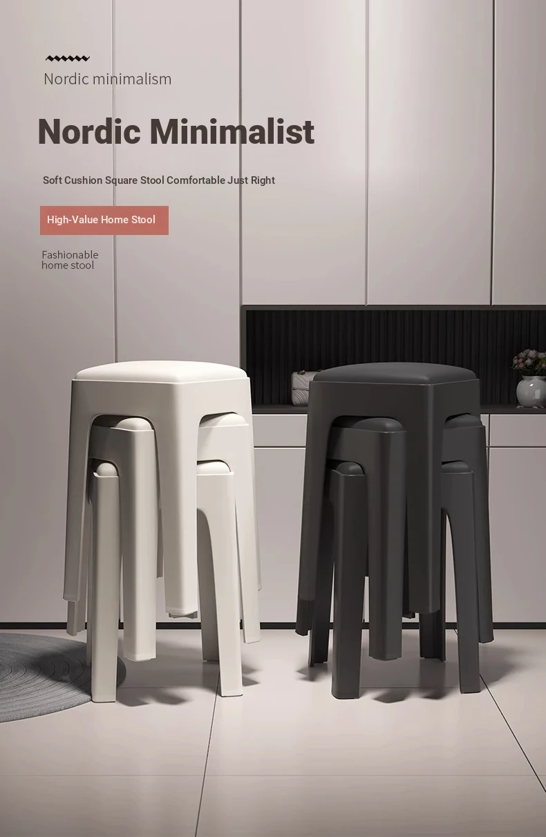 Modern Stackable Plastic Dining Stool - 2024 New Design for Home Use, Minimalist Square Chair for Dining Room and Living Room, Perfect High Bench for Versatile Seating Solutions.