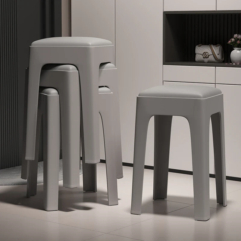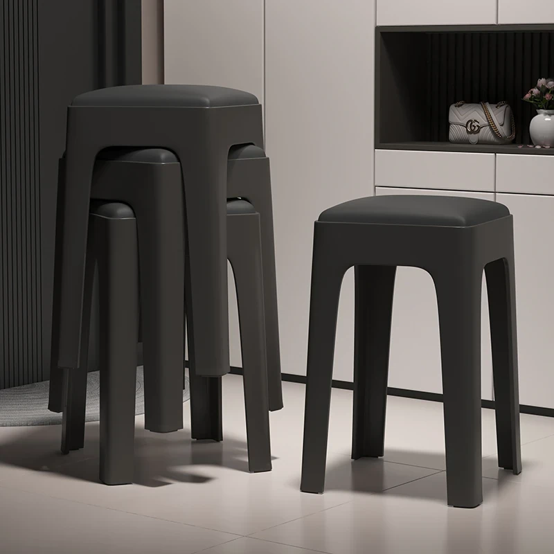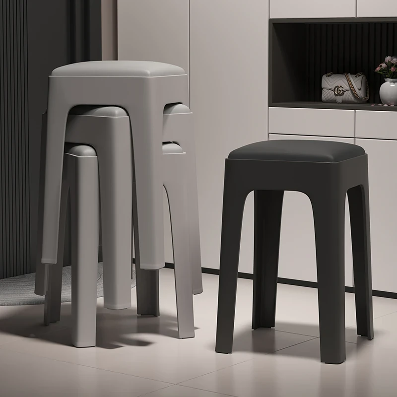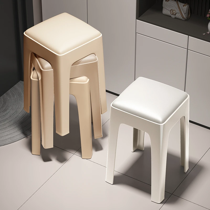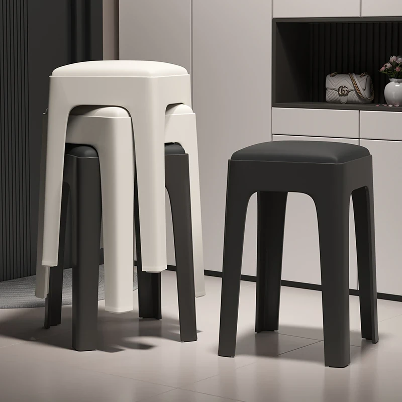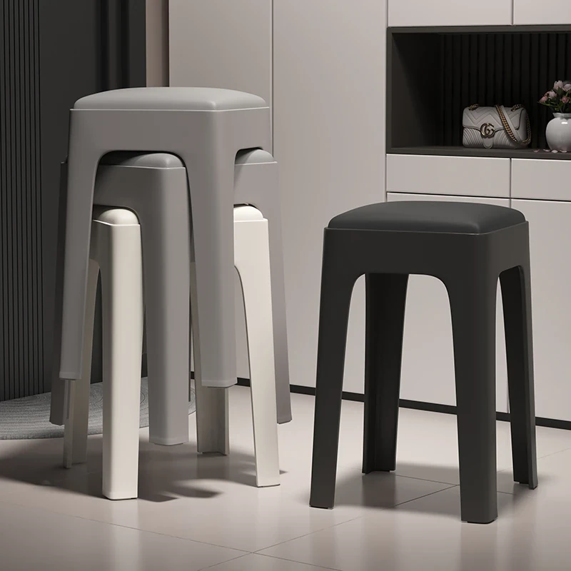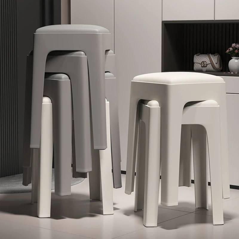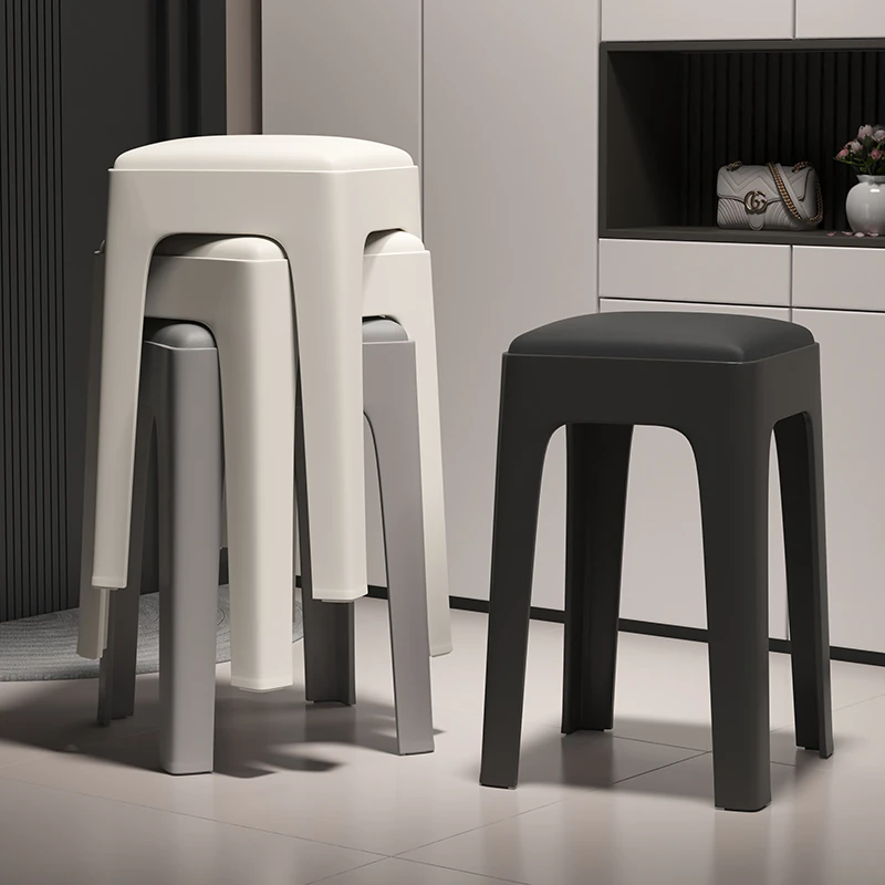 Modern Stackable Plastic Dining Stool - 2024 New Design for Home Use, Minimalist Square Chair for Dining Room and Living Room, Perfect High Bench for Versatile Seating Solutions.