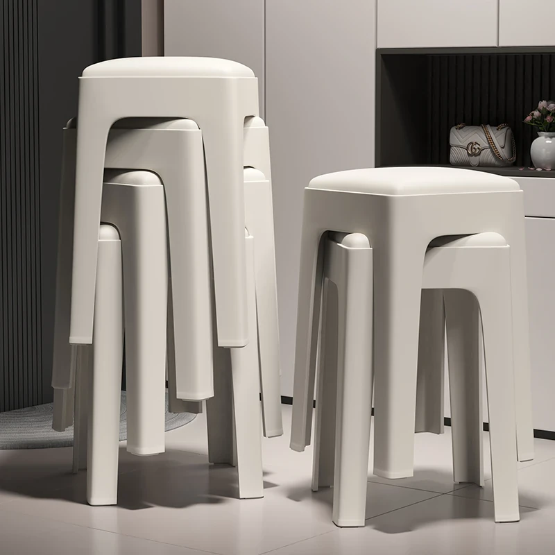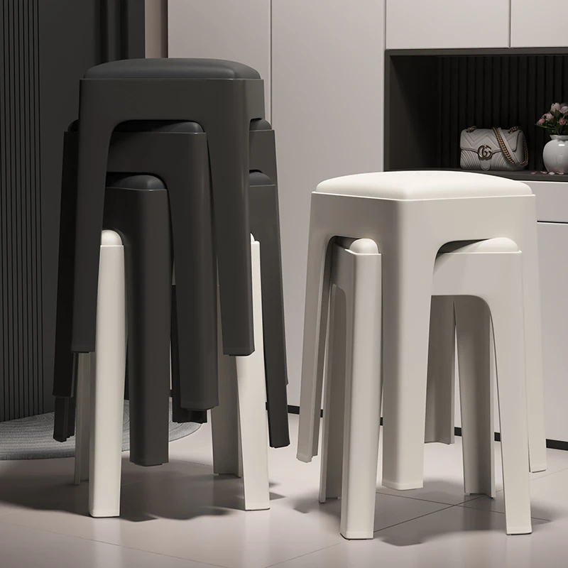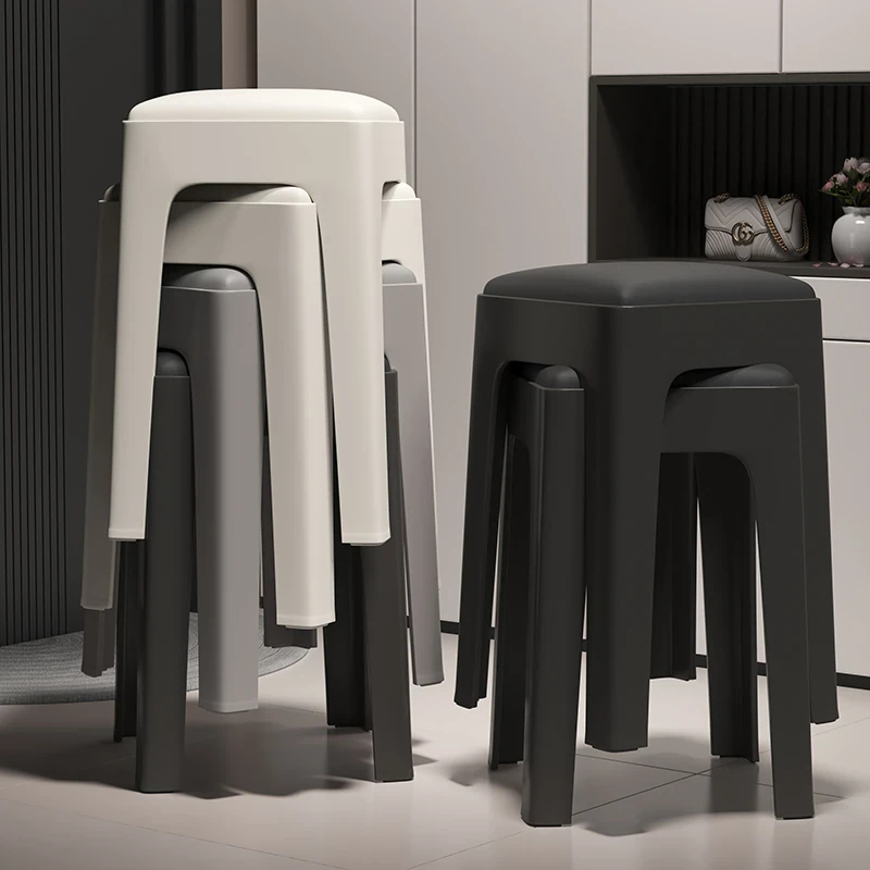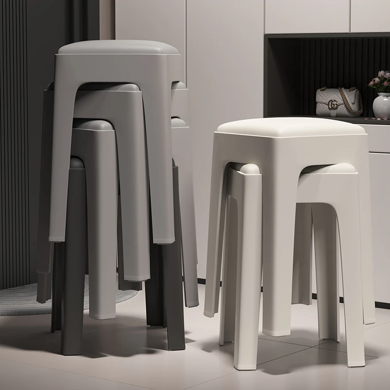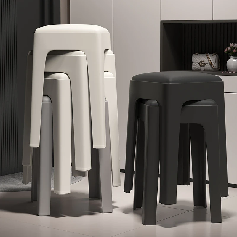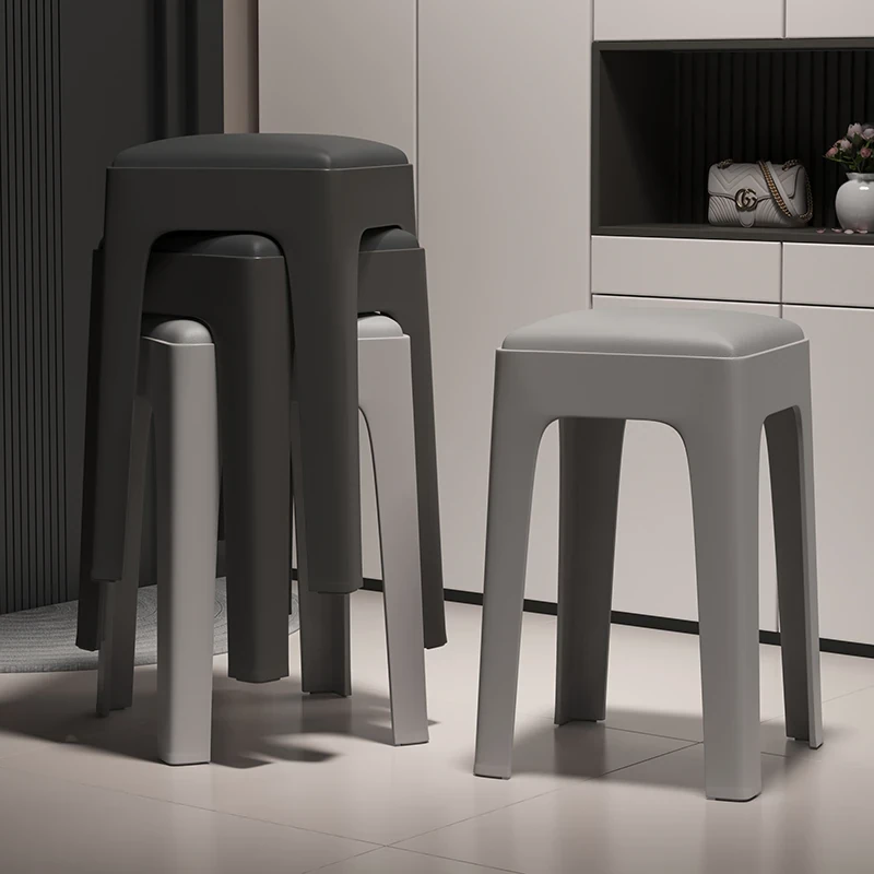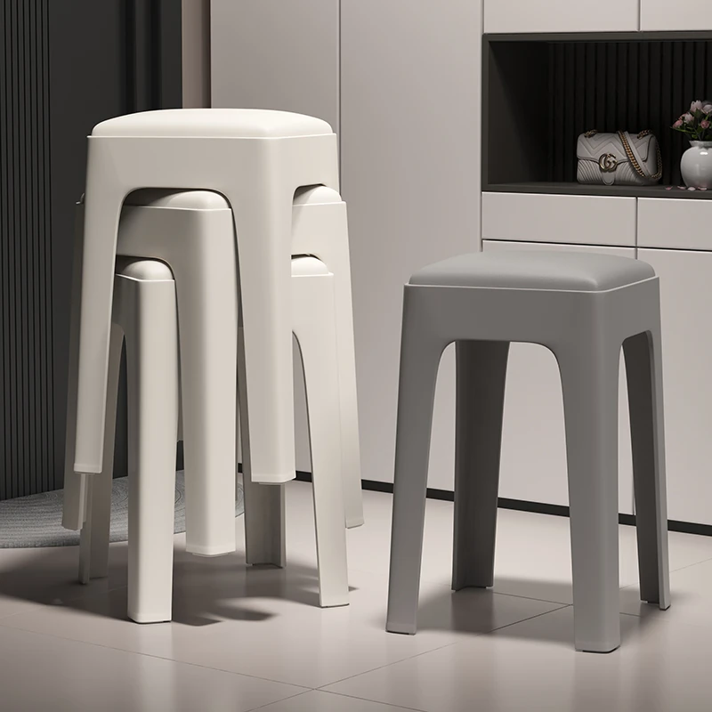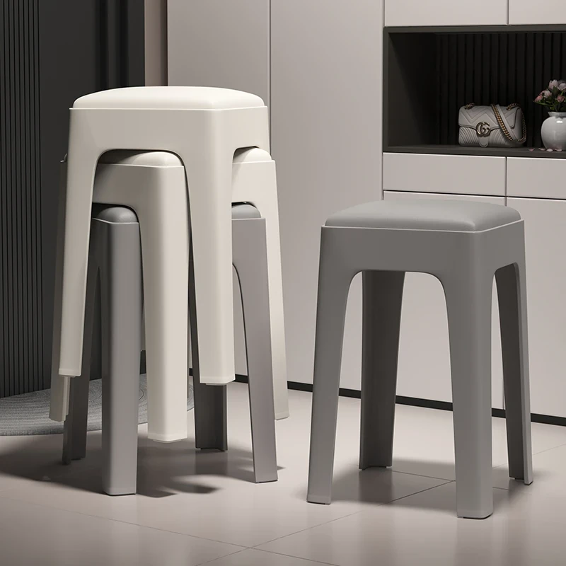 Modern Stackable Plastic Dining Stool - 2024 New Design for Home Use, Minimalist Square Chair for Dining Room and Living Room, Perfect High Bench for Versatile Seating Solutions.