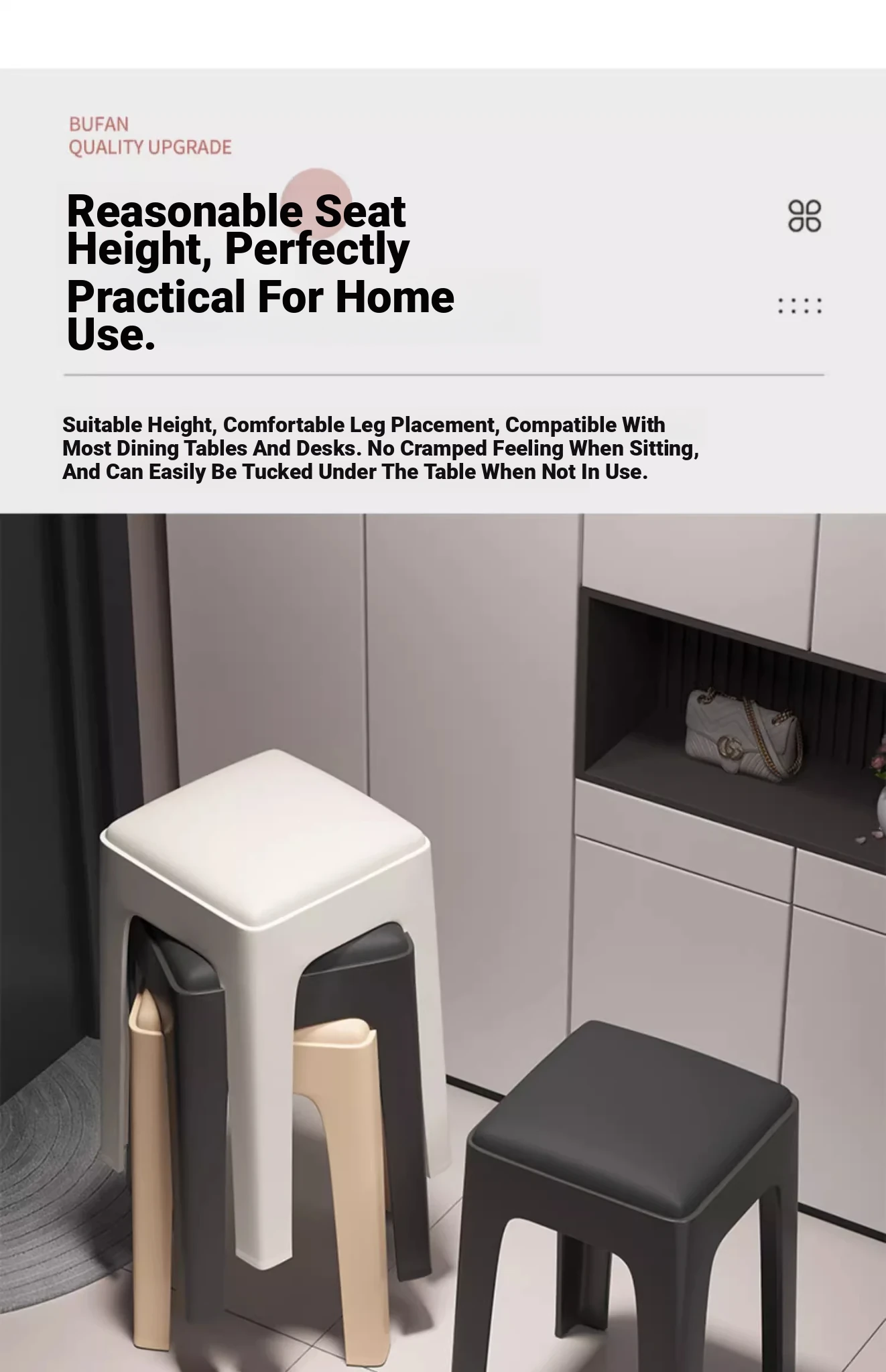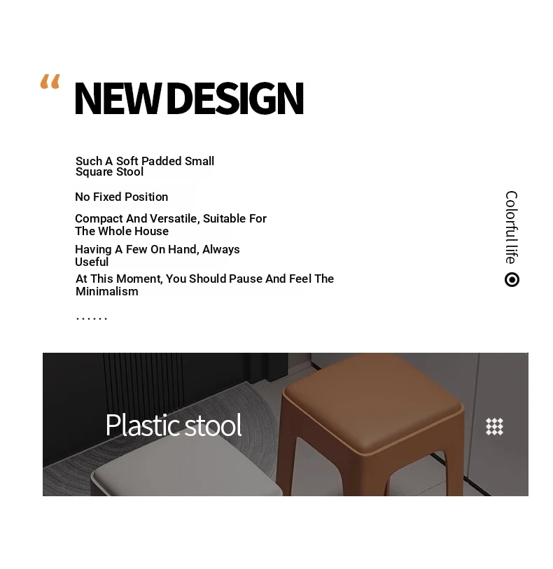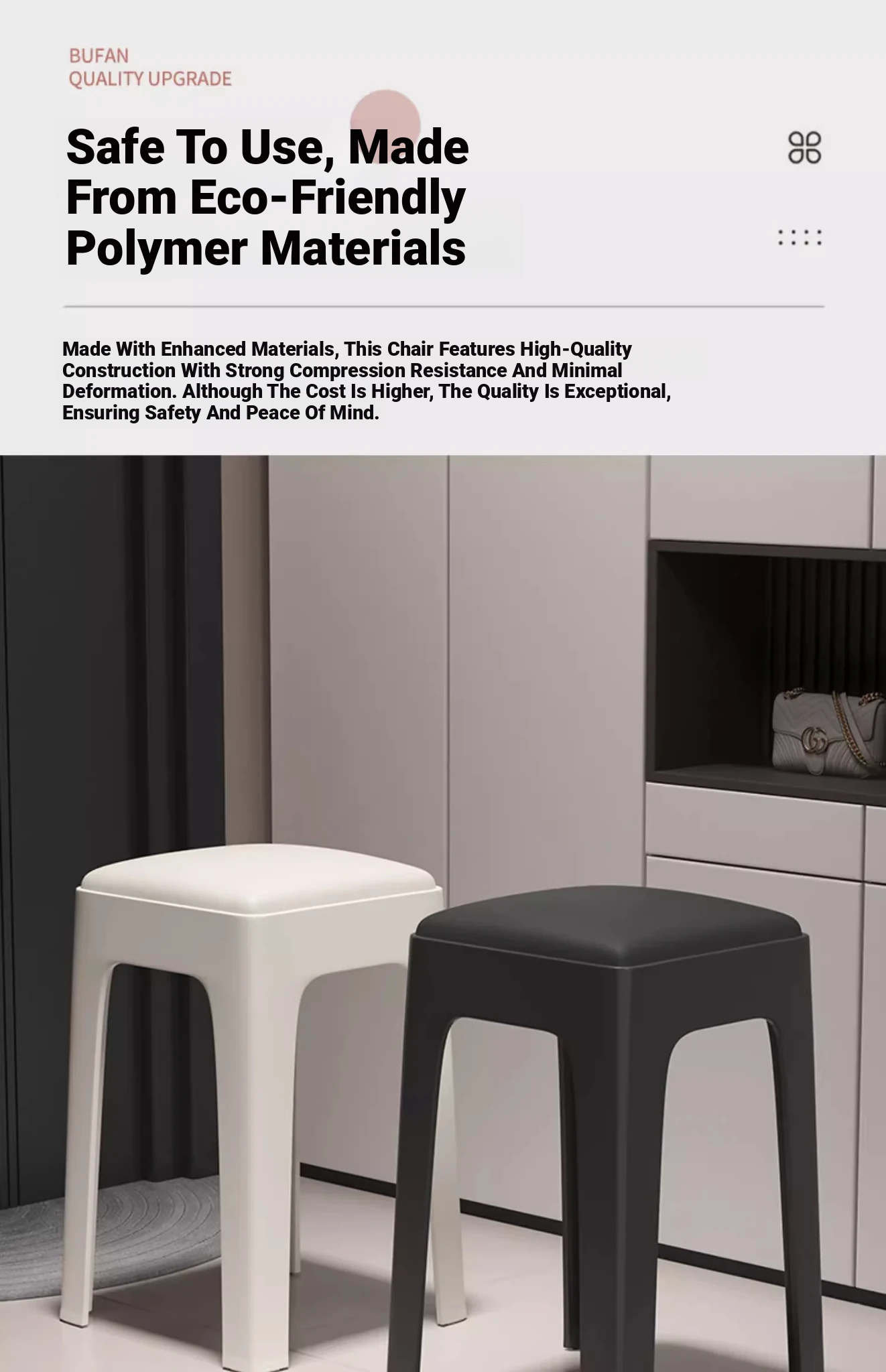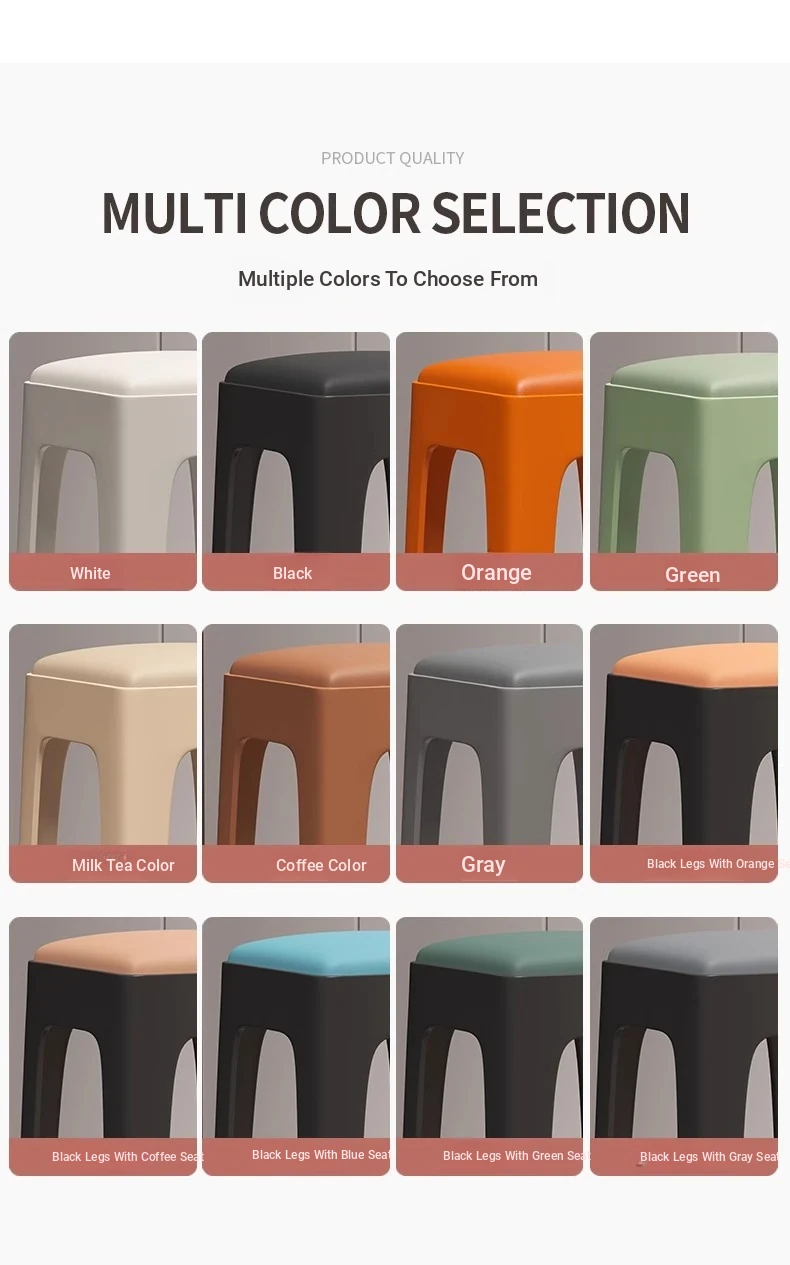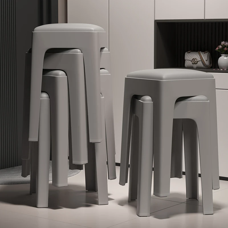 Modern Stackable Plastic Dining Stool - 2024 New Design for Home Use, Minimalist Square Chair for Dining Room and Living Room, Perfect High Bench for Versatile Seating Solutions.