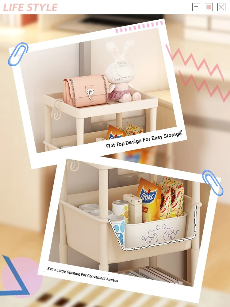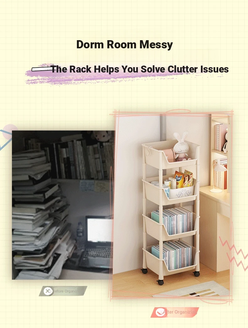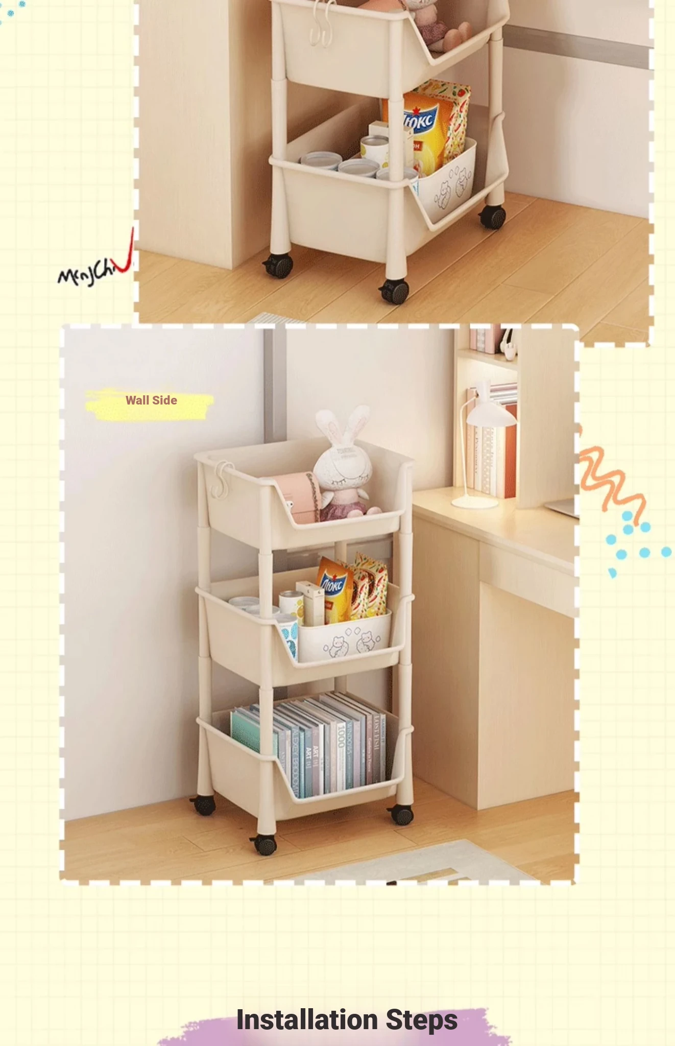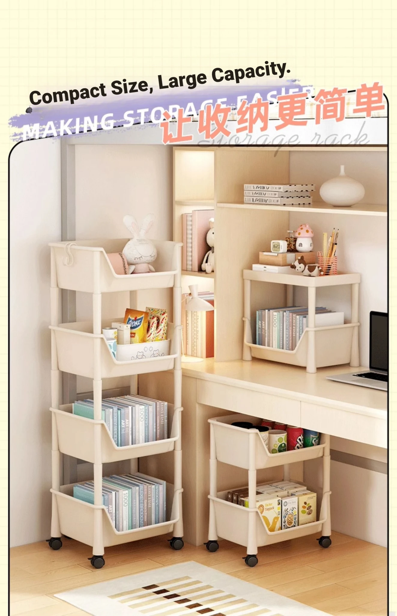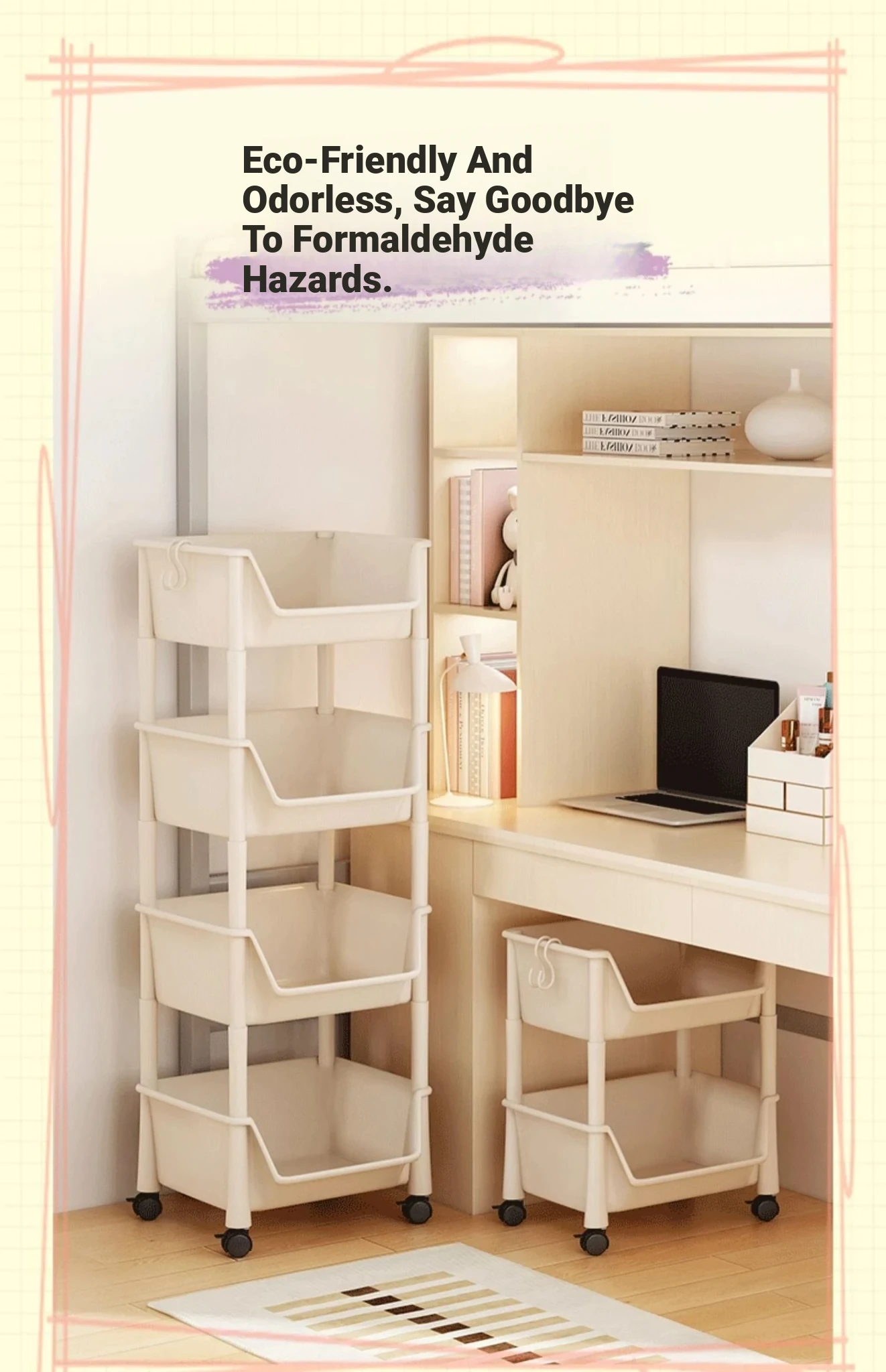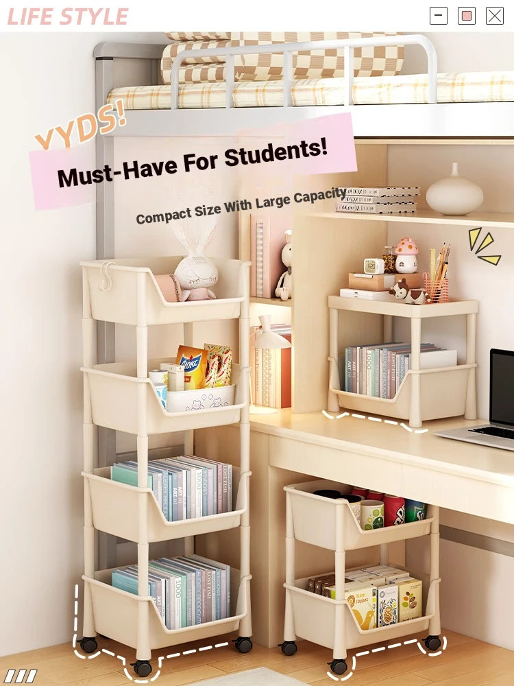 Multifunctional Rolling Bookshelf - Multi-Tier Storage Cart for Toys and Snacks, Perfect for Home and Dorm Use, Space-Saving Organizer on Wheels