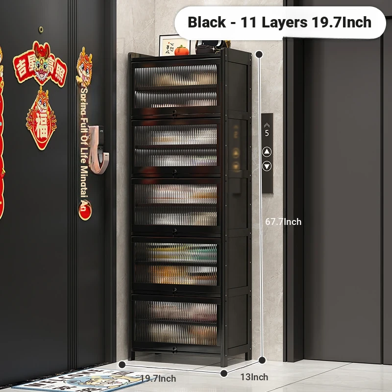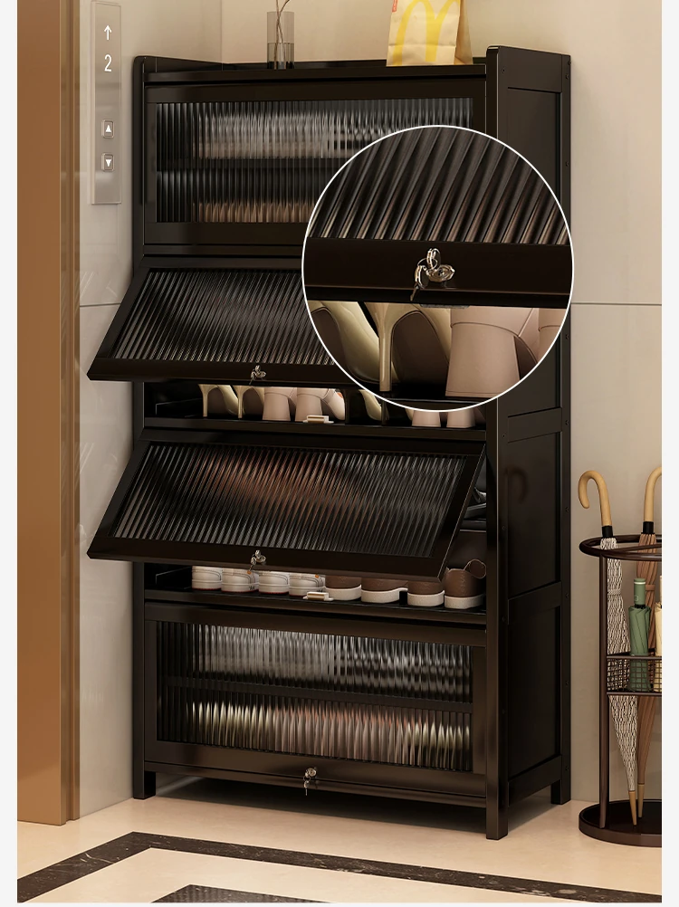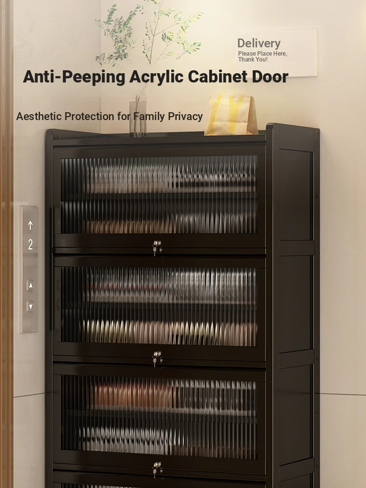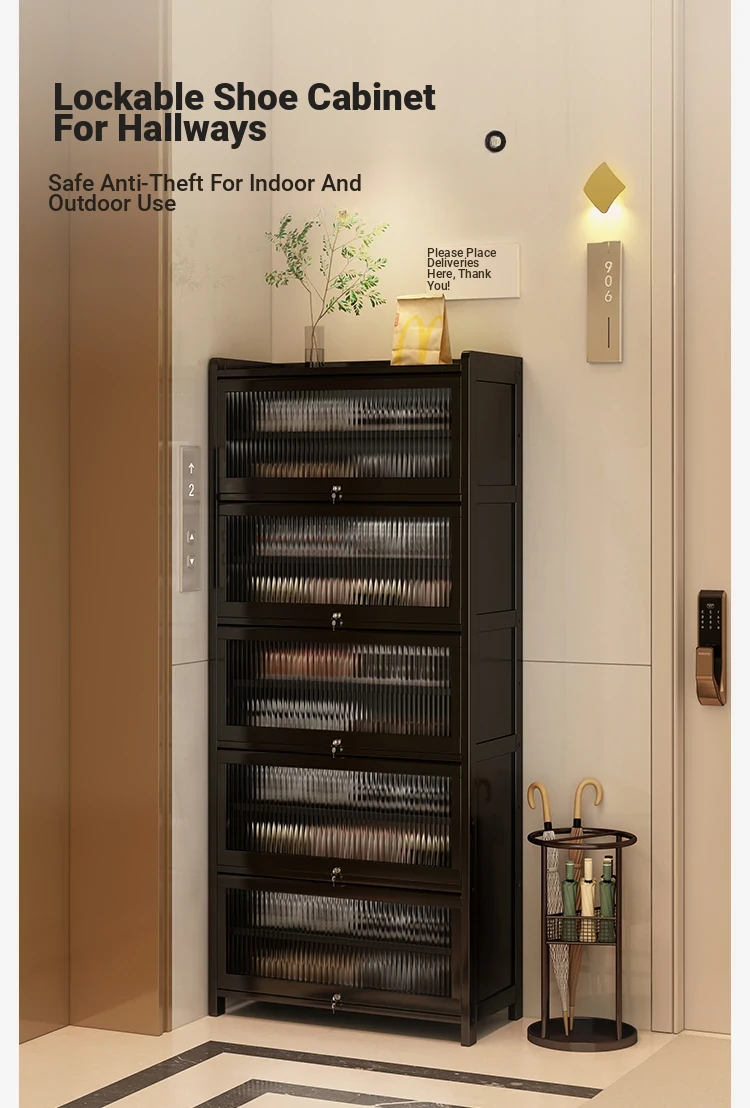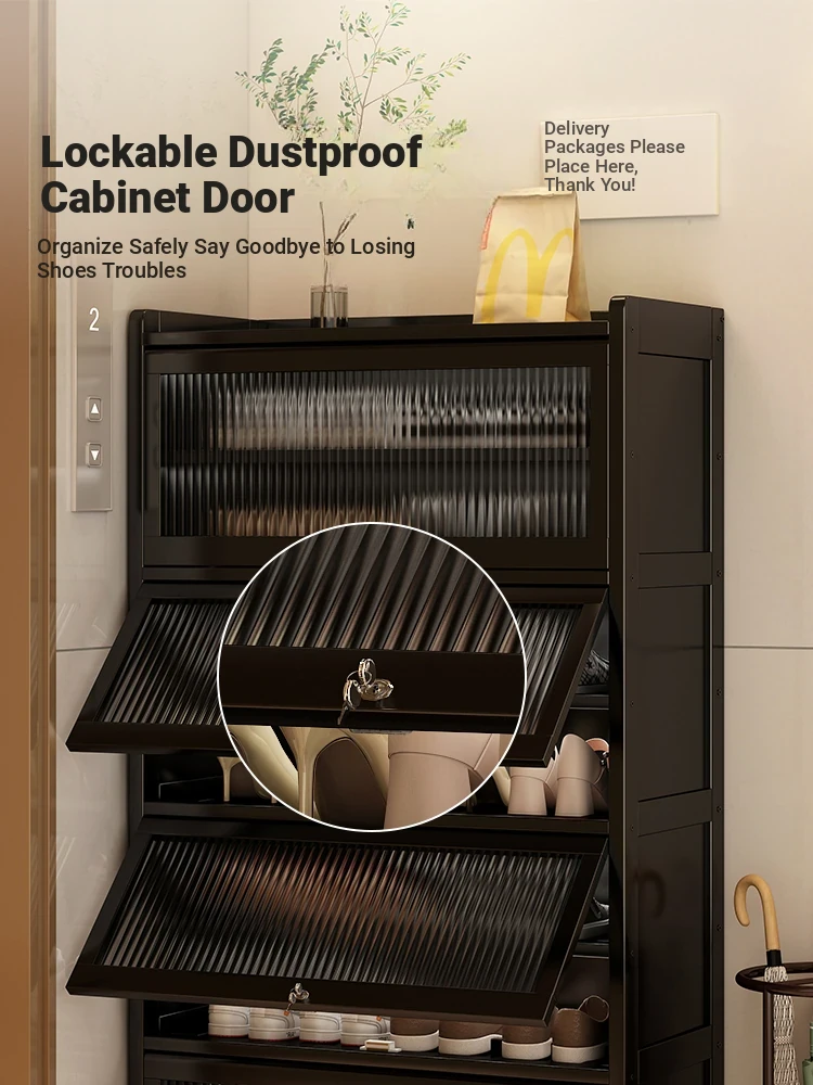 Multi-Layer Narrow Entryway Shoe Cabinet with Door, Dust-Proof Design, Lockable Shoe Rack for Hallway - Space-Saving Storage Solution for Home