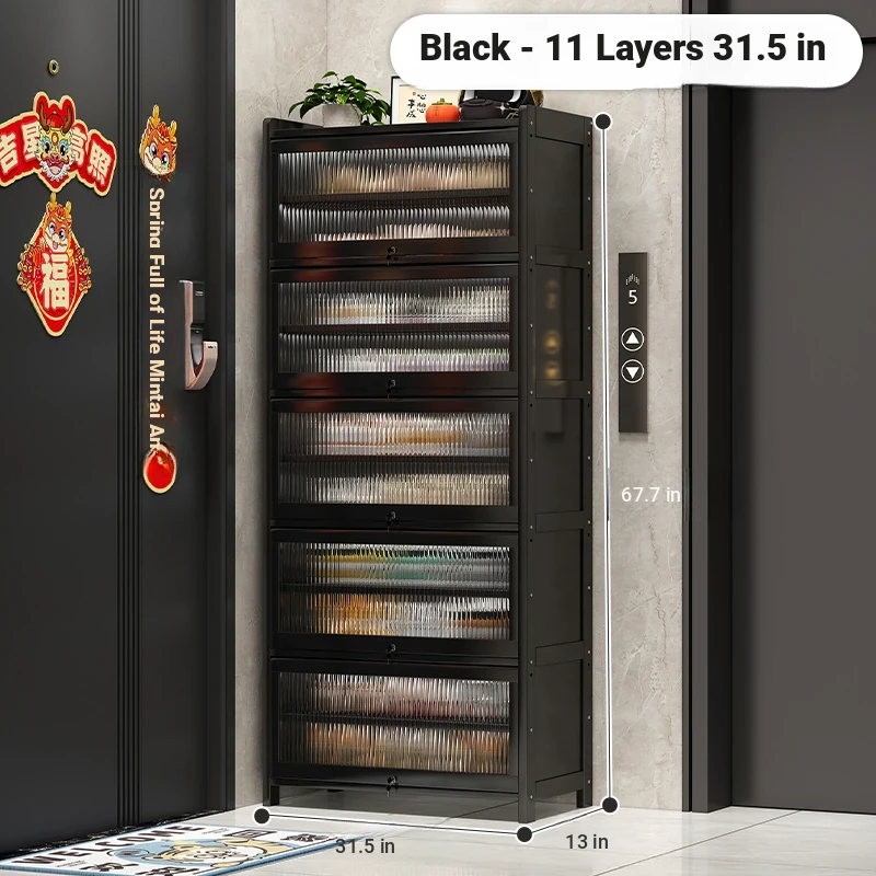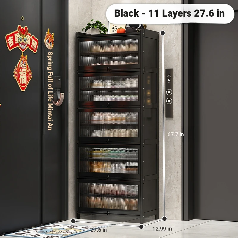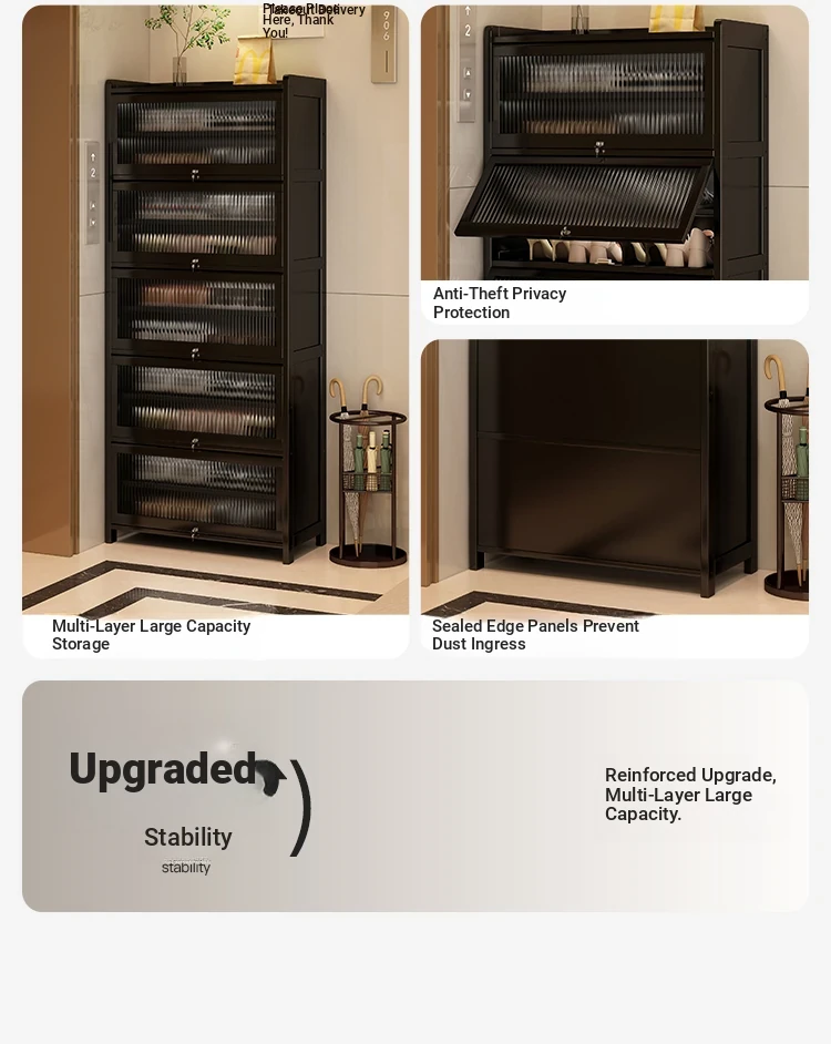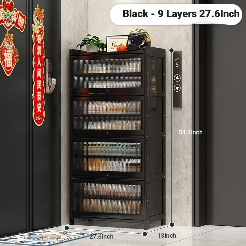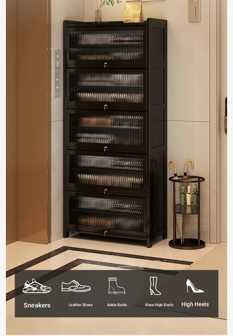 Multi-Layer Narrow Entryway Shoe Cabinet with Door, Dust-Proof Design, Lockable Shoe Rack for Hallway - Space-Saving Storage Solution for Home