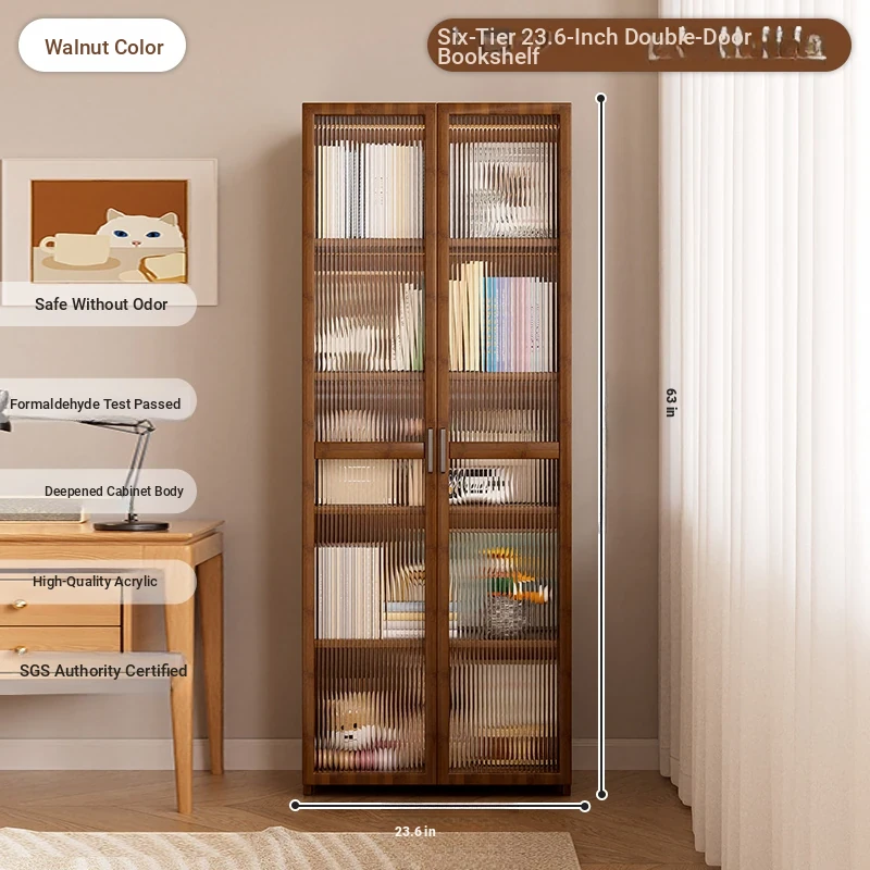 Translucent Door, Six-storey 23.62in-Double Door Bookshelf [Bold thickened]]
