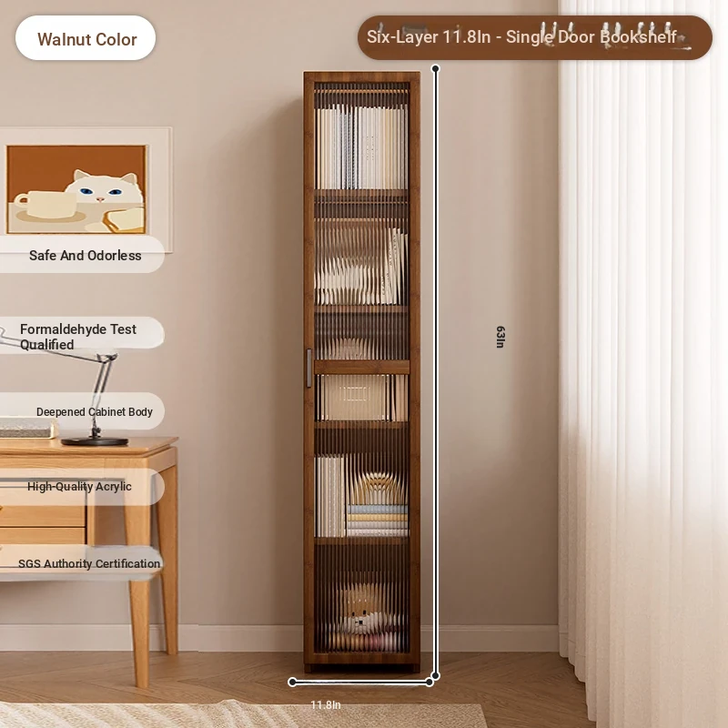 Transparent Door, Seven-storey 11.81in-Single Door Bookshelf [Bold thickened]]