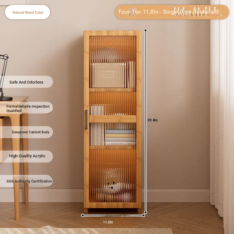 Transparent door, four-story 11.81in-single-door bookshelf [bold thickened]]