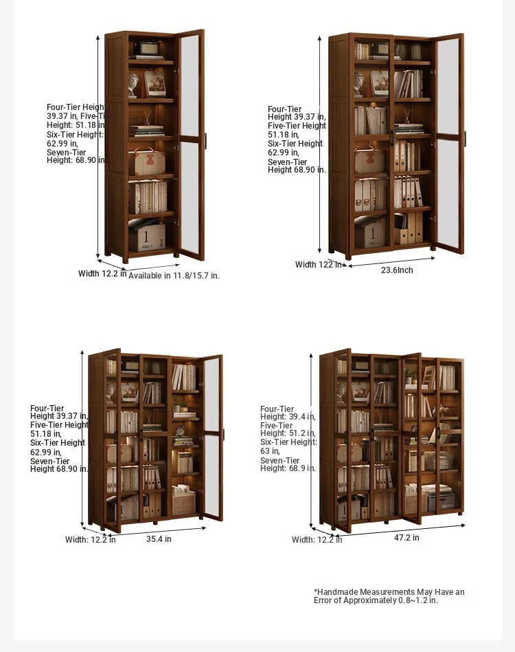 ⭐Main drawing⭐Translucent Door, Seven-storey 23.62in-Double Door Bookshelf [Bold thickened]]