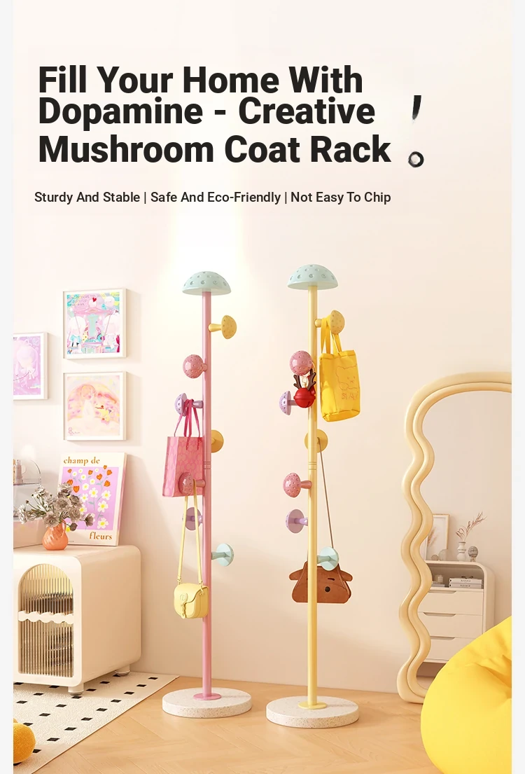 Mushroom Design Floor Coat Rack - Space-Saving Hanging Organizer for Home, Stylish and Functional Clothes & Bag Stand, Perfect for Bedroom Use, Trendy and Practical!
