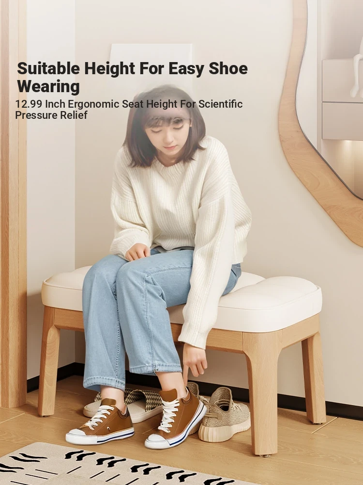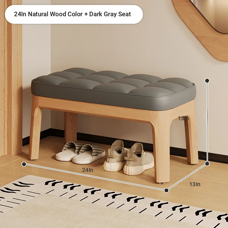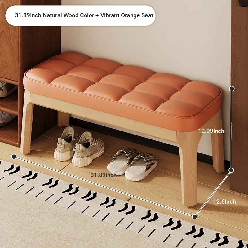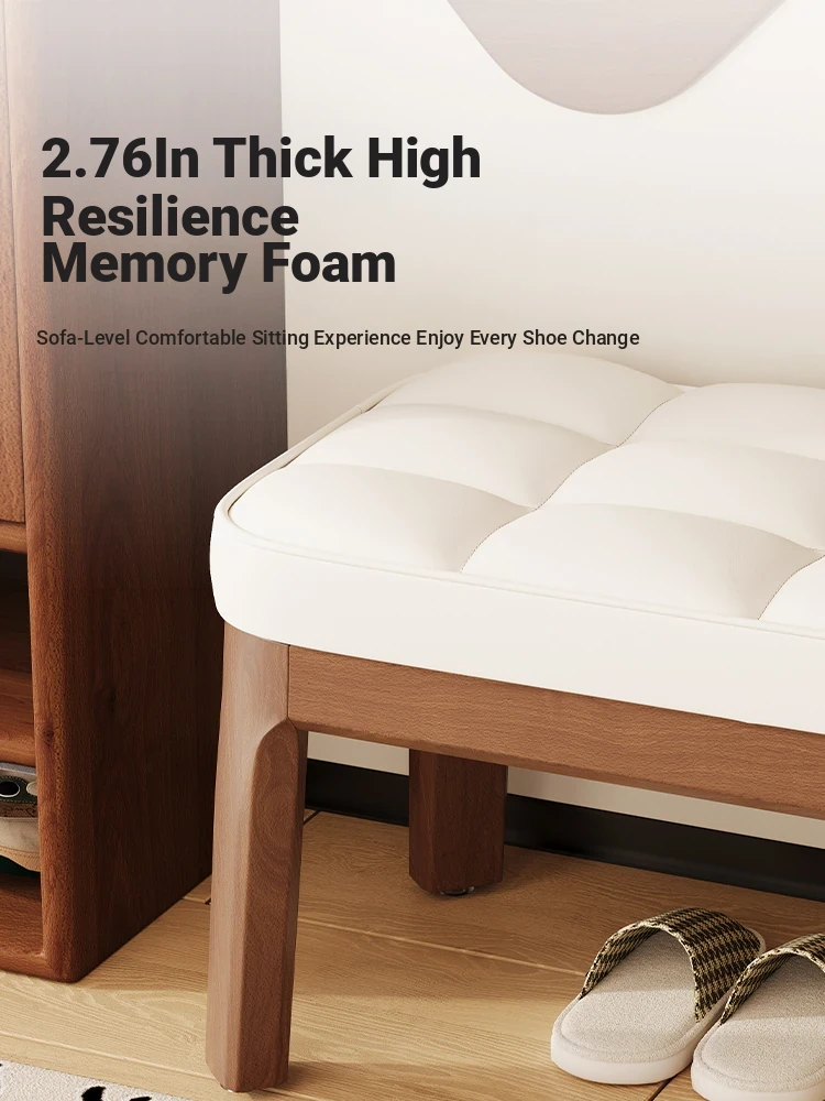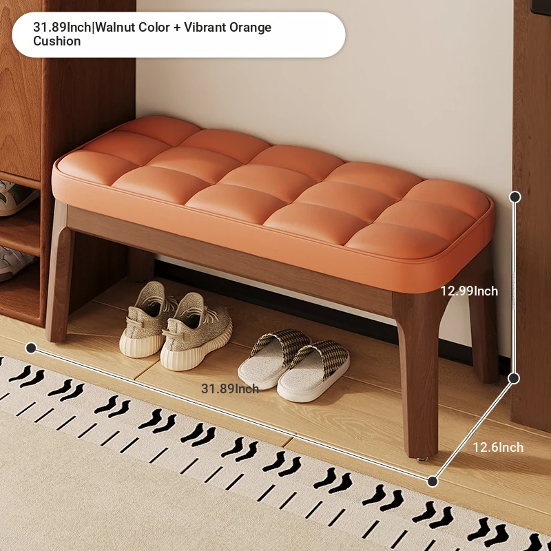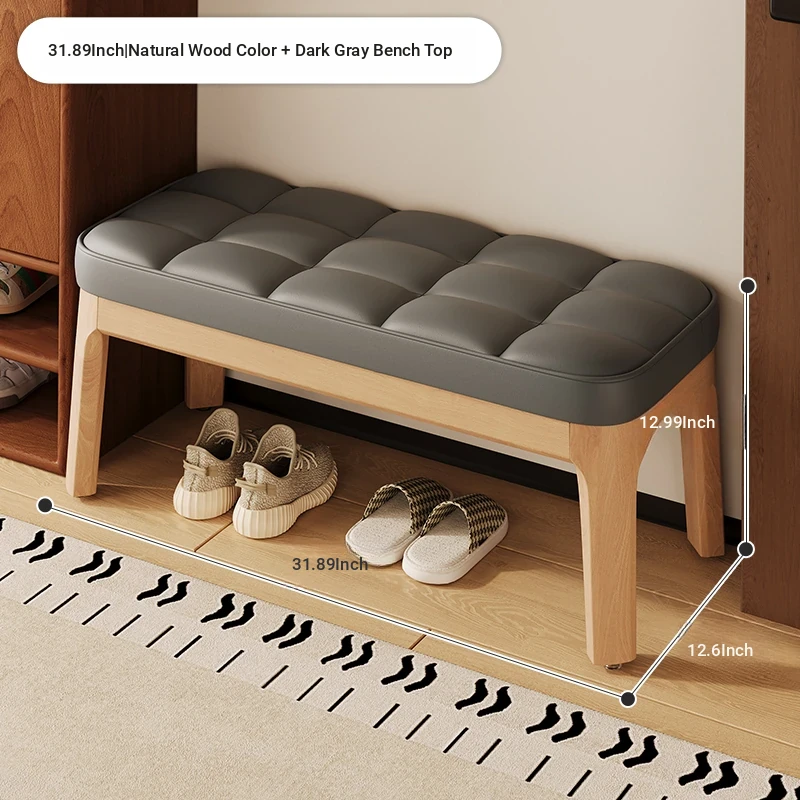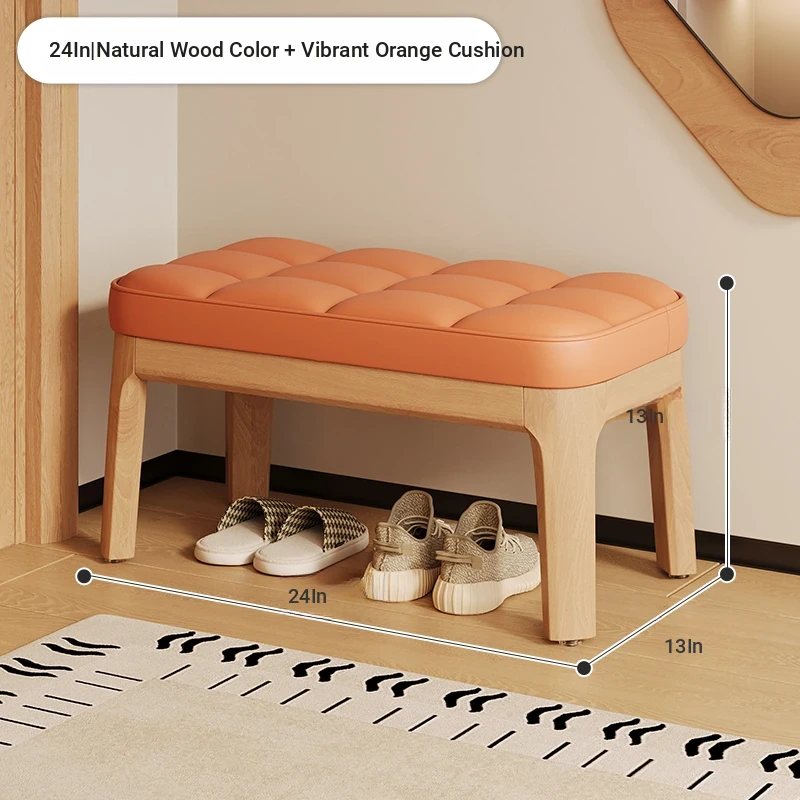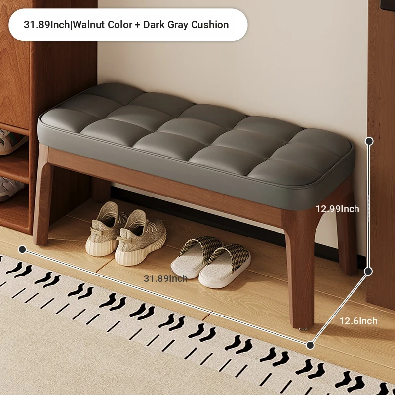 Narrow Solid Wood Entryway Bench with Soft Cushion - Elegant and Luxurious Shoe Changing Stool for Home, Perfect for Small Spaces at Entrance