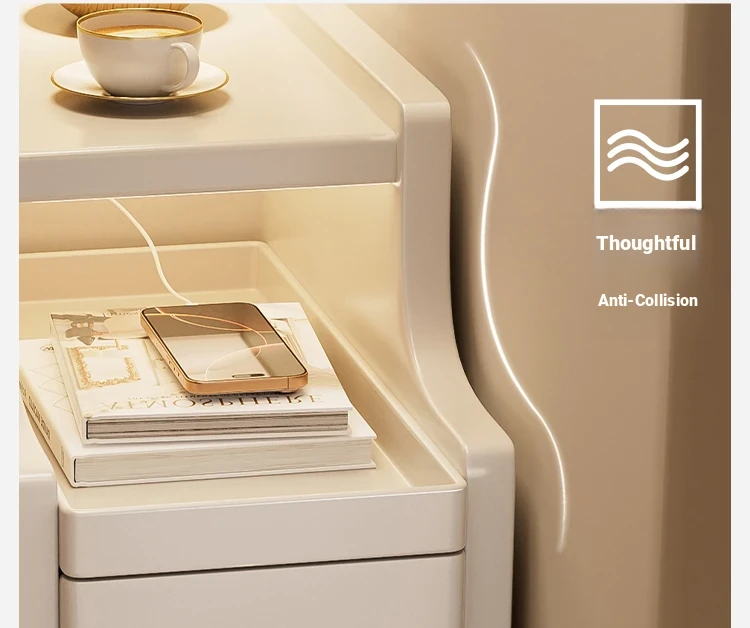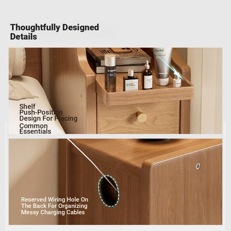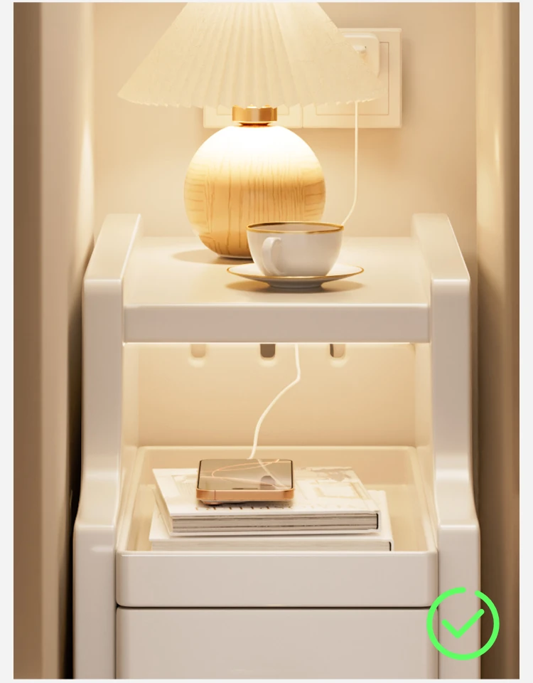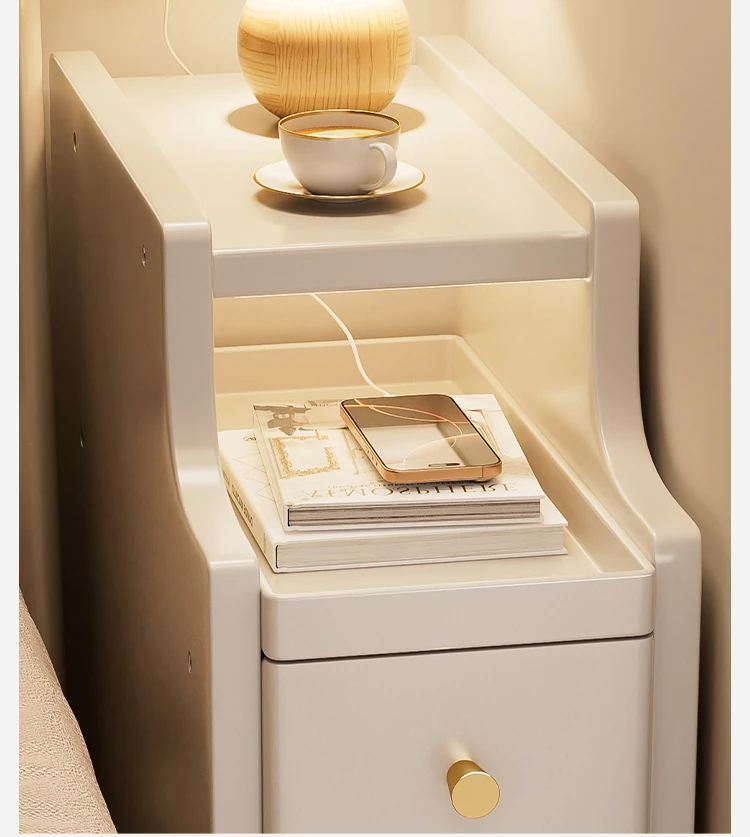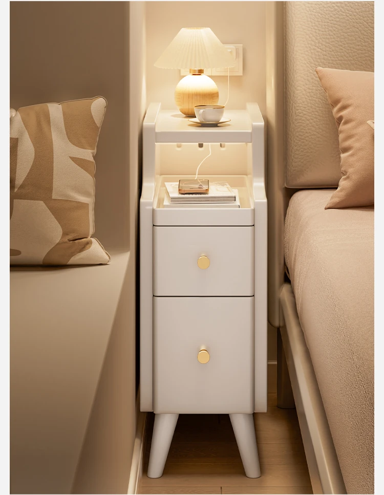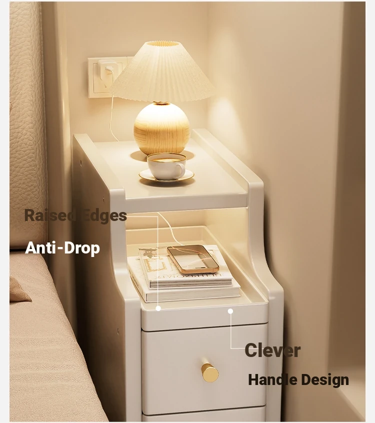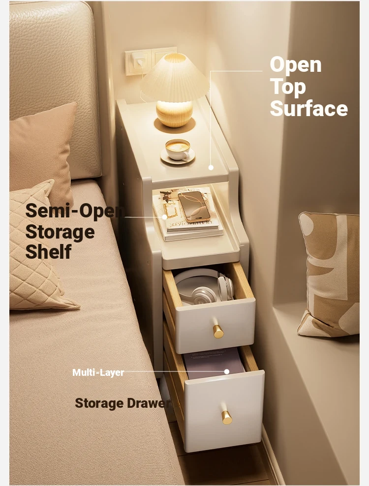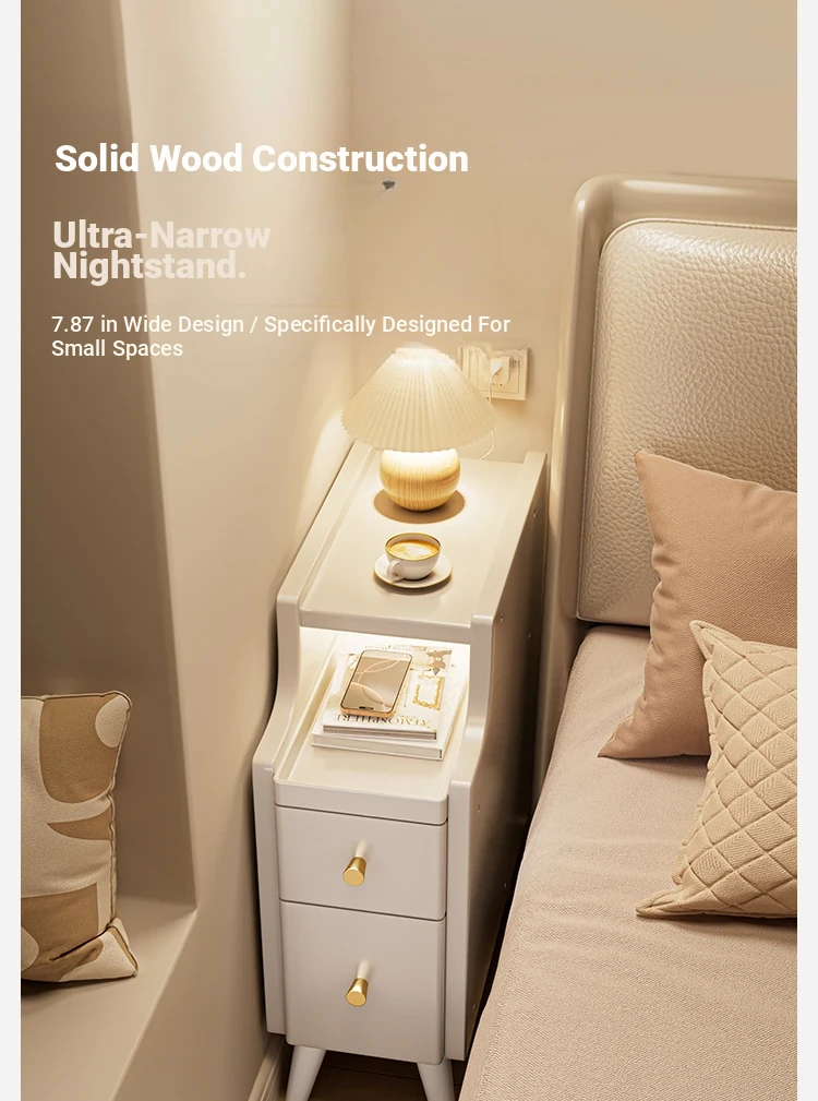Narrow Solid Wood Nightstand - Compact Bedside Storage Cabinet for Bedroom, Creamy Style, Perfect for Tight Spaces