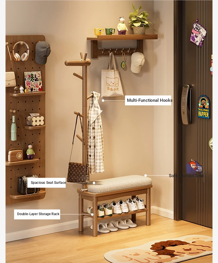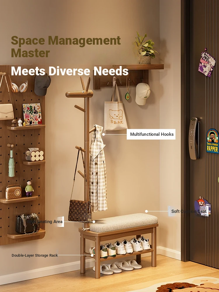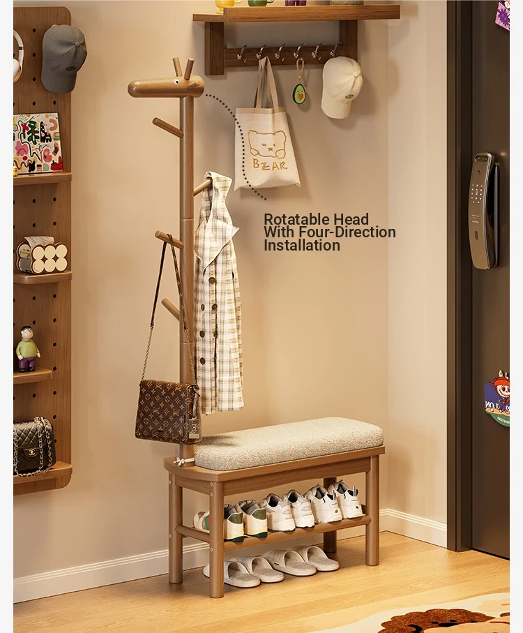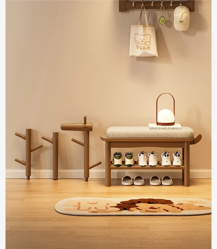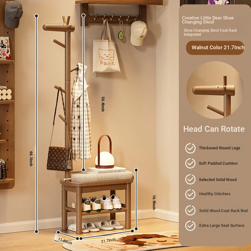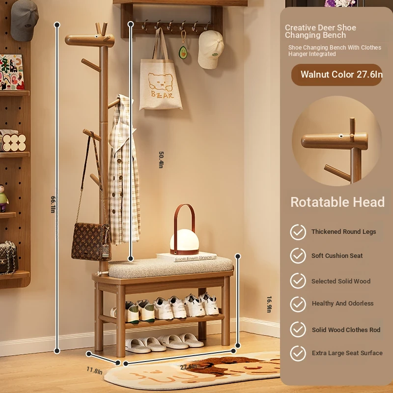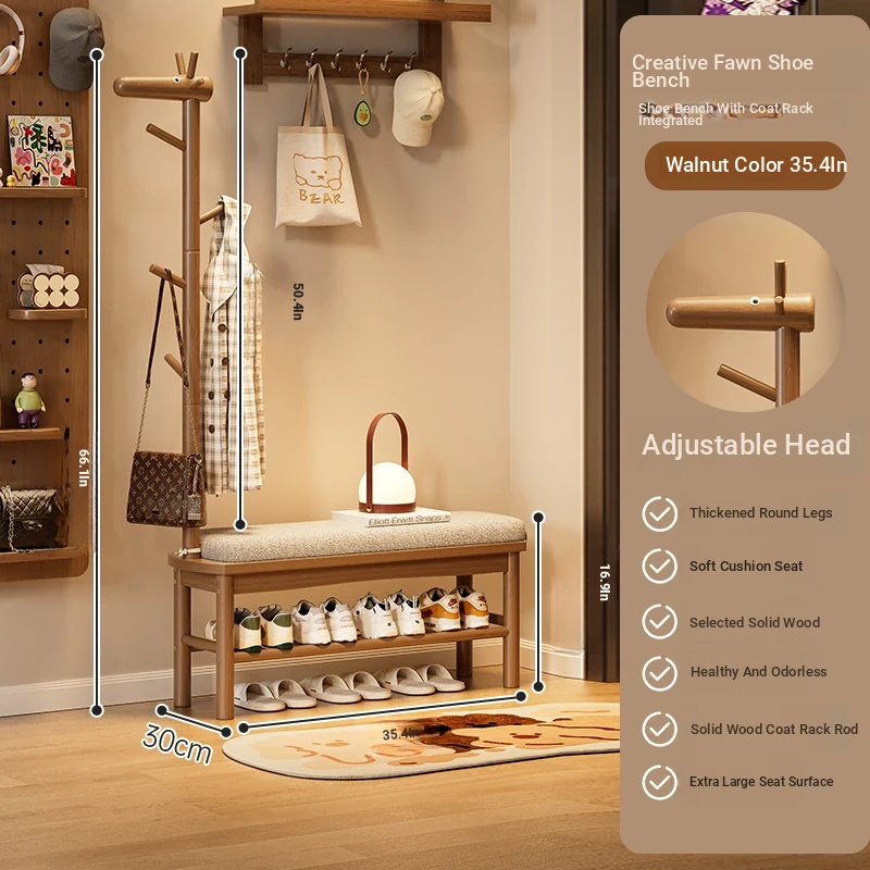 Narrow Wooden Shoe Bench for Entryway - Stylish and Functional, Perfect for Sitting and Storage, Creative Deer Design, Ideal for Small Spaces