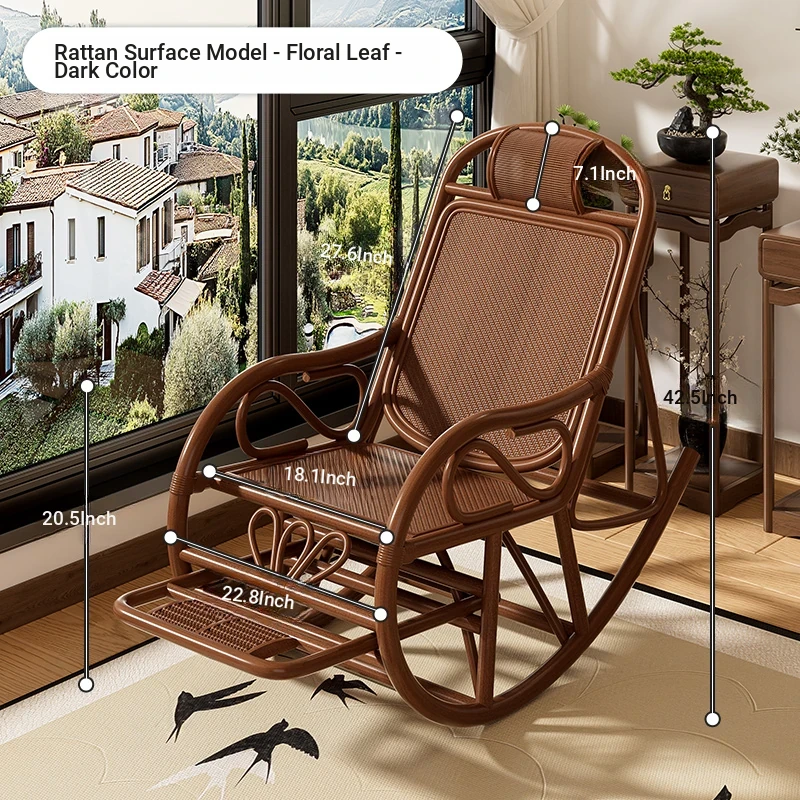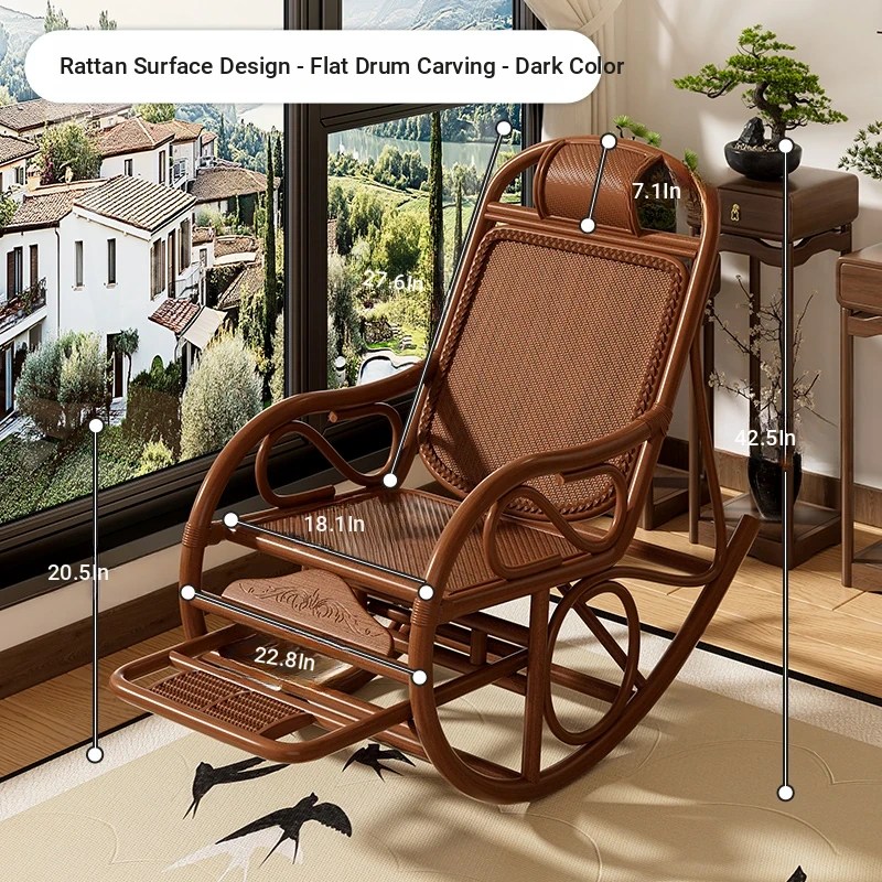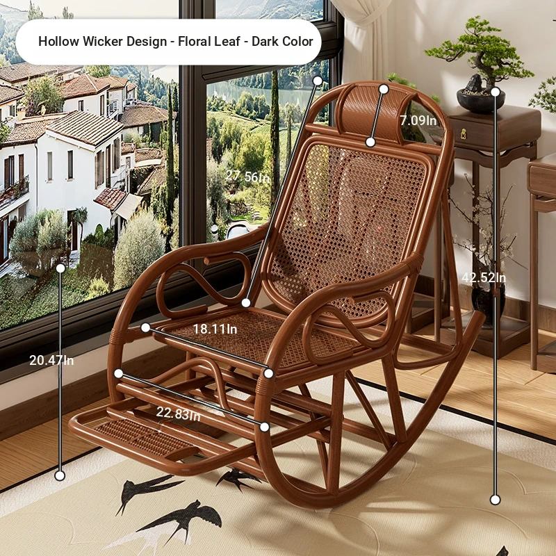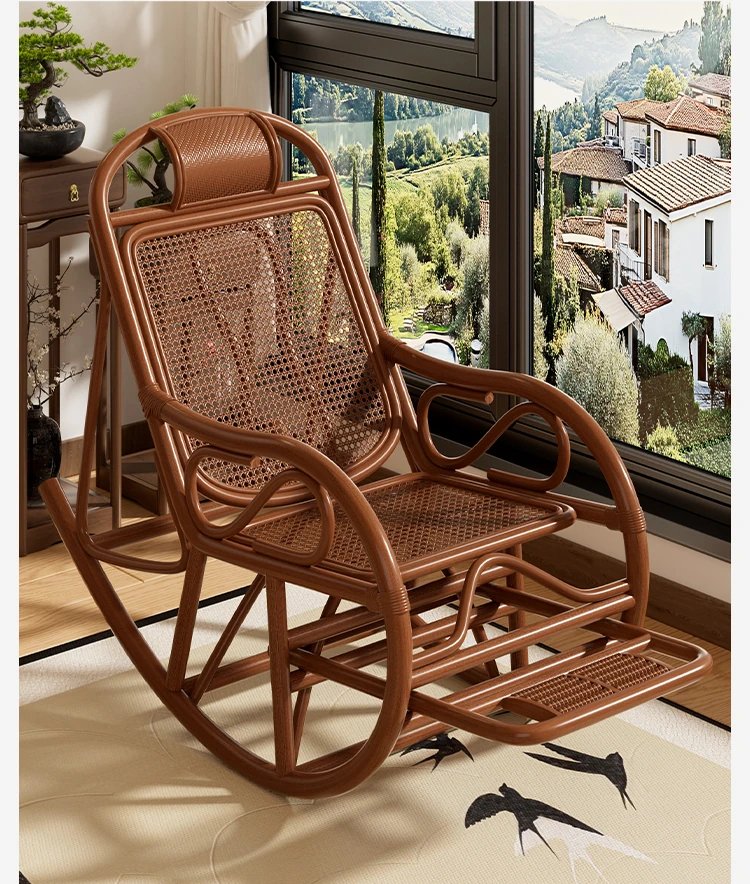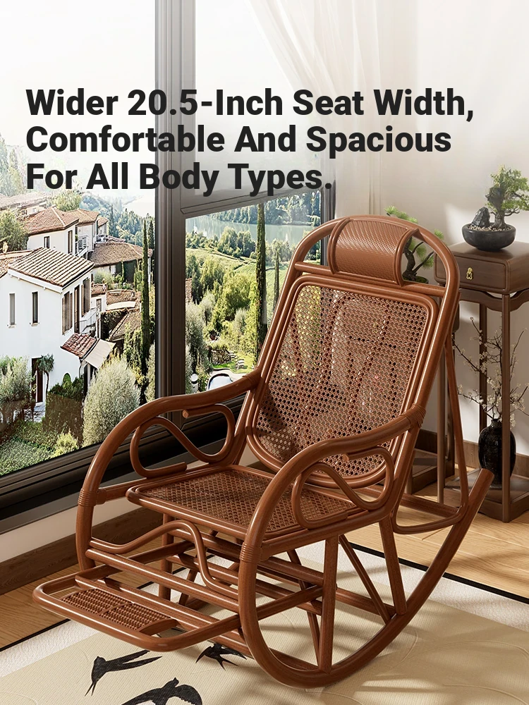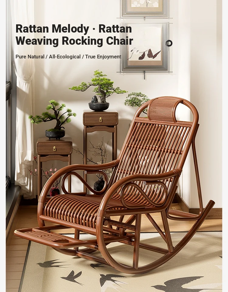 Natural Rattan Rocking Chair for Seniors - Comfortable Recliner for Afternoon Naps, Home Leisure, and Relaxation - Perfectly Crafted for Ultimate Comfort and Support in Every Swing!