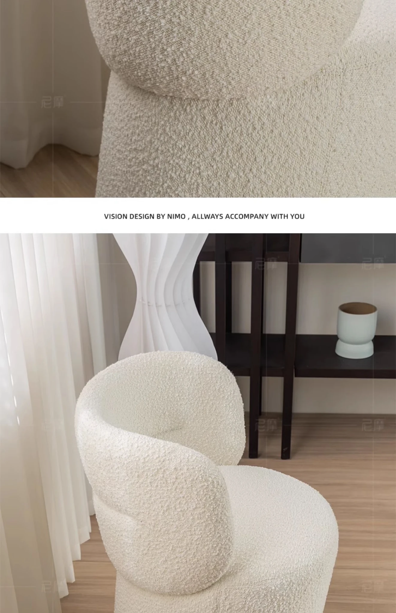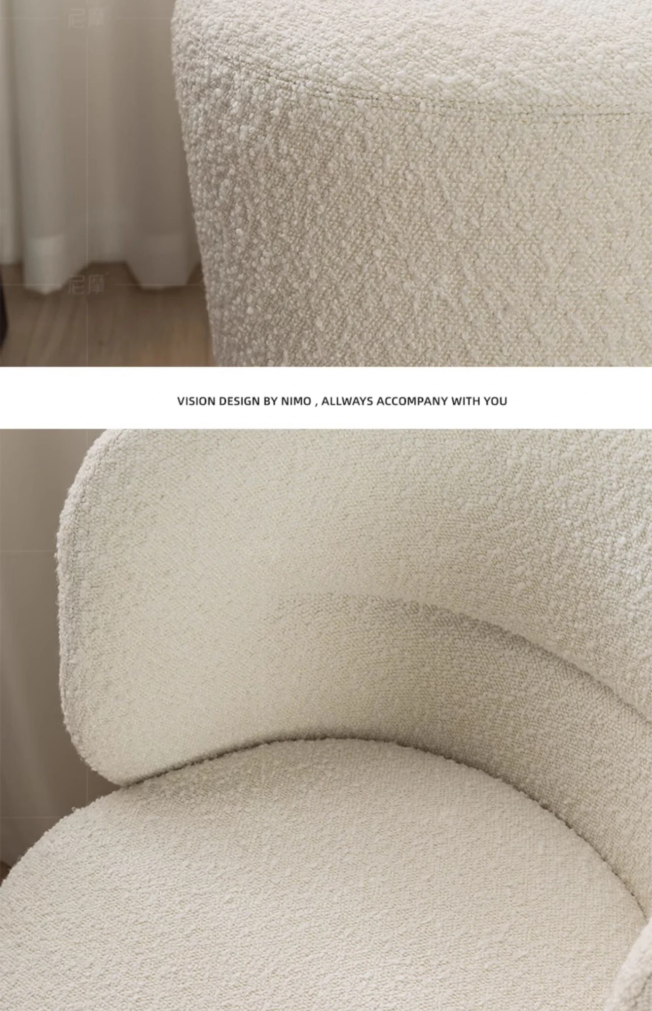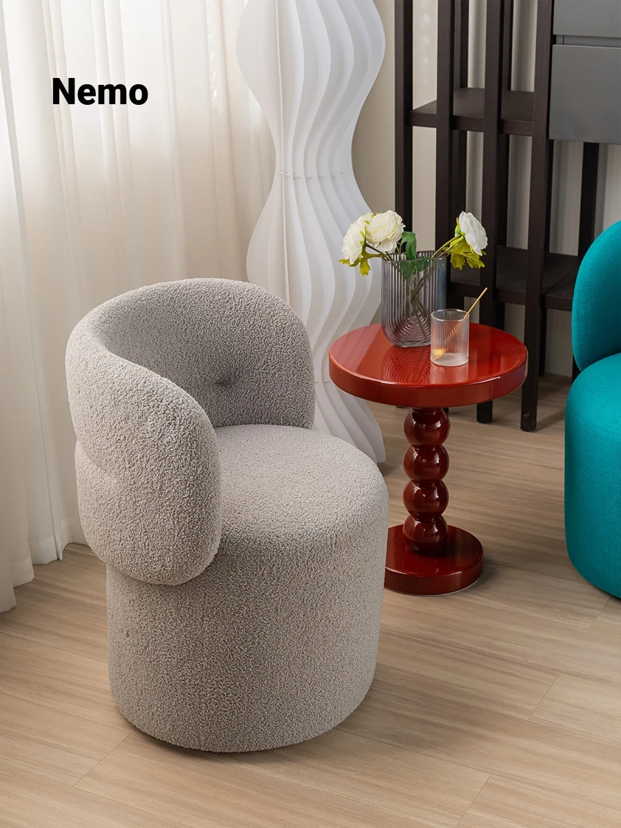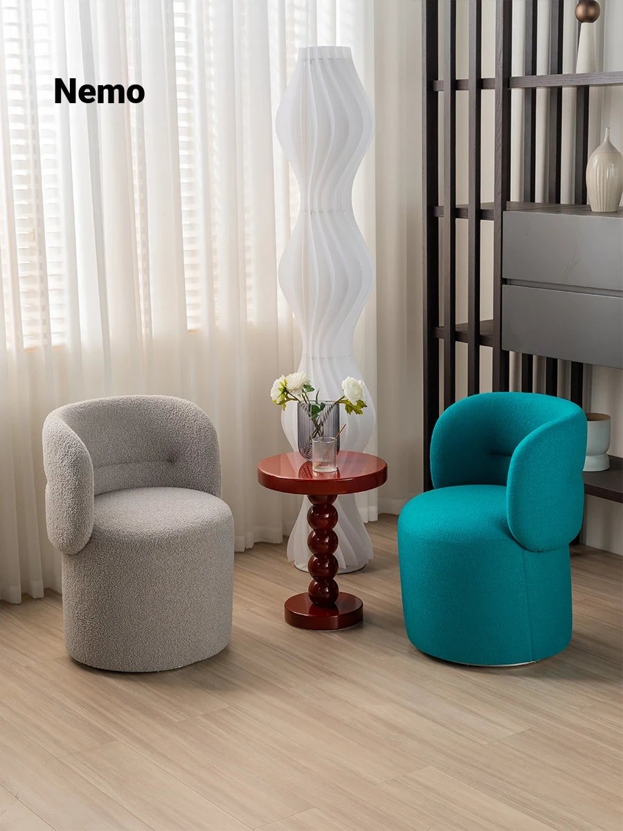 Nemo Designer Cream Fabric Vanity Stool - Stylish Rotating Makeup Chair for a Chic Dressing Table Experience