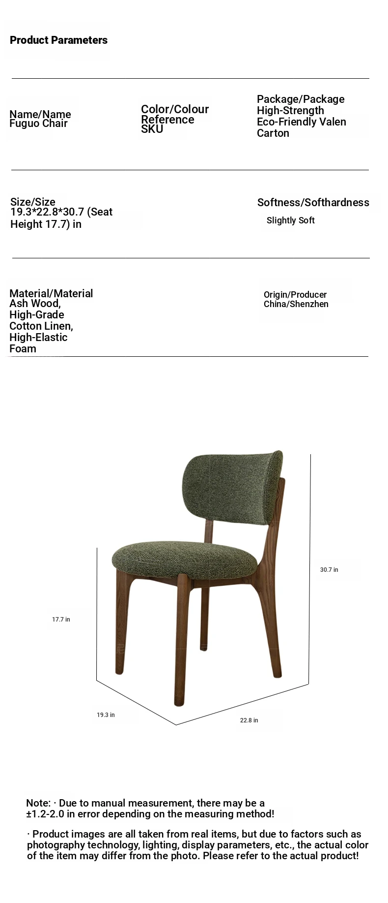 American Ash Walnut/Dark Green Cotton Linen