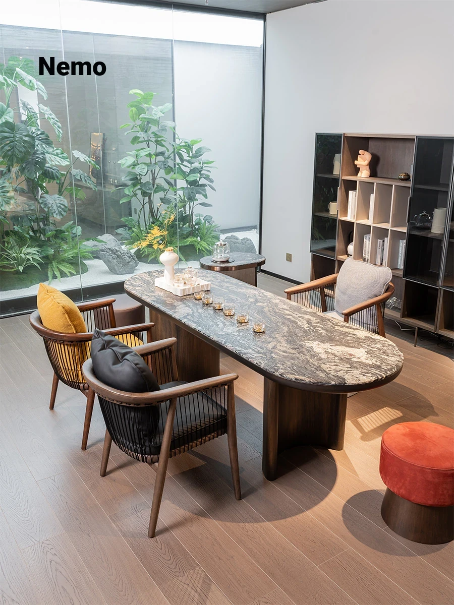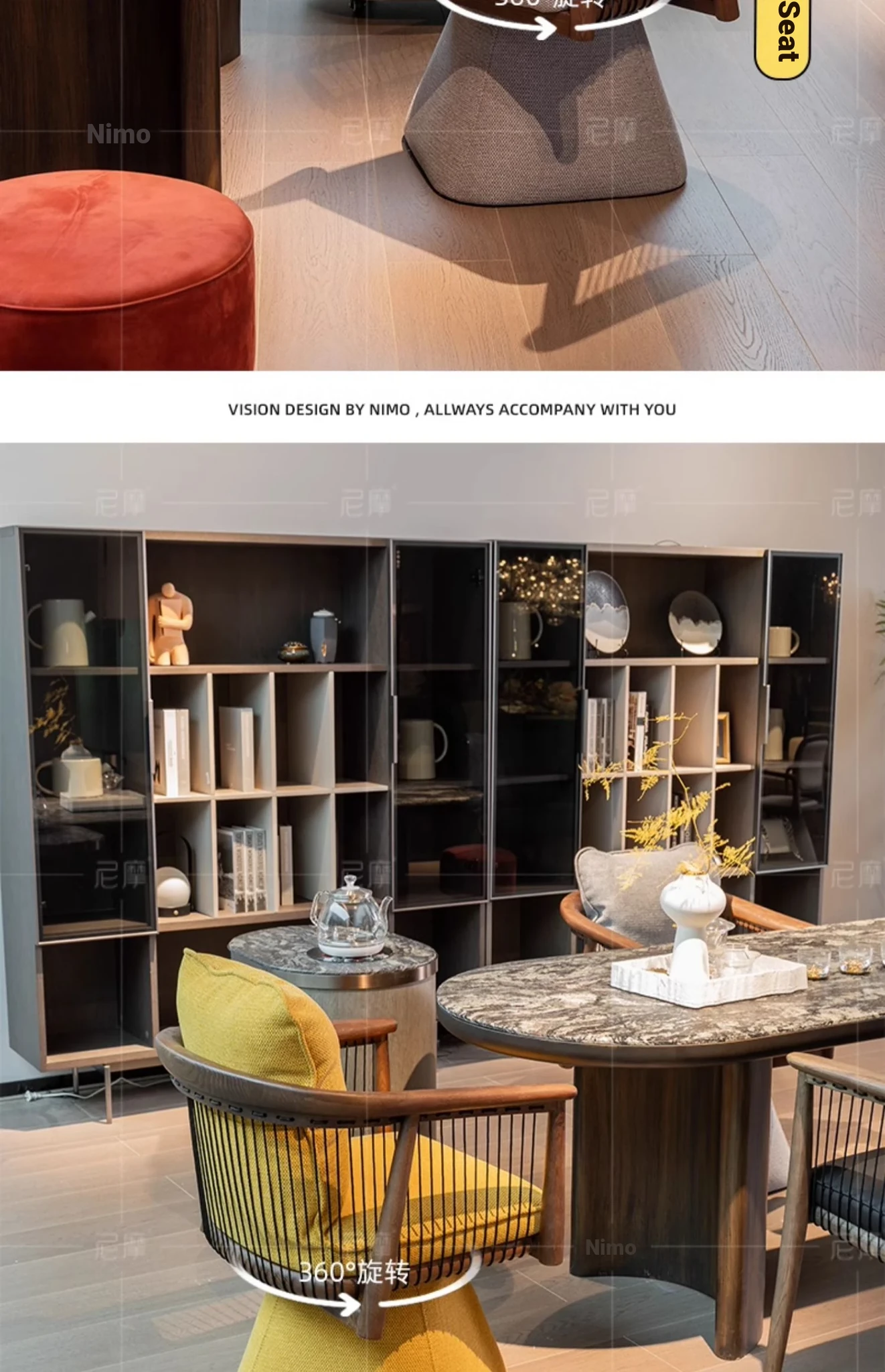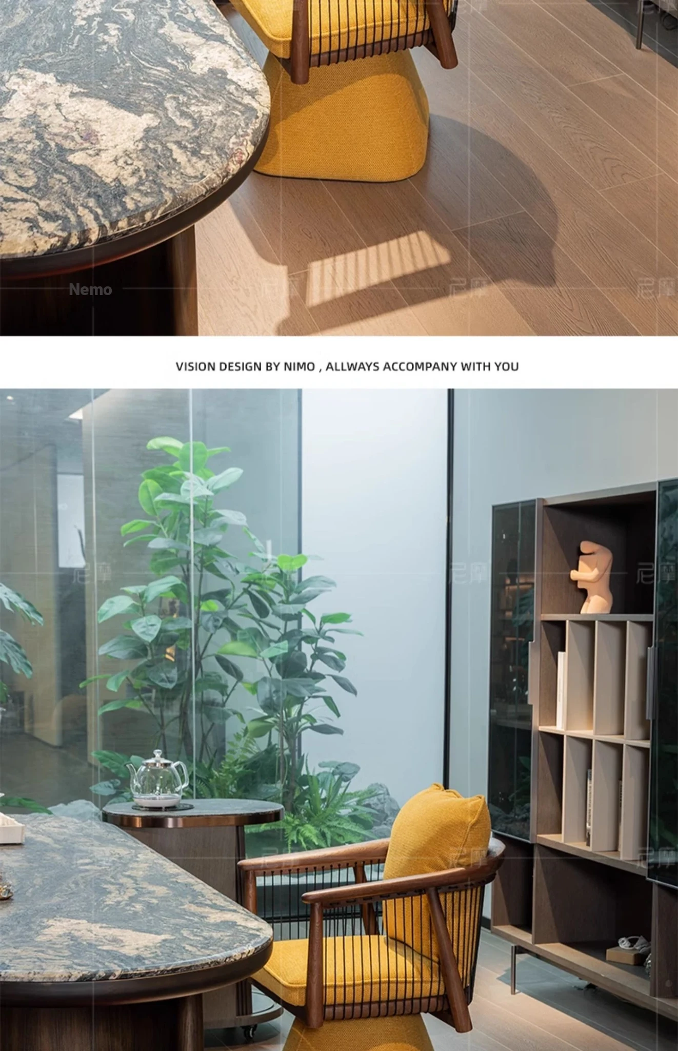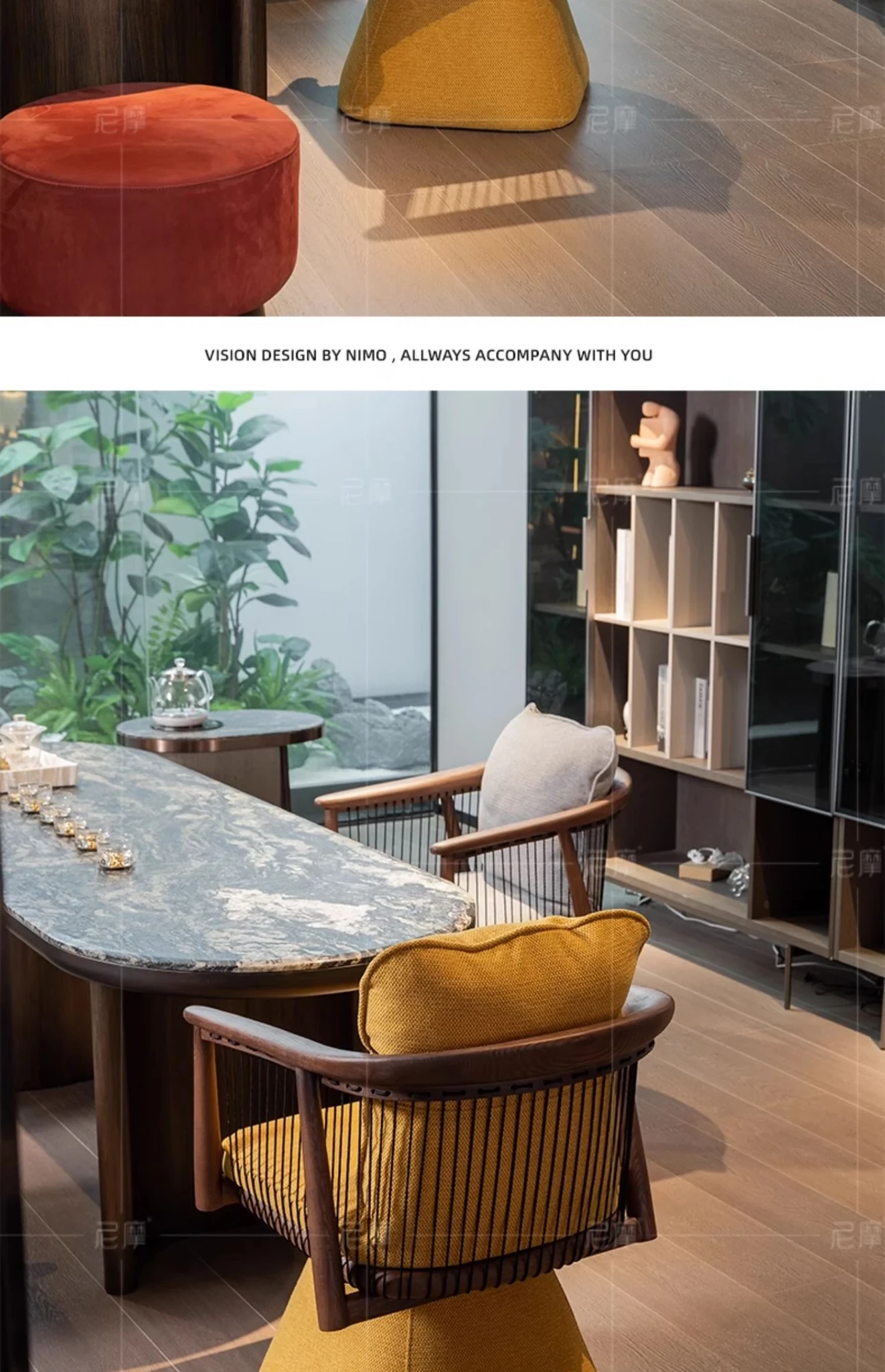 Nemo New Luxury Rotating Genuine Leather Solid Wood Armchair - Elegant Black Walnut Tea Chair with Vintage Style Backrest and Armrests, Perfect for Dining and Relaxation.