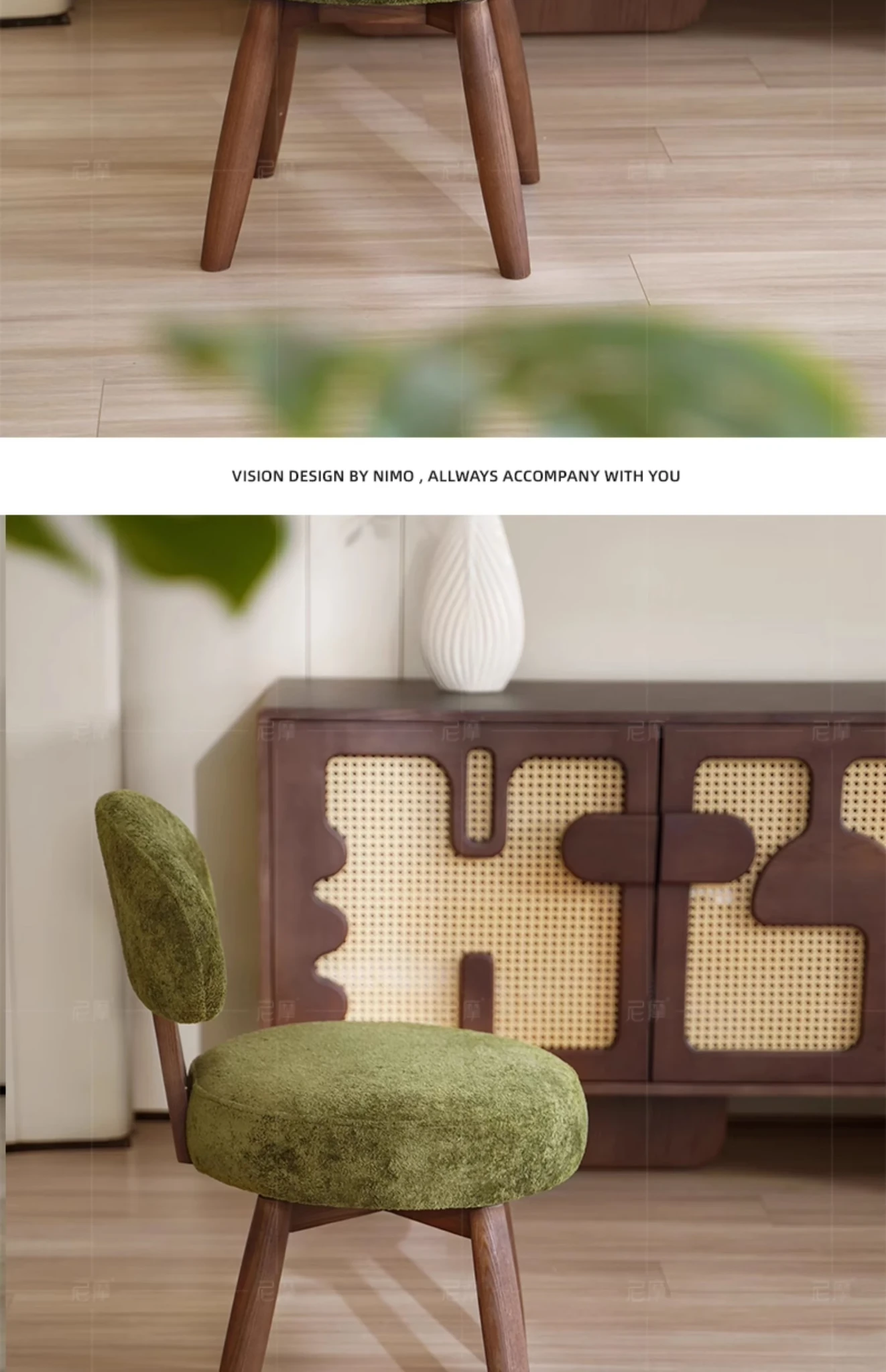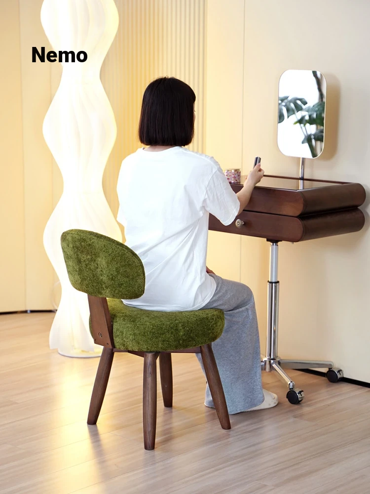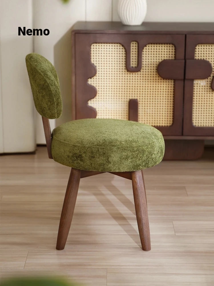 Nemo’s New Designer Vintage Solid Wood Rotating Dining Chair - Elegant Luxury Tea Chair with Backrest, Perfect for Makeup and Relaxation