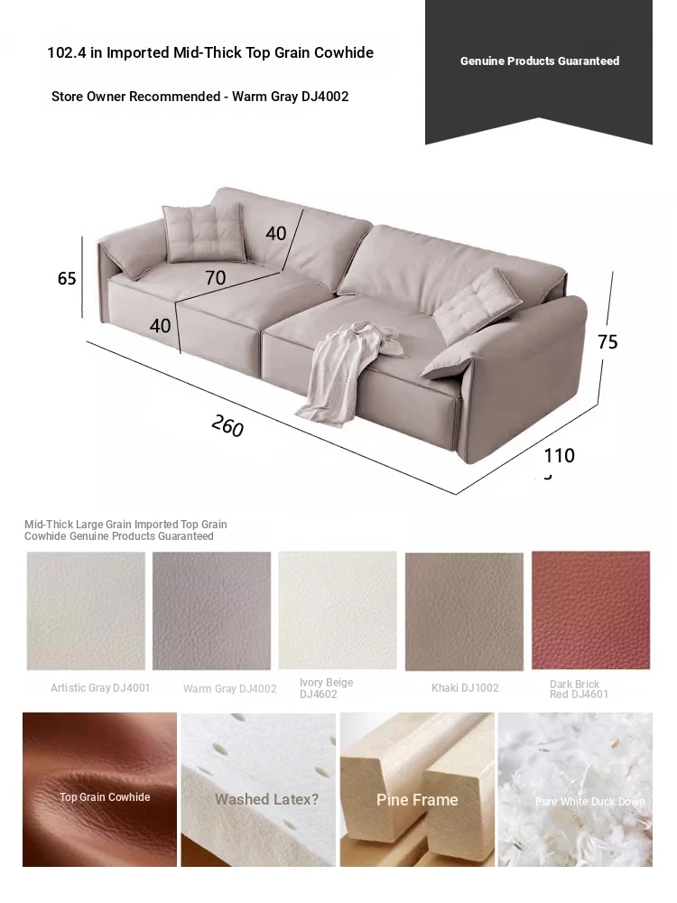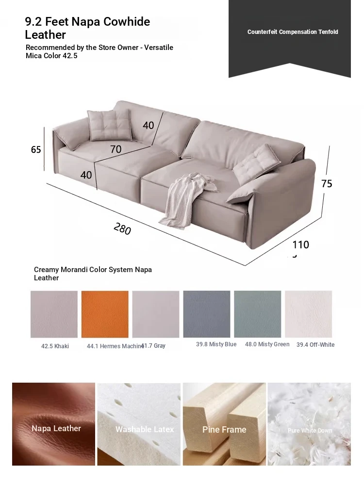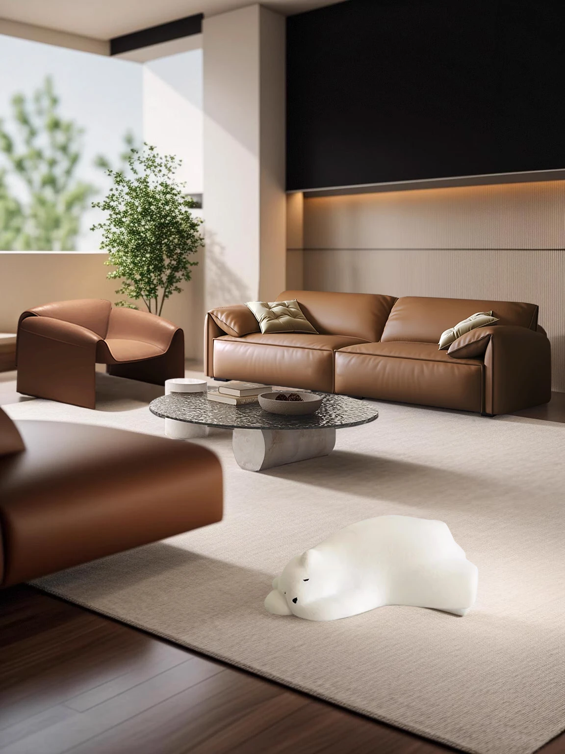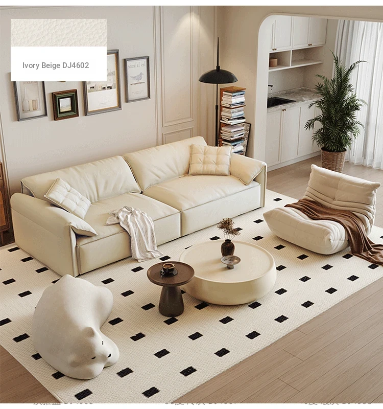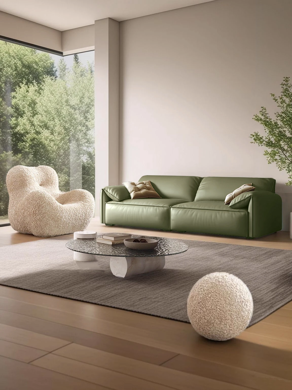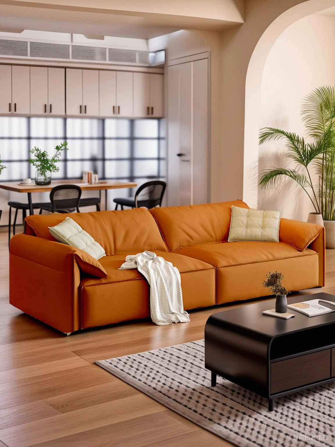 New 2024 Italian Style Elephant Ear Leather Sofa Set for Living Room - Premium First Layer Cowhide from Dongguan, Foshan, Longjiang - Luxurious Comfort and Modern Design