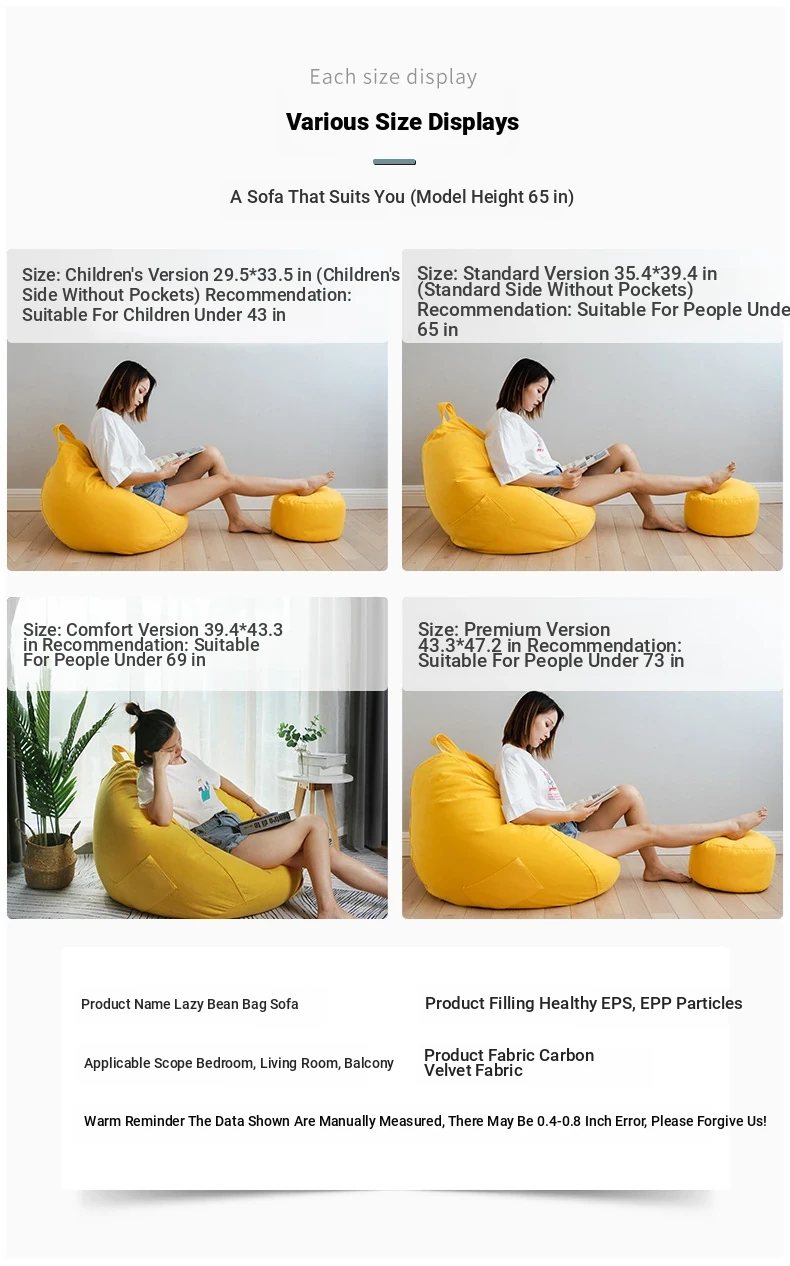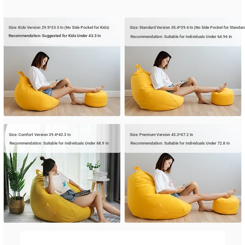 New Washable Bean Bag Sofa Cover - Removable and Easy to Clean for Living Room and Bedroom Comfort