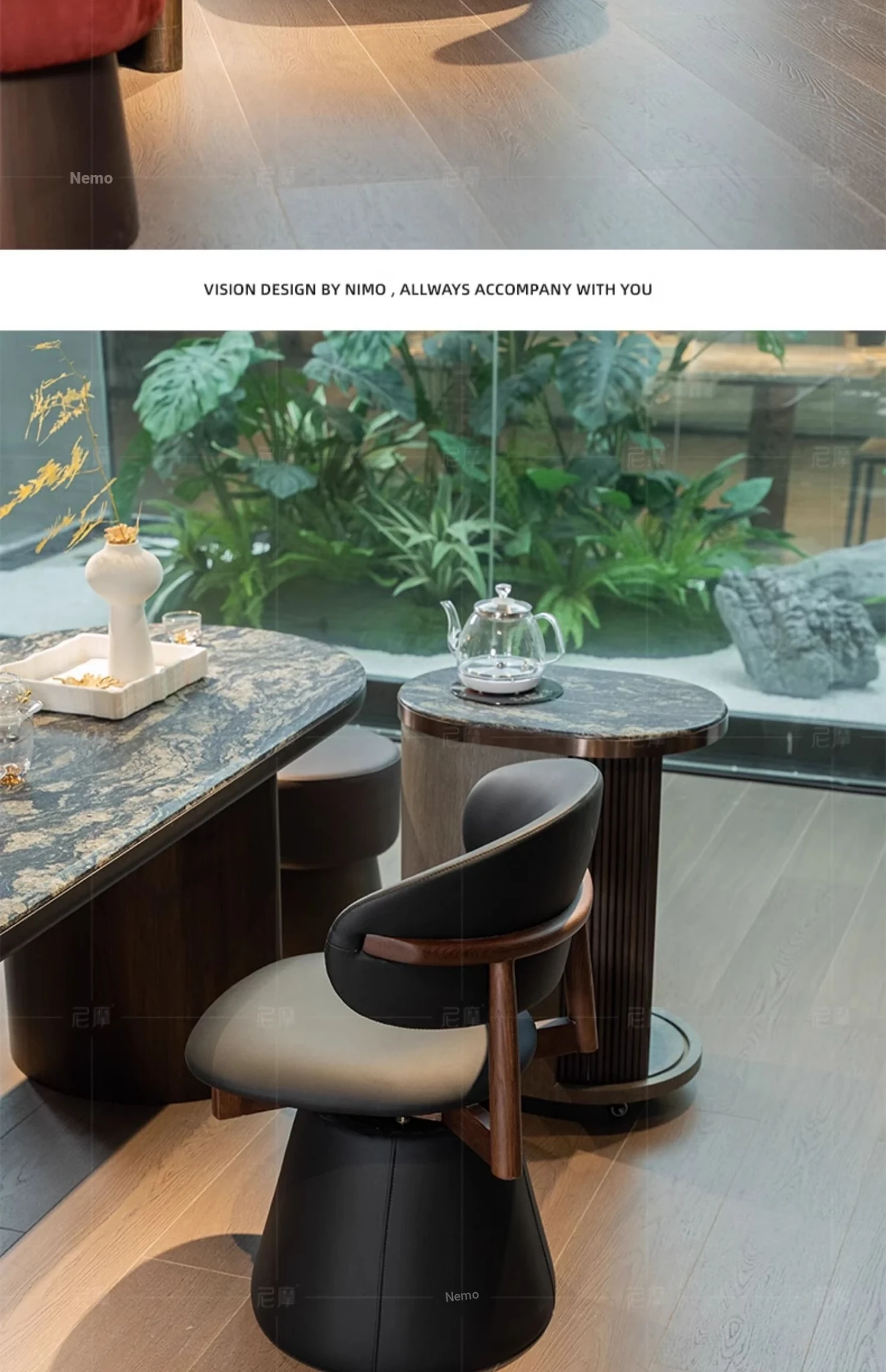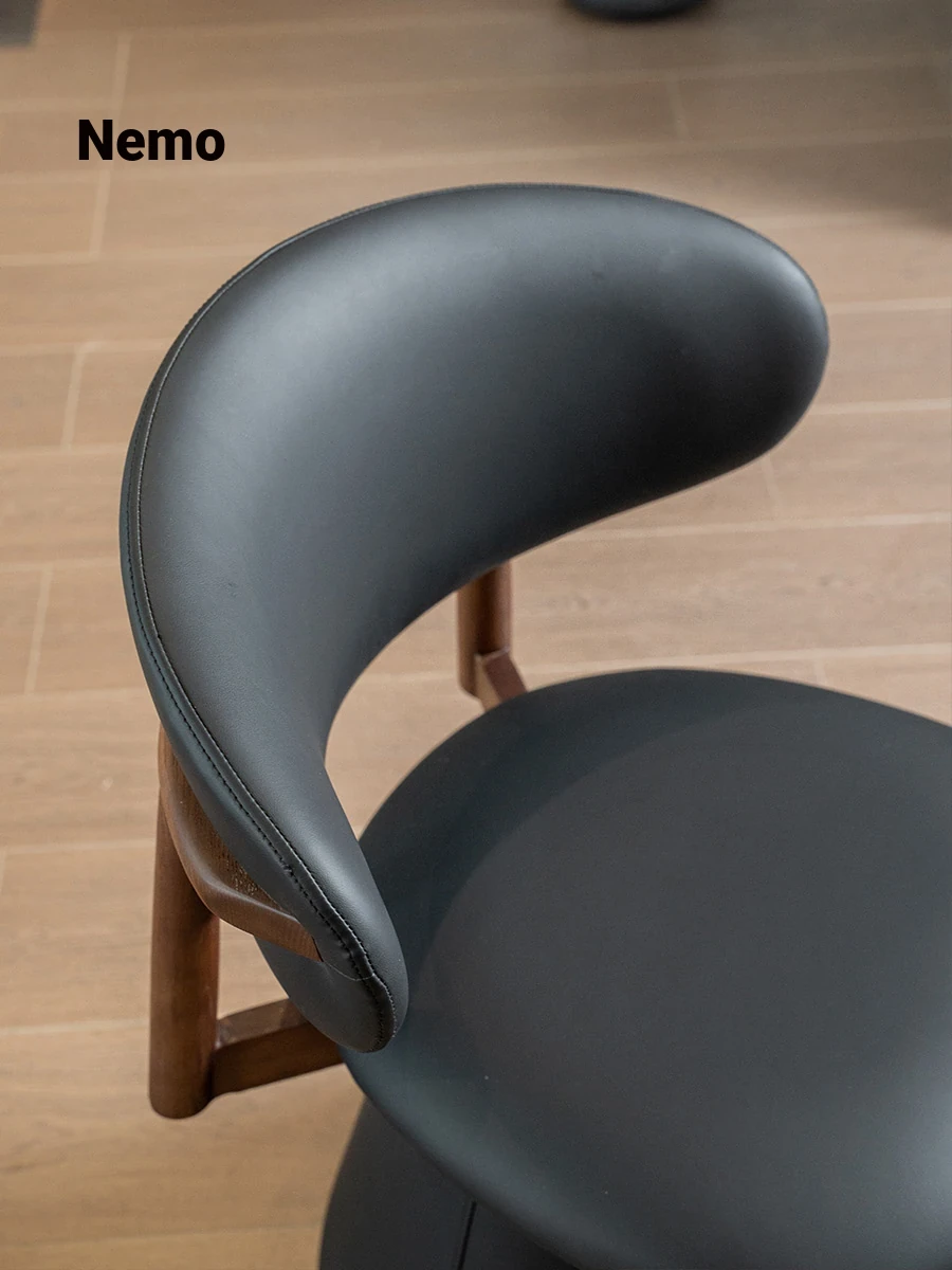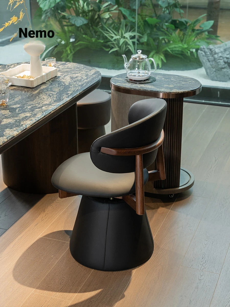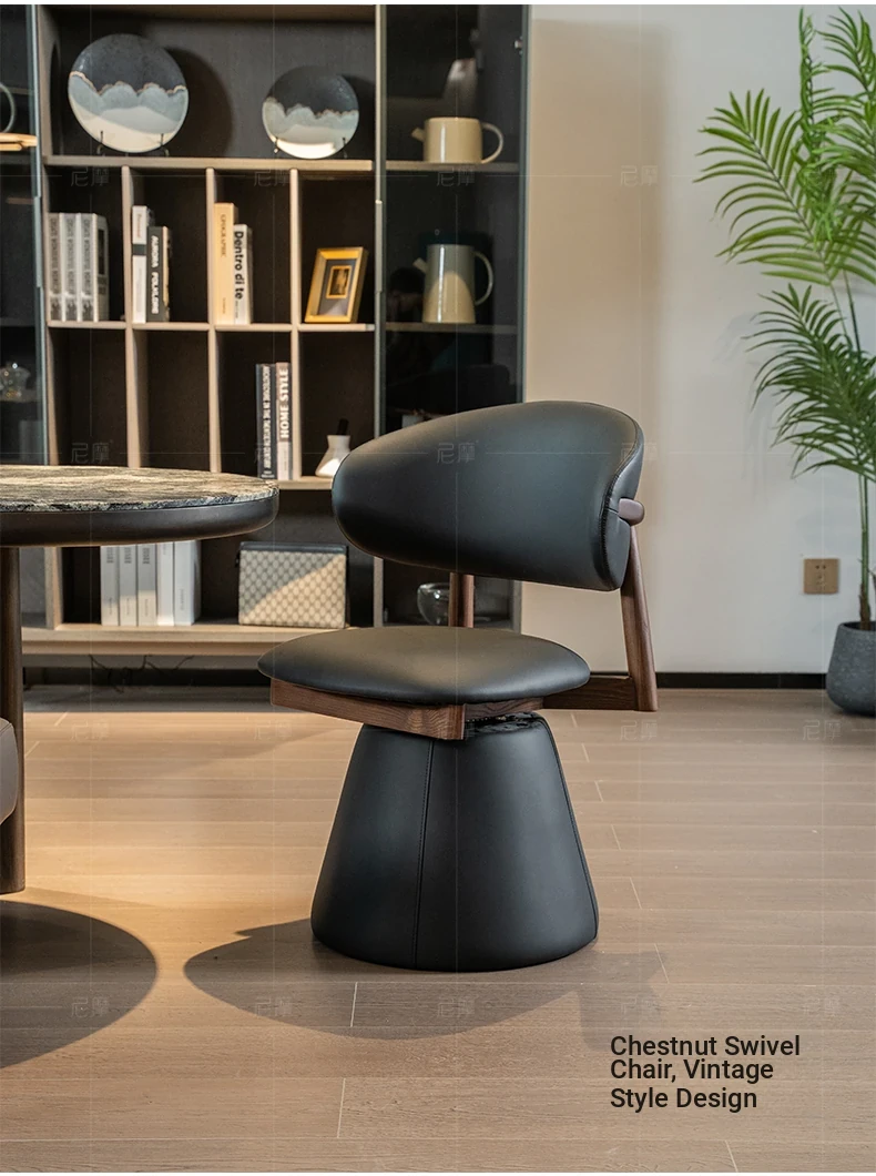Nimo 2025 New Luxury Genuine Leather Swivel Armchair - Walnut Tea Chair, Vintage Solid Wood Dining Chair, Perfect for Elegant Living Spaces