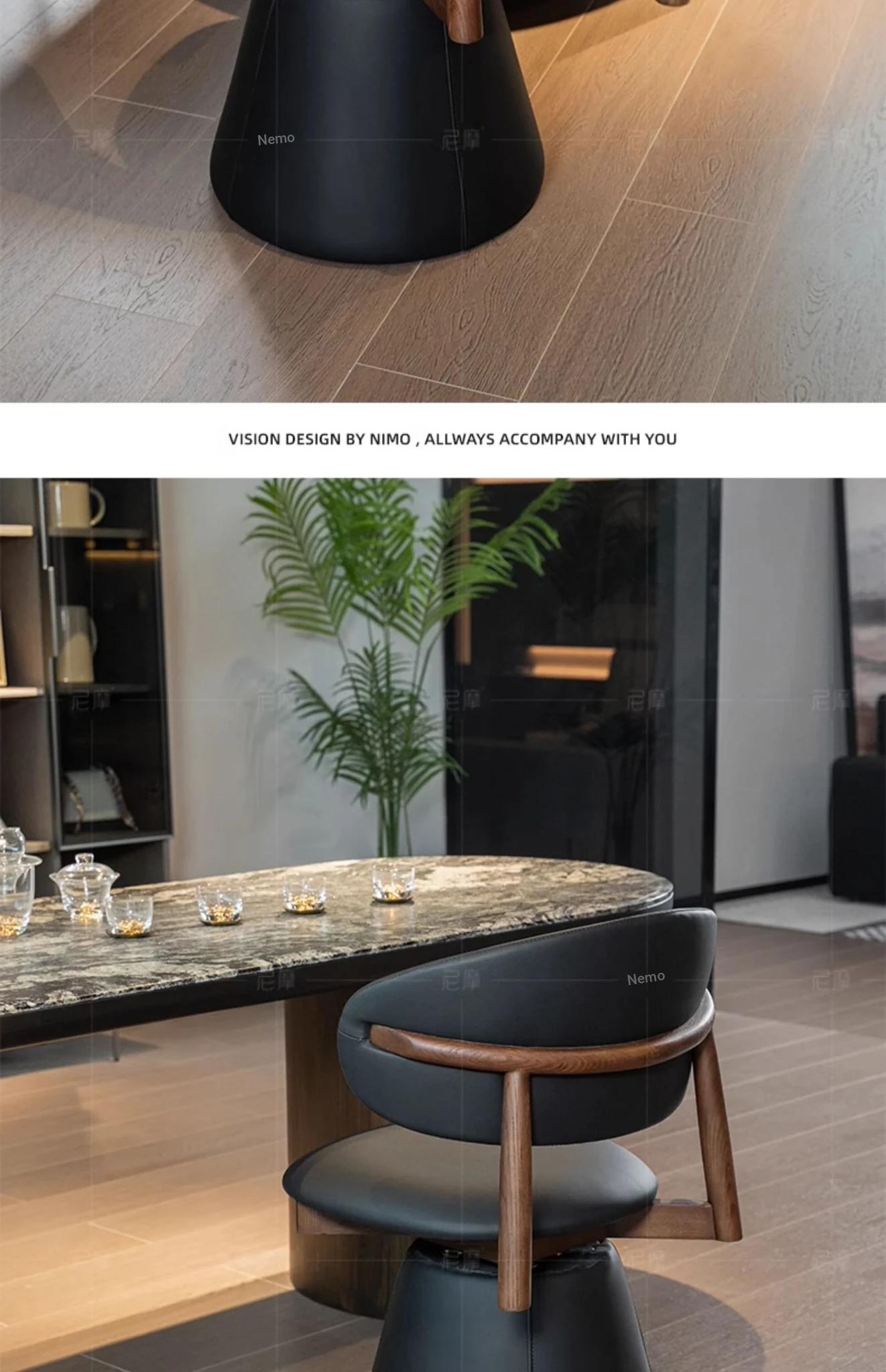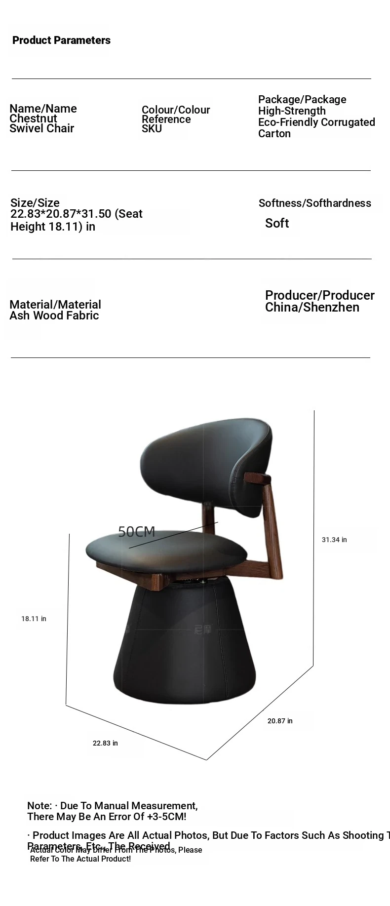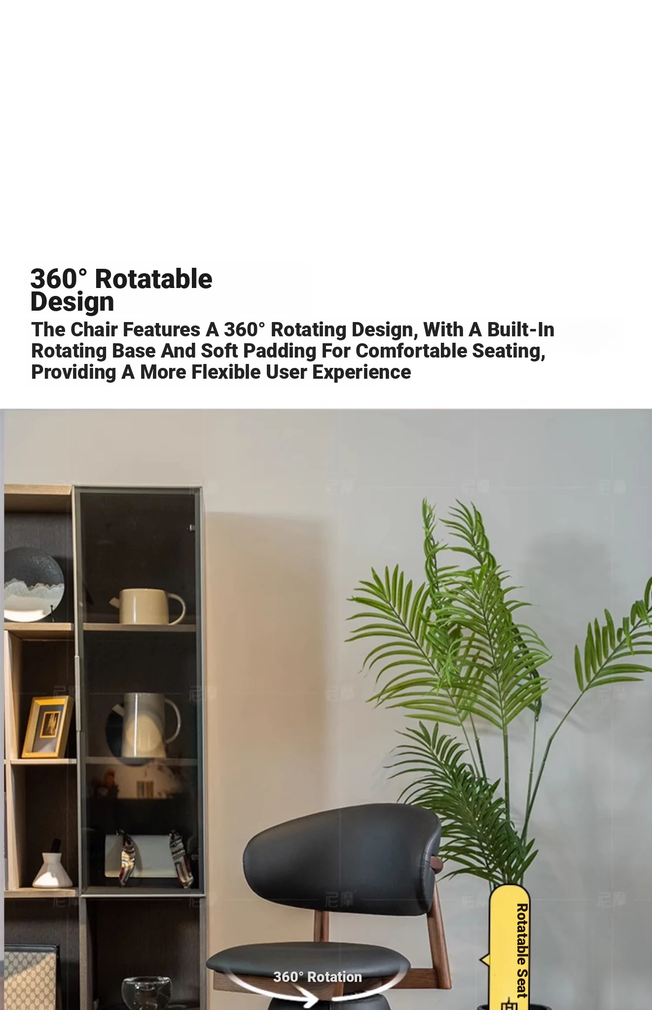 Ash Black Walnut/Black ecological leather [360 ° Rotate]]