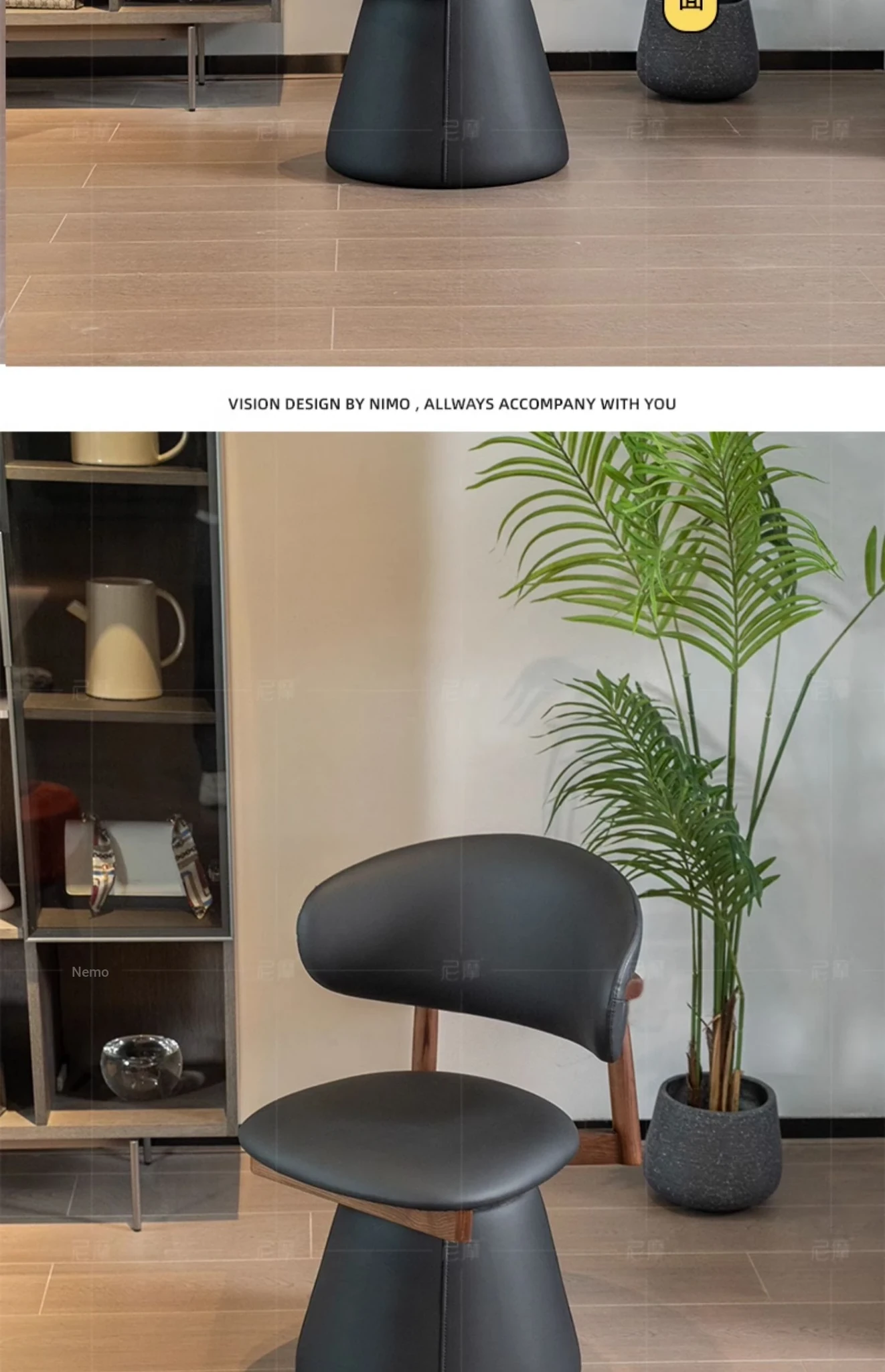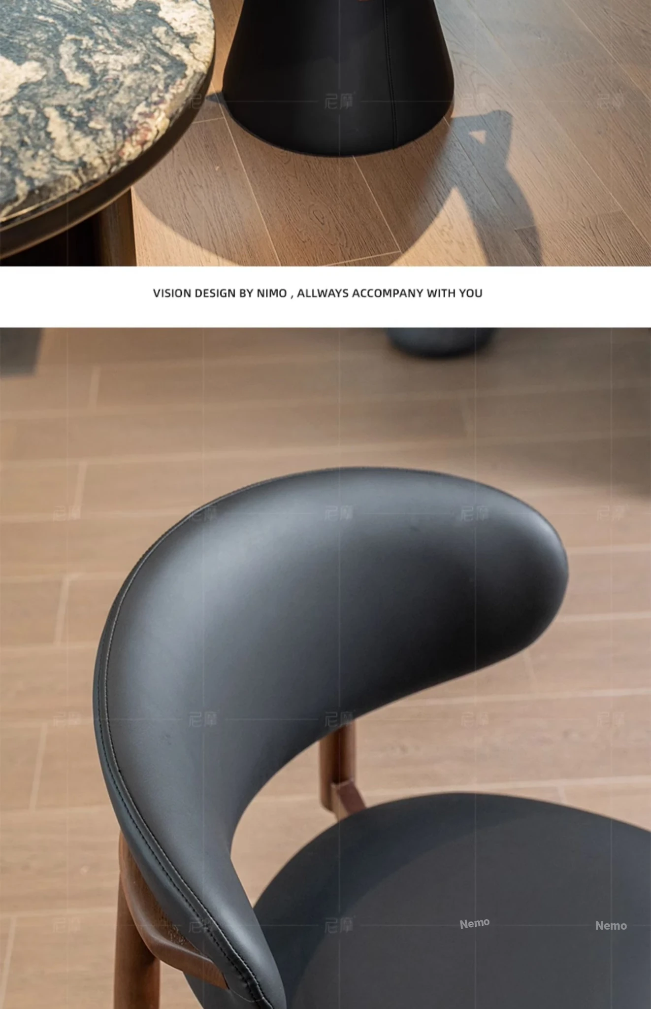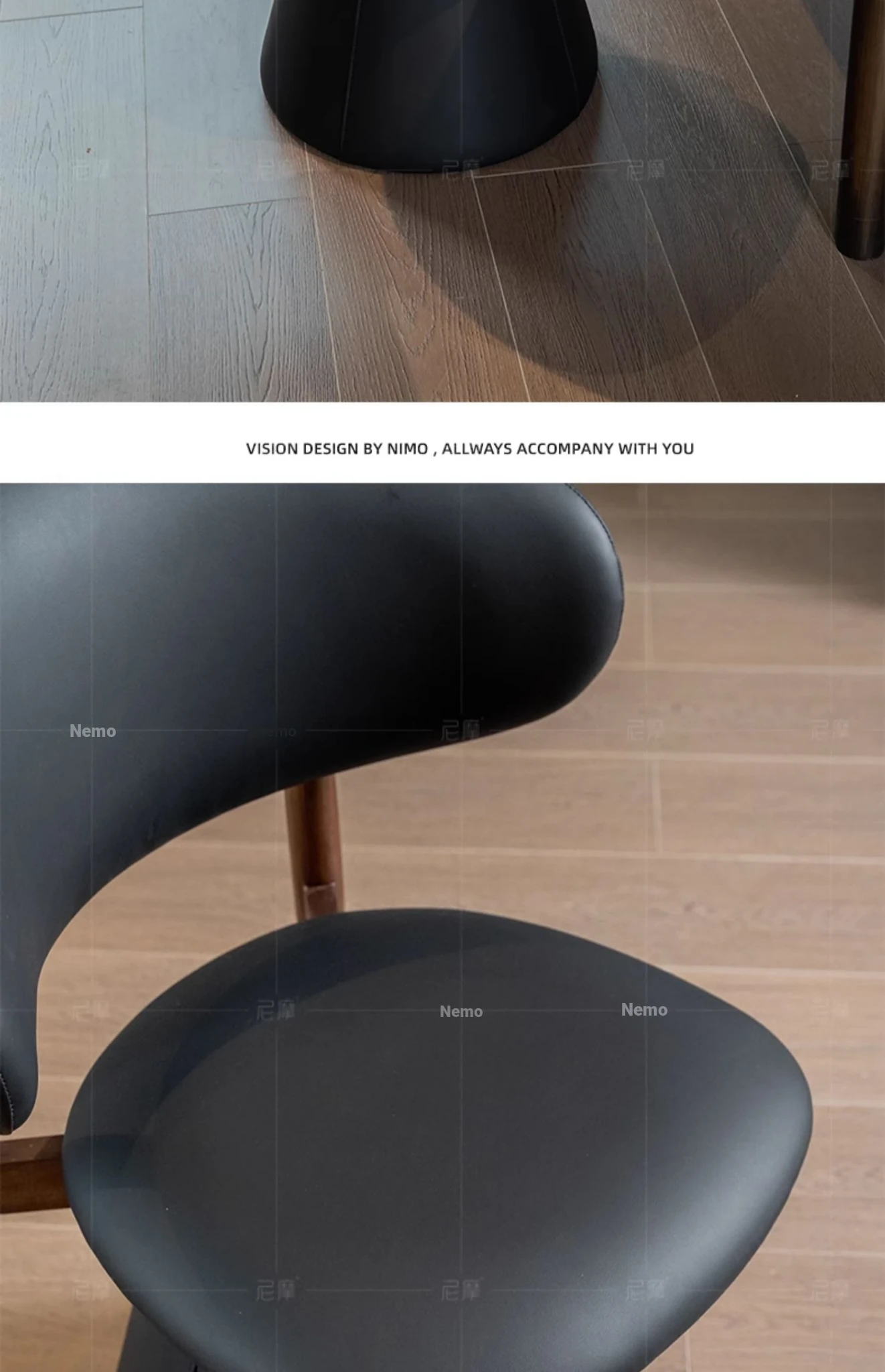 Ash Black Walnut/Black ecological leather [360 ° Rotate]]