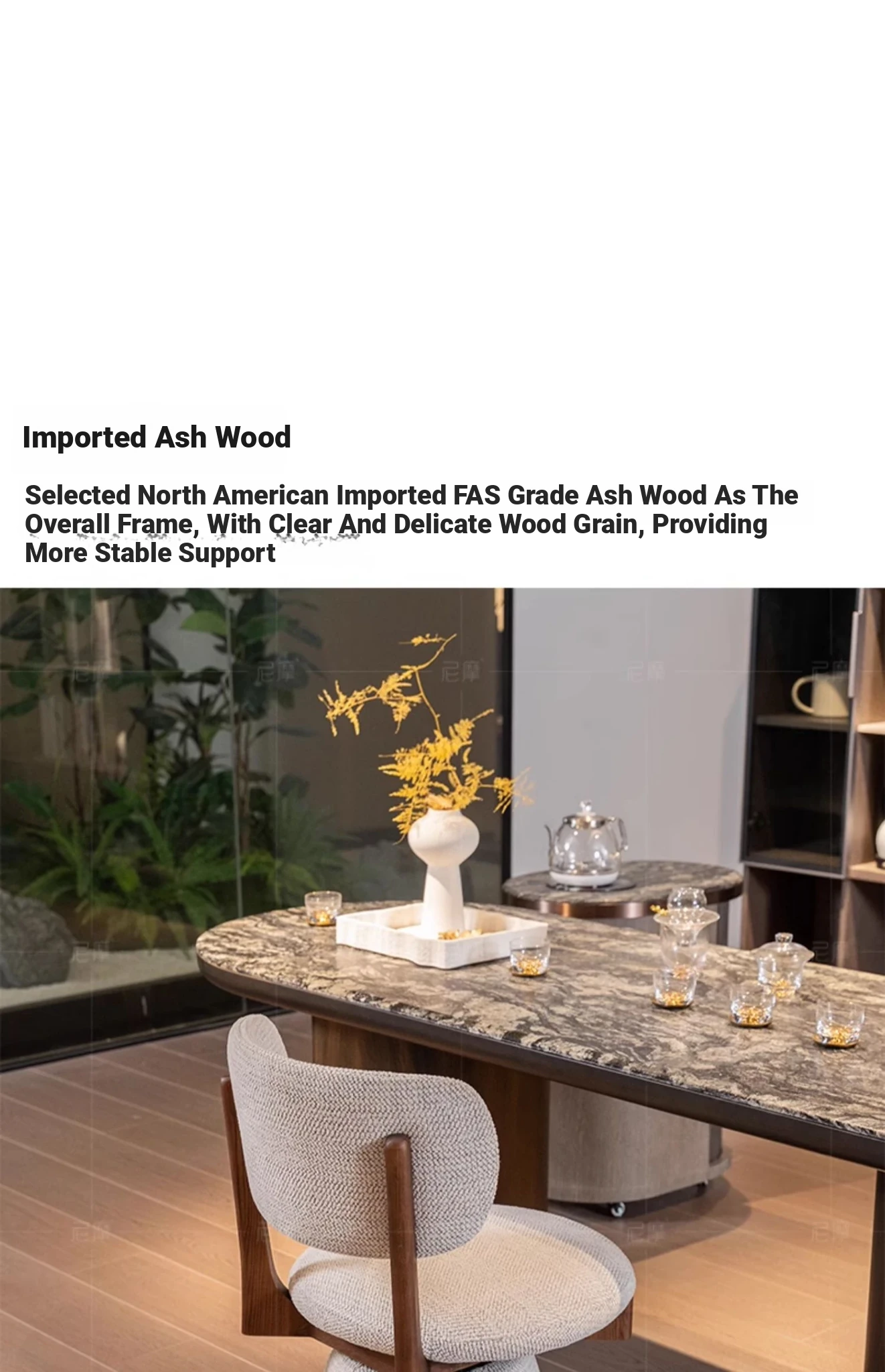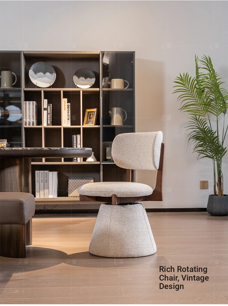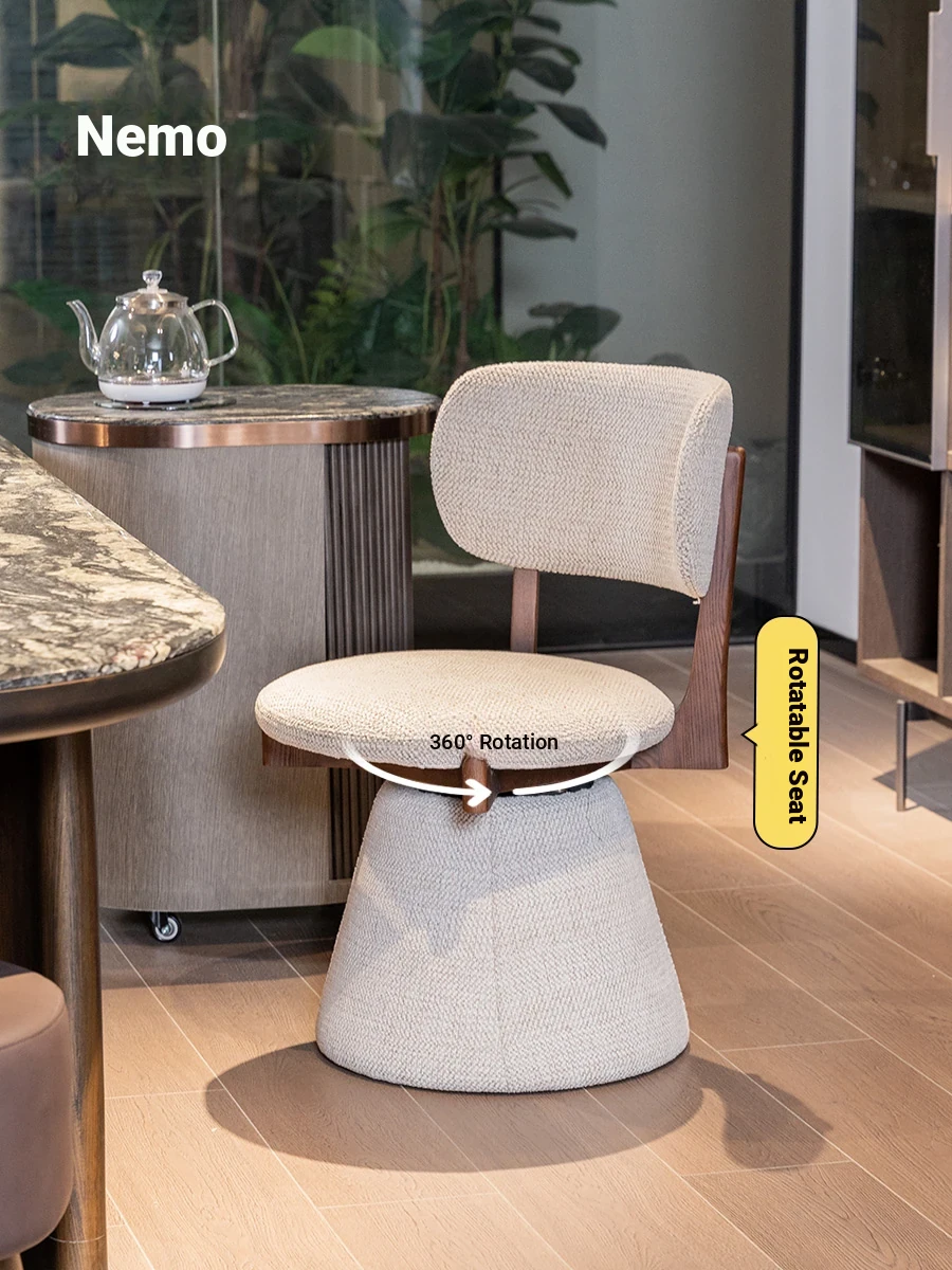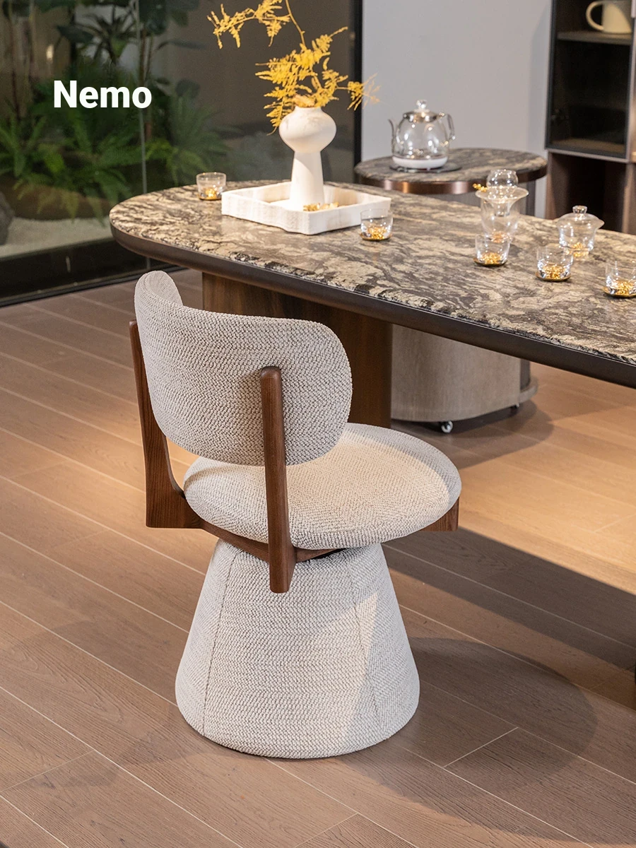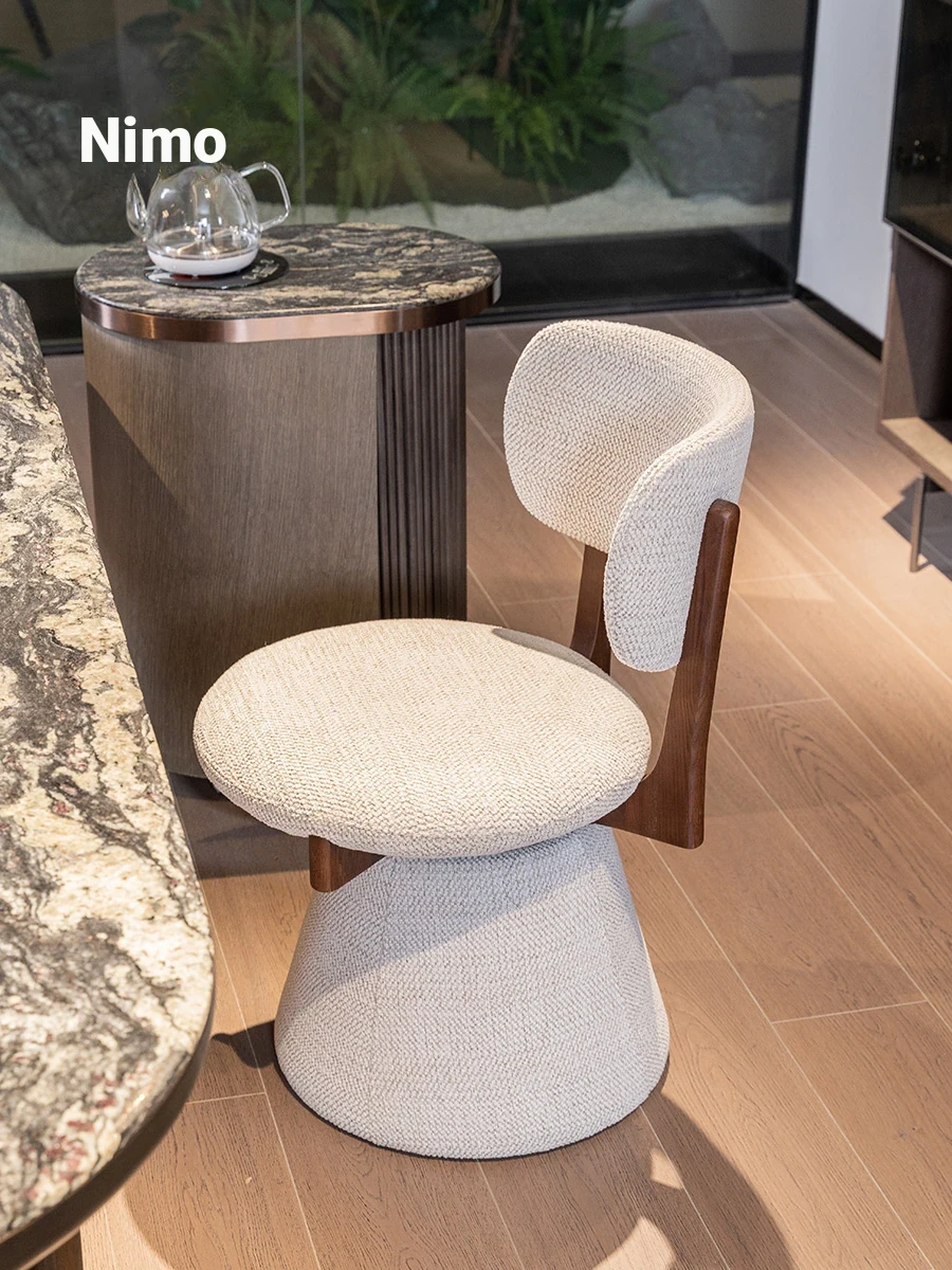 Nimo 2025 New White Ash Wood Premium Leather Book Chair - Elegant Tea Chair with Song Aesthetics, Stylish Swivel Dining Chair for Sophisticated Living Spaces