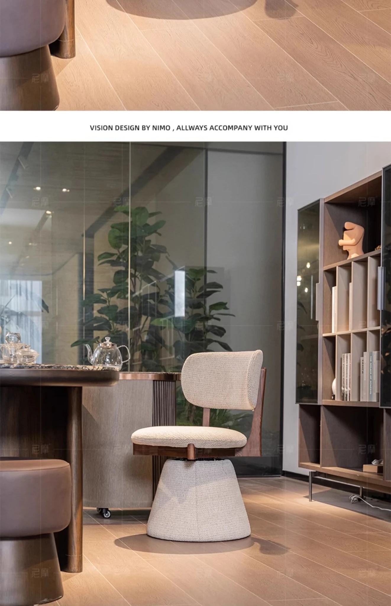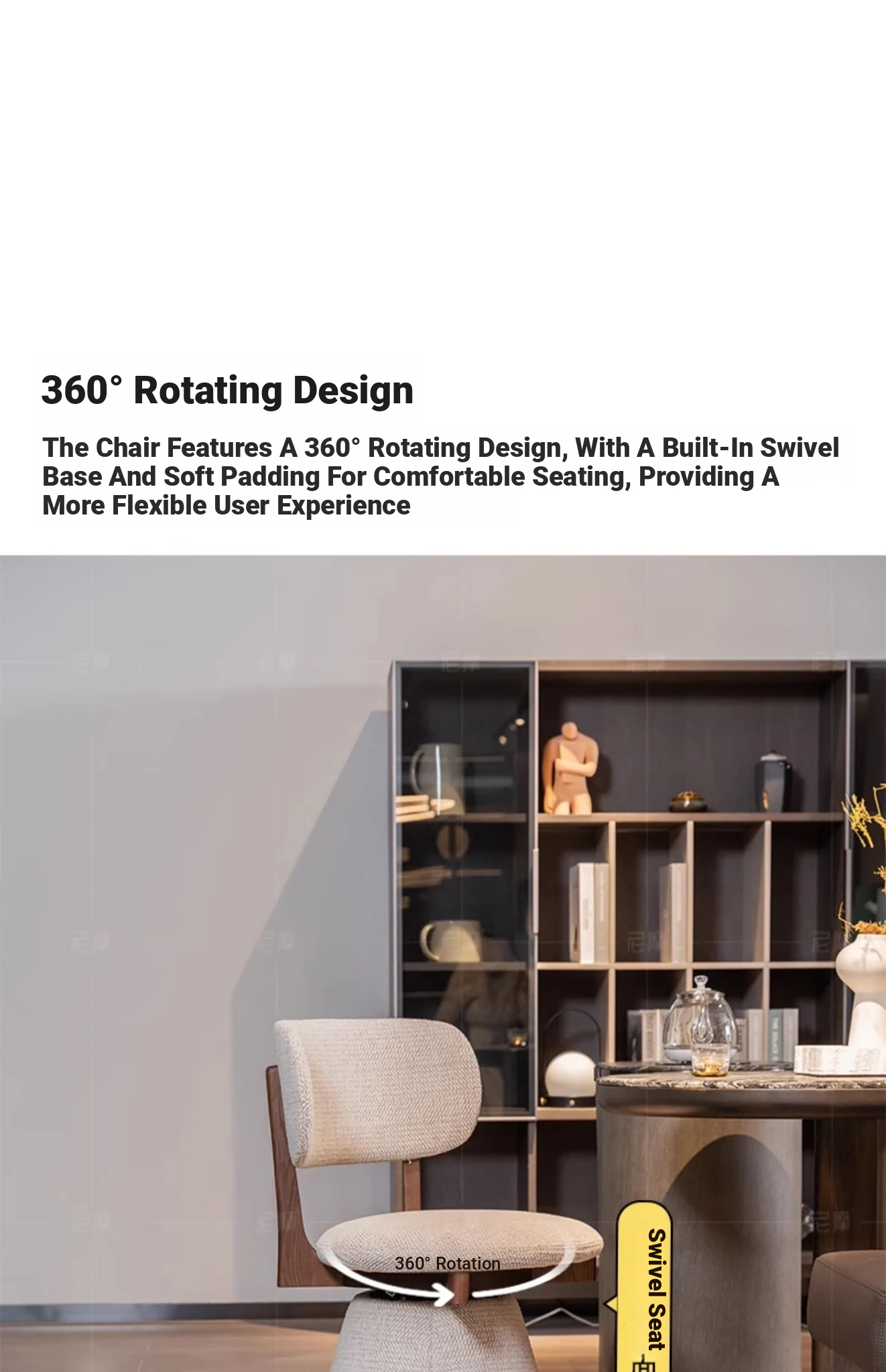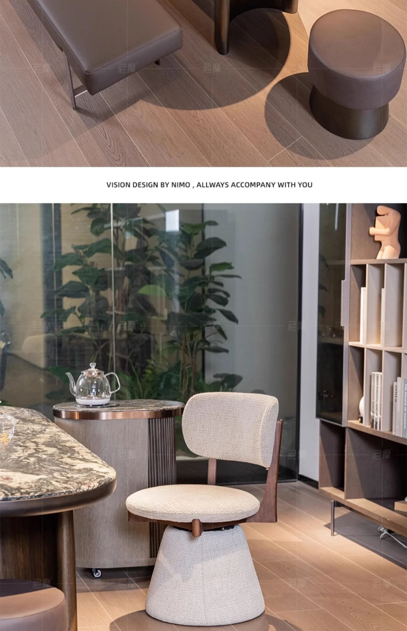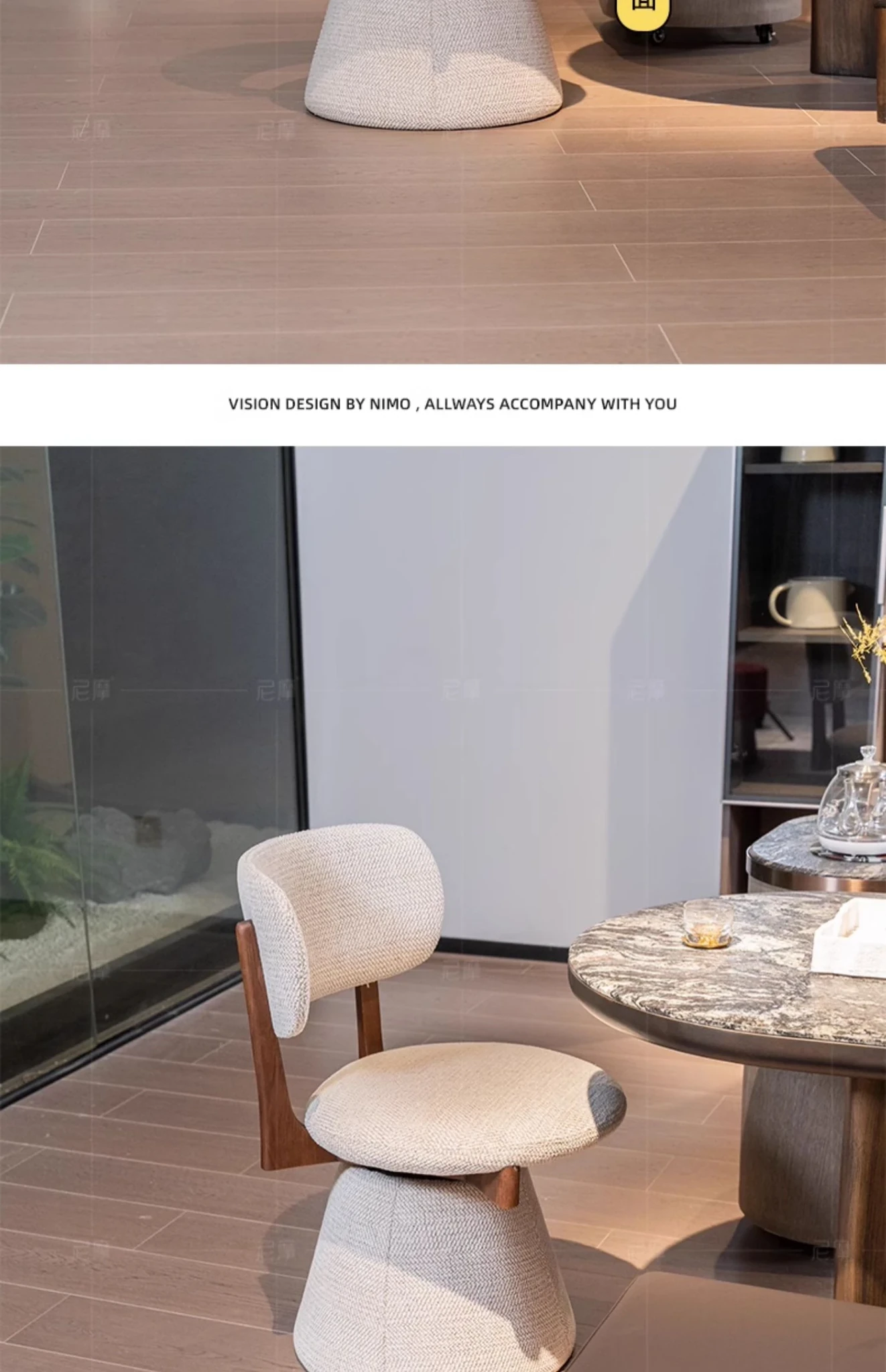Nimo 2025 New White Ash Wood Premium Leather Book Chair - Elegant Tea Chair with Song Aesthetics, Stylish Swivel Dining Chair for Sophisticated Living Spaces