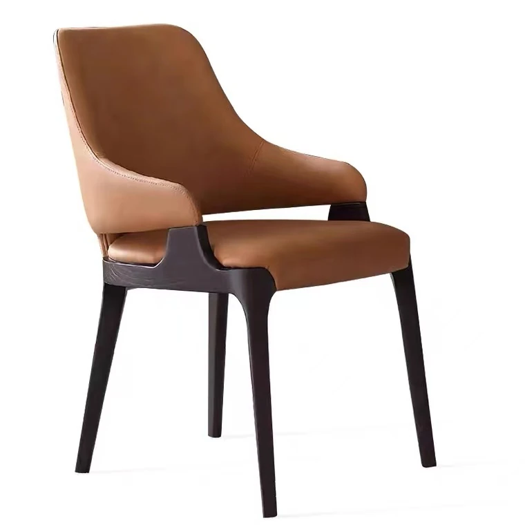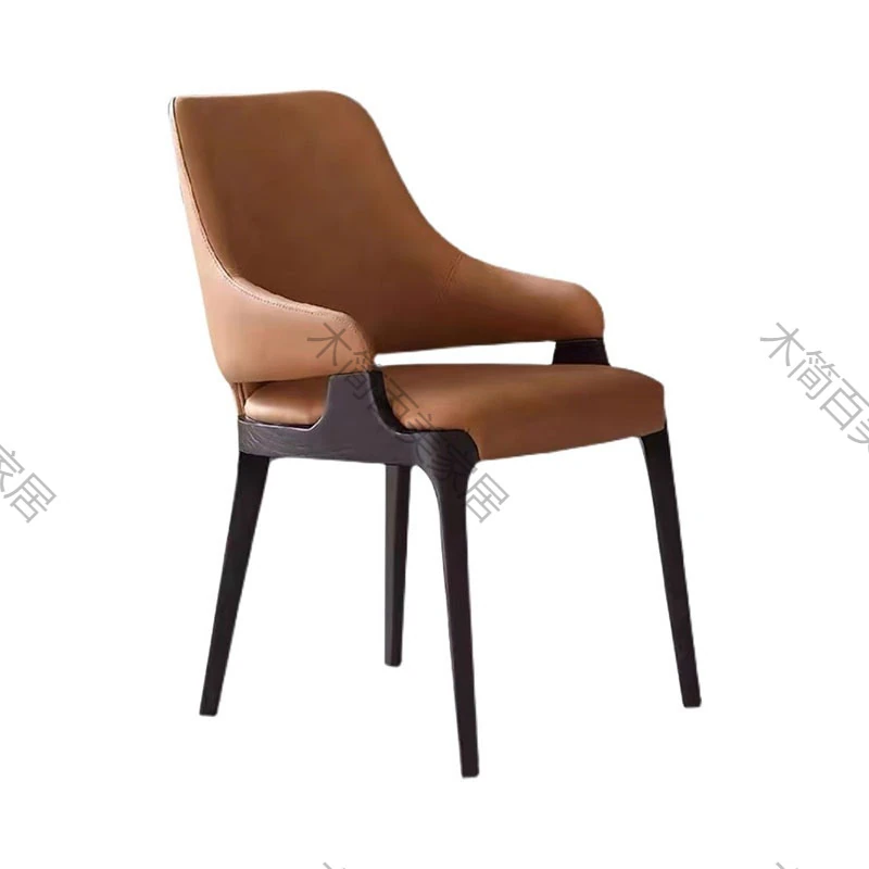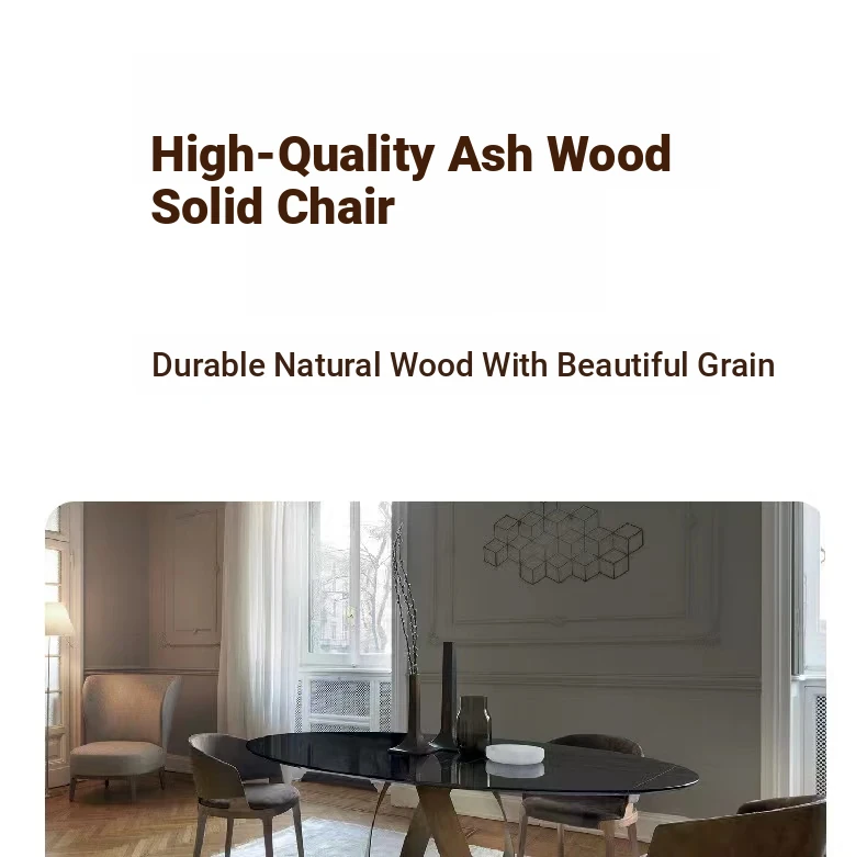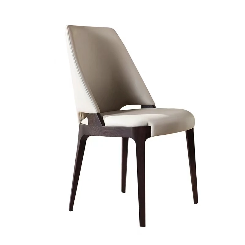 Nordic Modern Minimalist Solid Wood Dining Chair - Leather Accent Designer Restaurant Chair in Ash Wood - High-End Comfort for Your Dining Space
