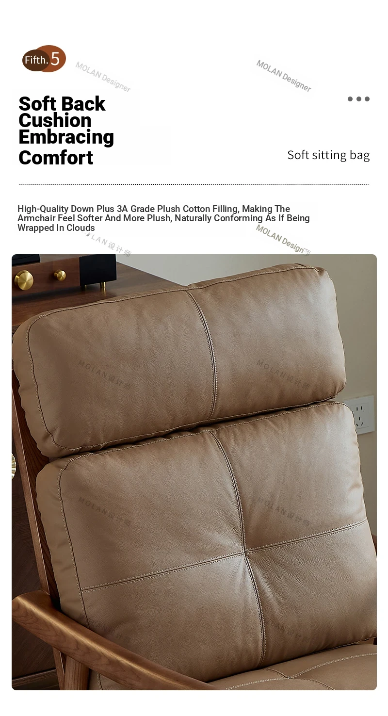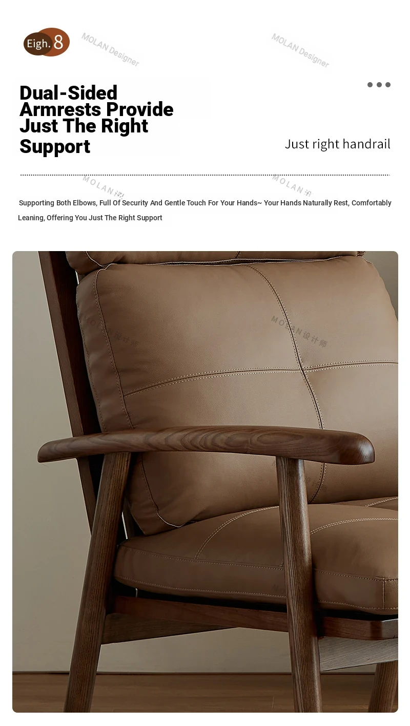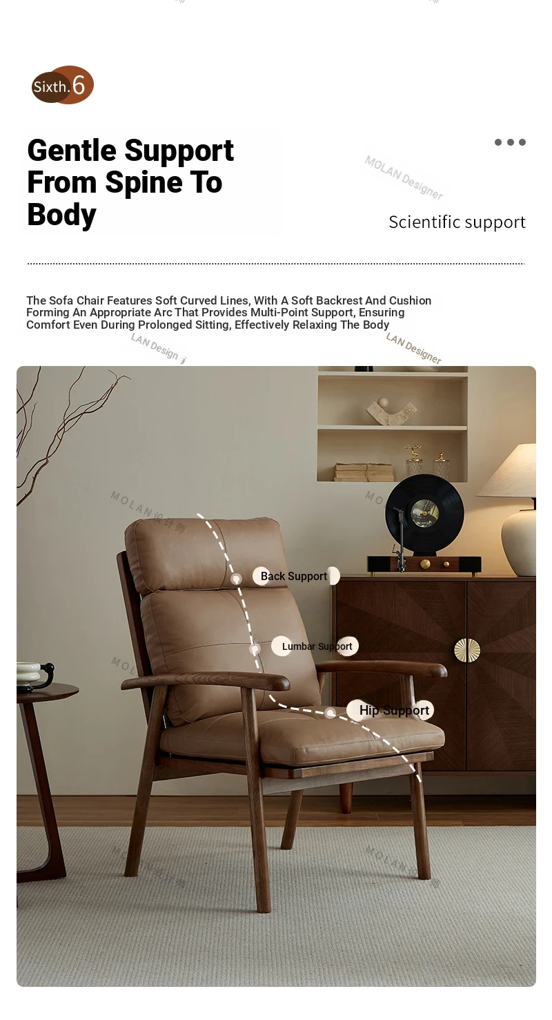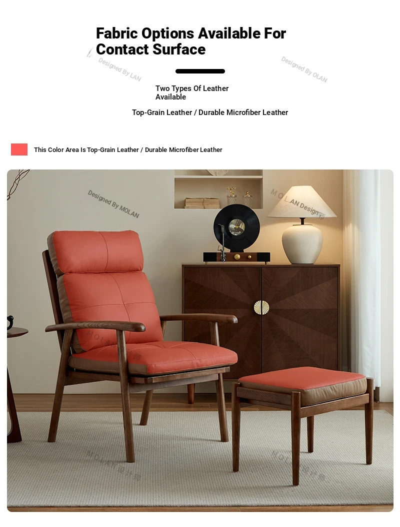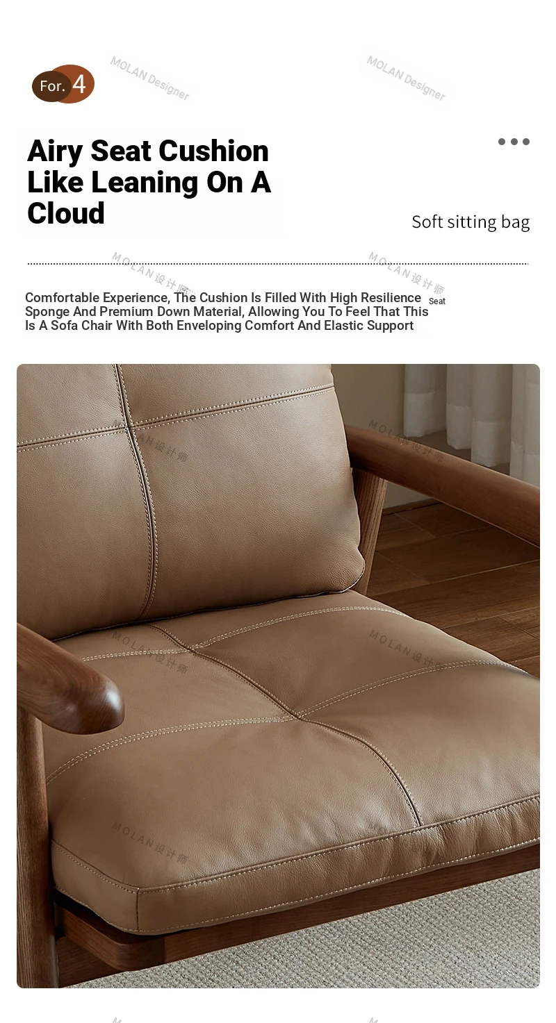 Nordic Solid Wood Genuine Leather Sofa Chair - Modern Minimalist Lounge Chair for Living Room and Balcony, Elegant Single Armchair with Headrest, Perfect for Relaxation