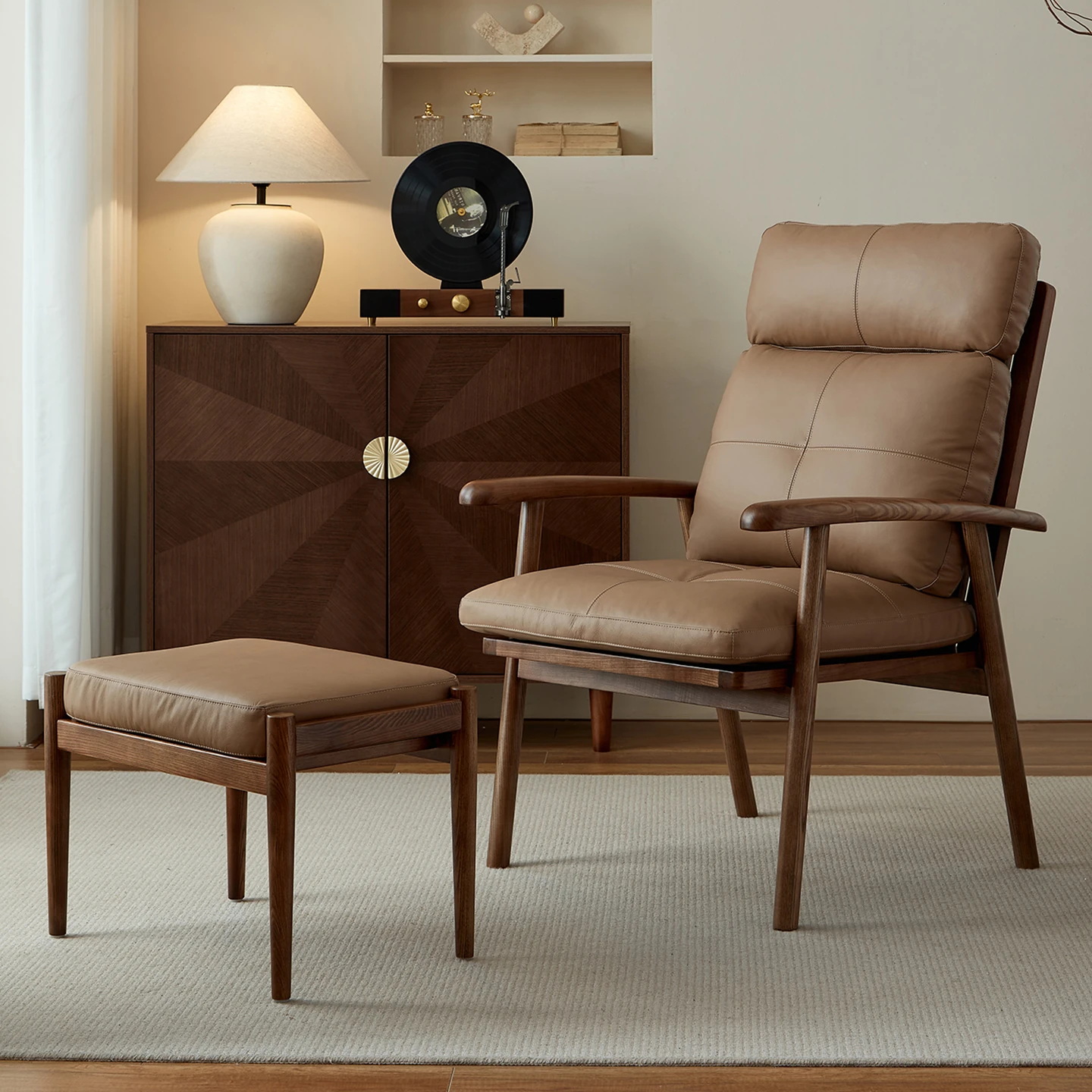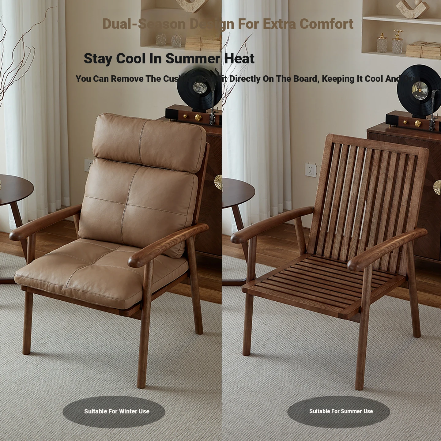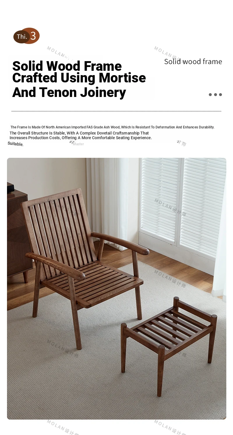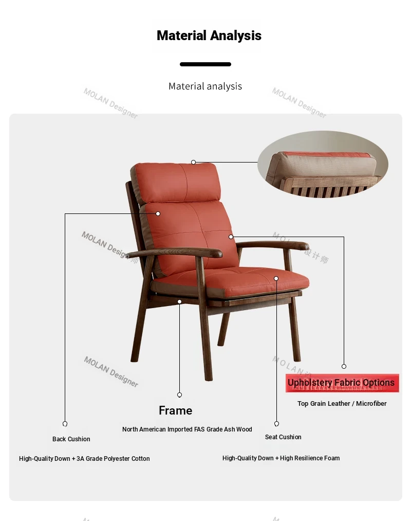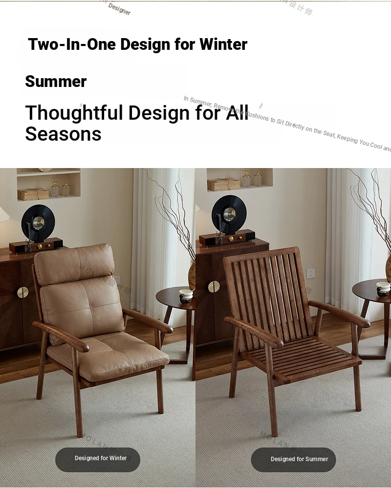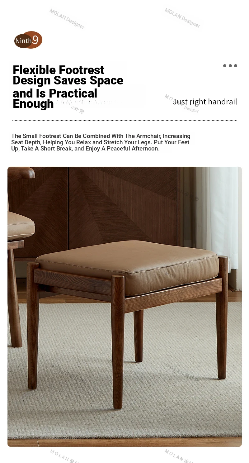 Nordic Solid Wood Genuine Leather Sofa Chair - Modern Minimalist Lounge Chair for Living Room and Balcony, Elegant Single Armchair with Headrest, Perfect for Relaxation