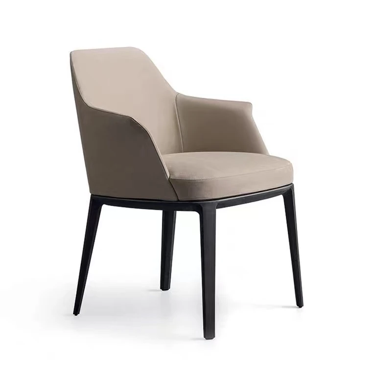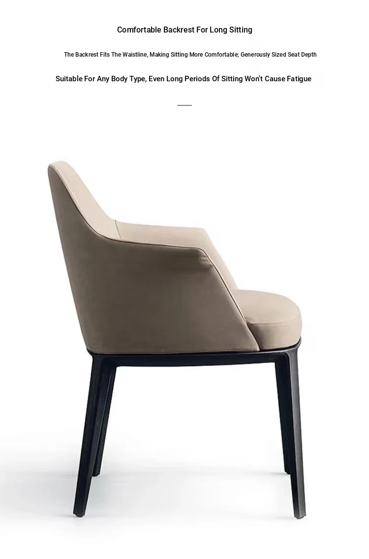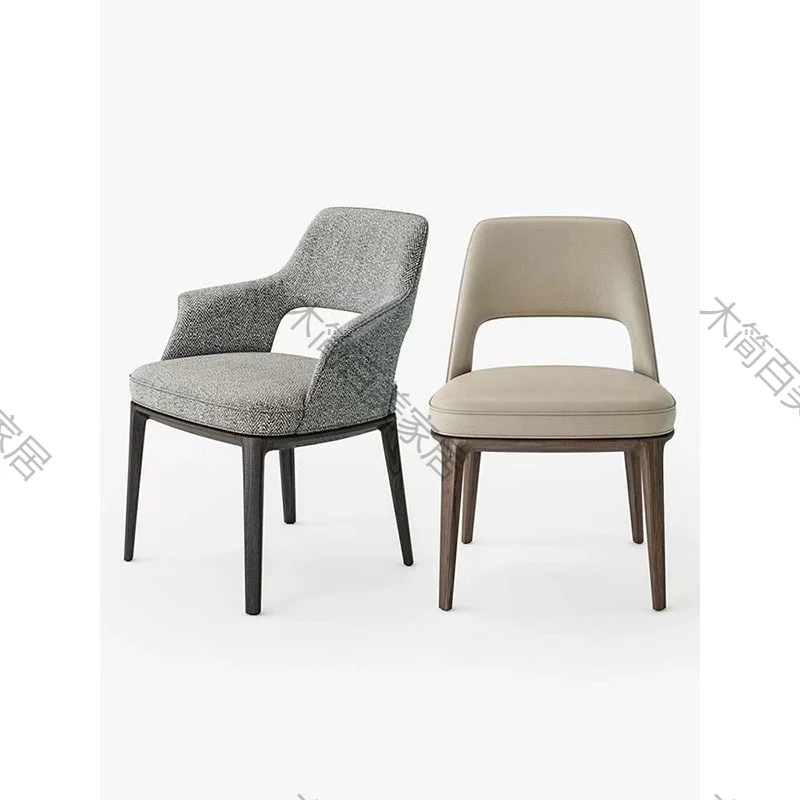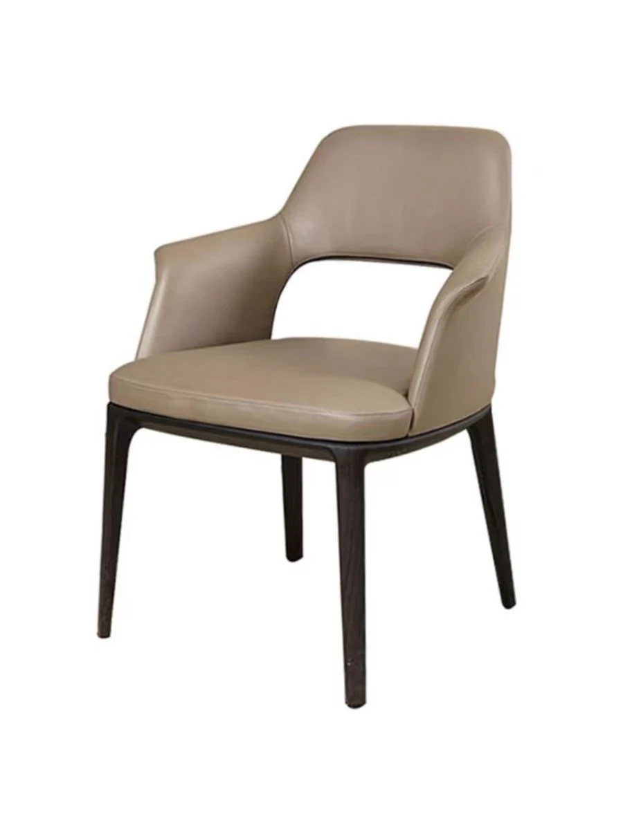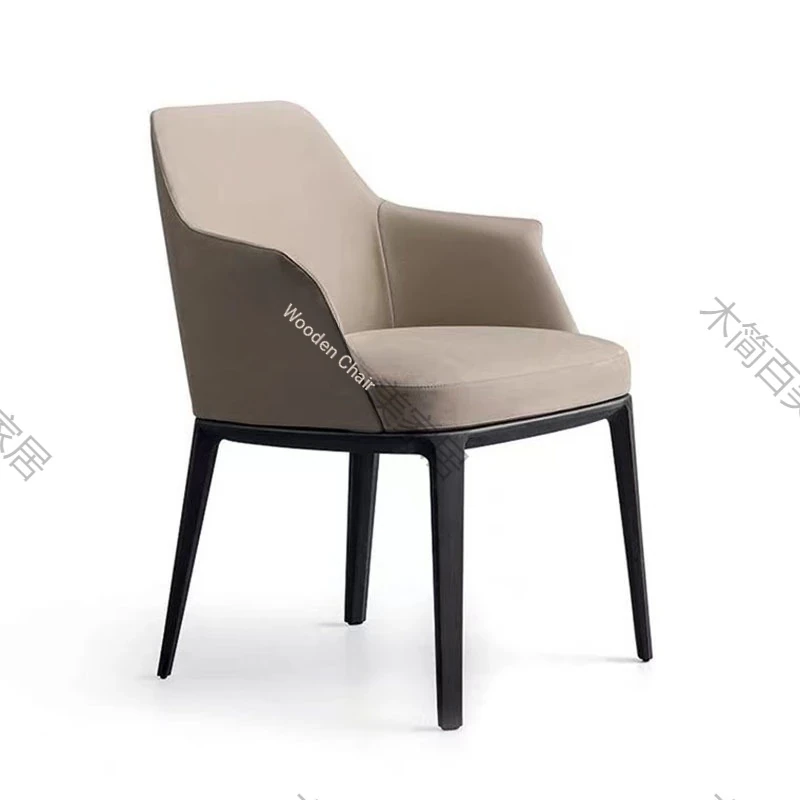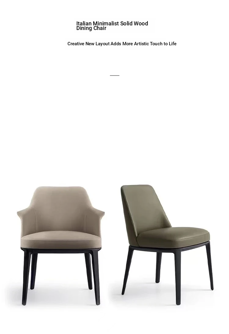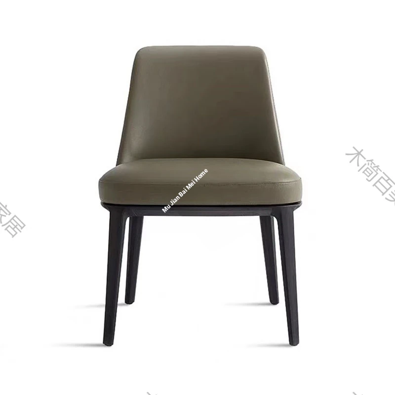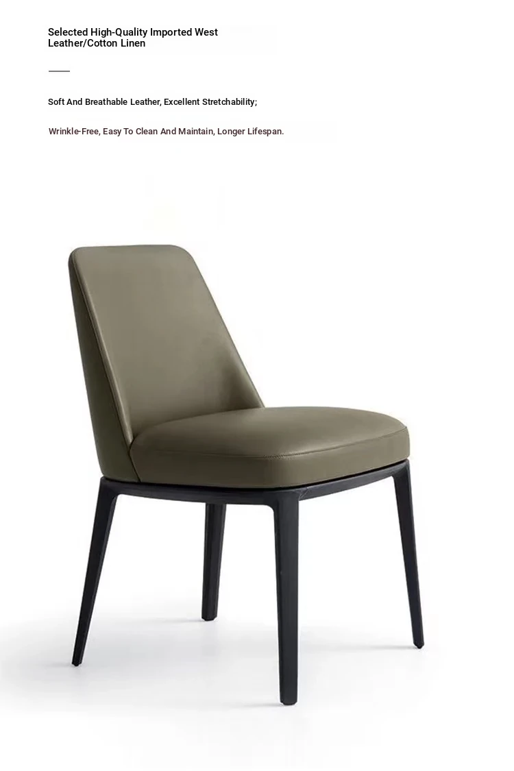 Nordic Solid Wood Leather Dining Chair - Modern Minimalist Lounge Chair for Home, Café, and Hotel Reception - Comfortable Backrest for Relaxation and Conversations
