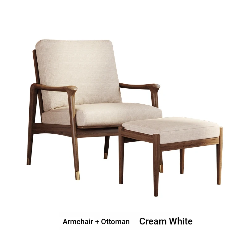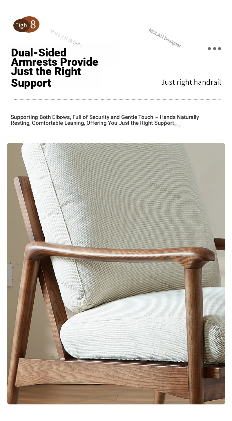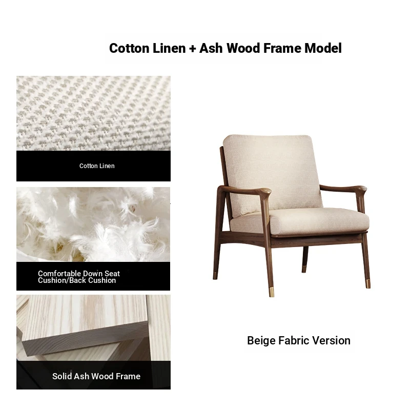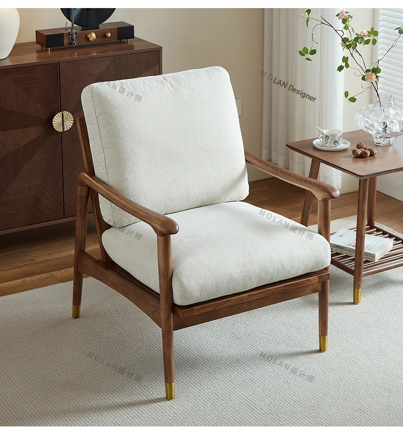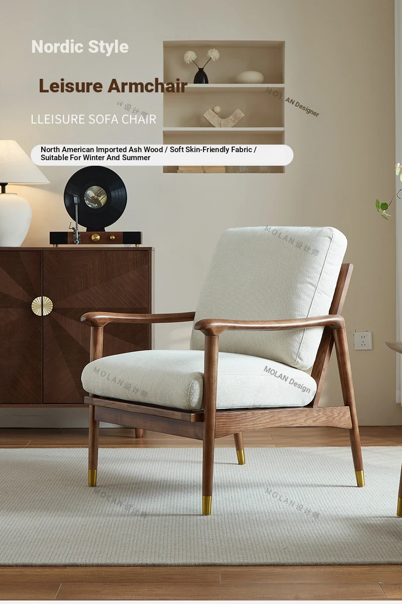 Nordic Solid Wood Leisure Armchair - Designer Fabric Luxury Lazy Sofa, Modern Upholstered Accent Chair for Cozy Living Spaces