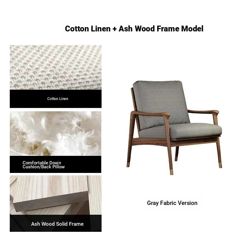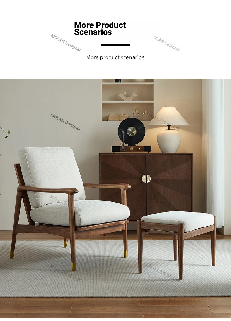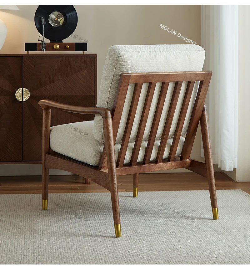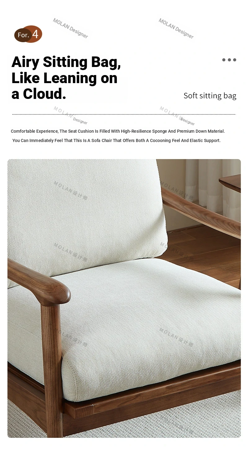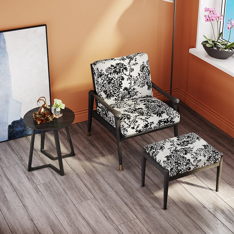 Nordic Solid Wood Leisure Armchair - Designer Fabric Luxury Lazy Sofa, Modern Upholstered Accent Chair for Cozy Living Spaces