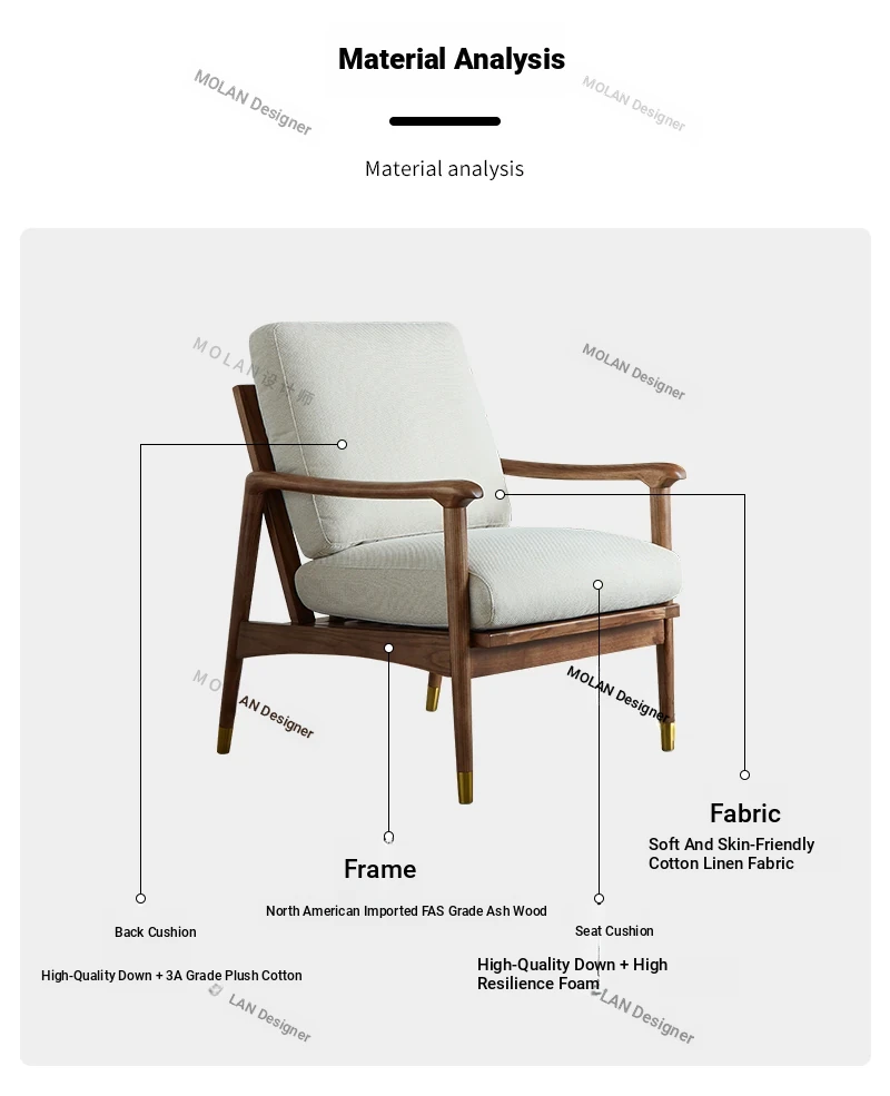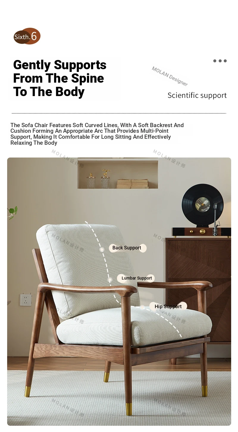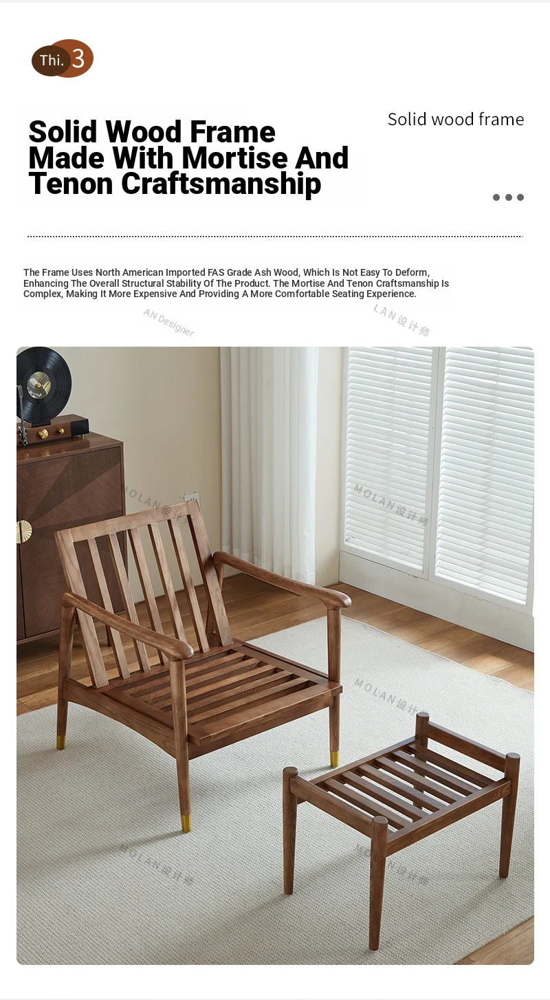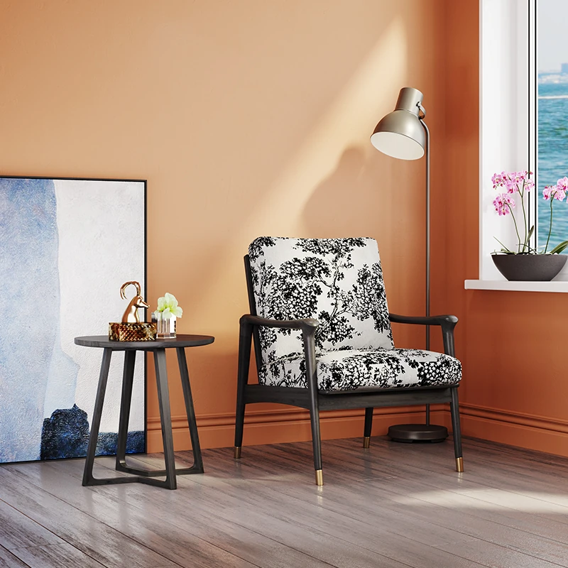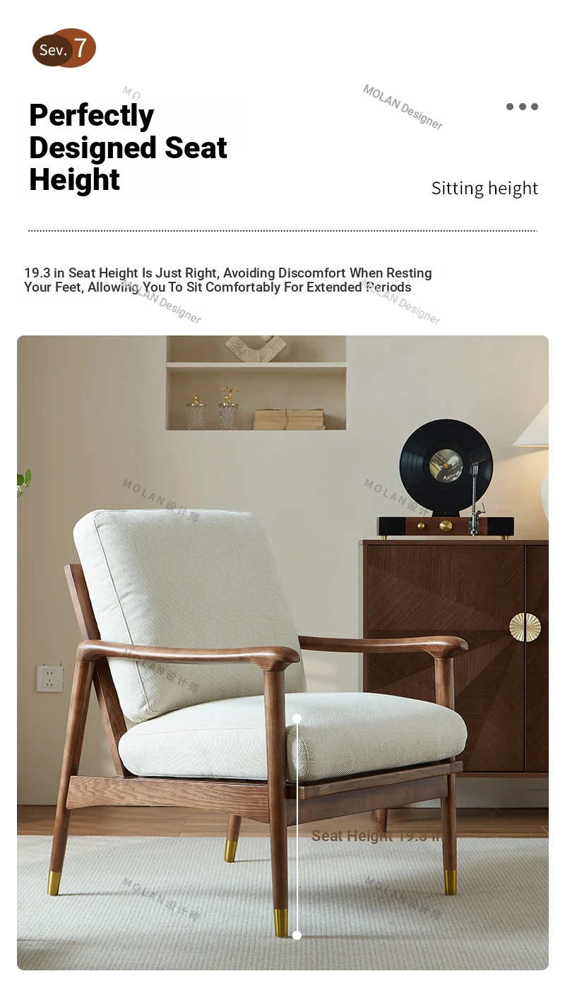 Nordic Solid Wood Leisure Armchair - Designer Fabric Luxury Lazy Sofa, Modern Upholstered Accent Chair for Cozy Living Spaces