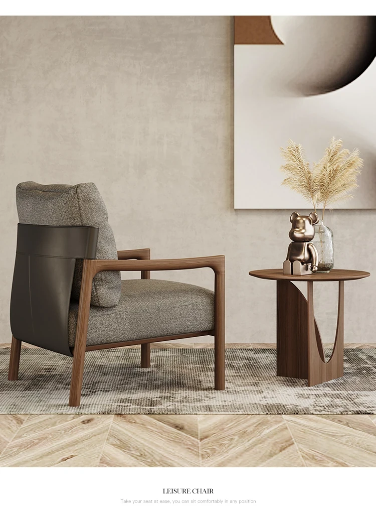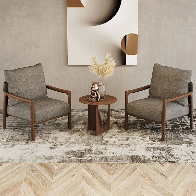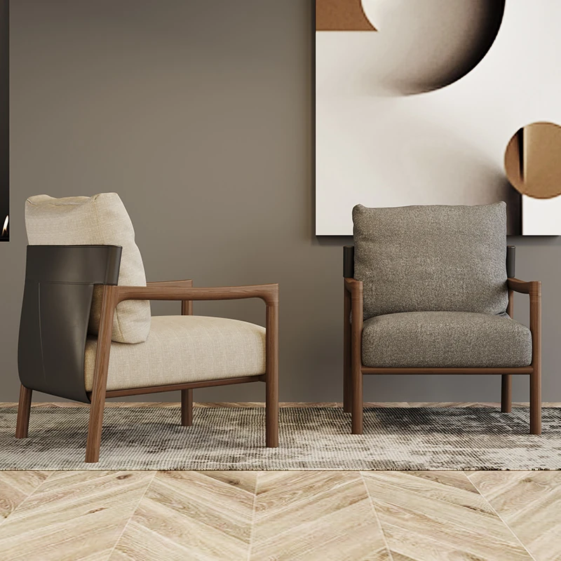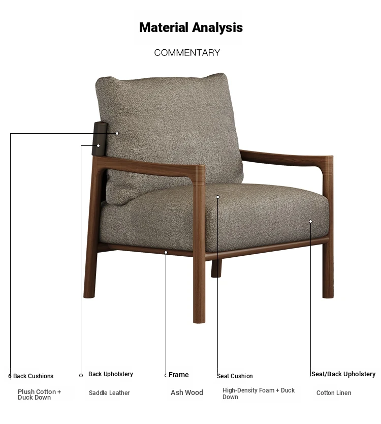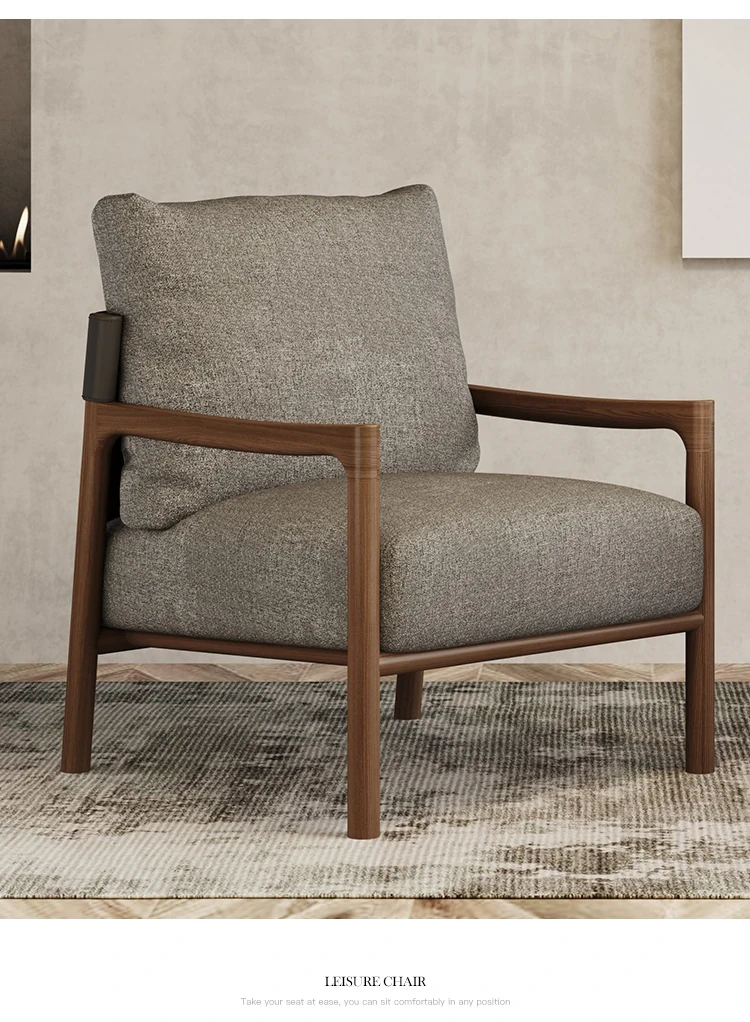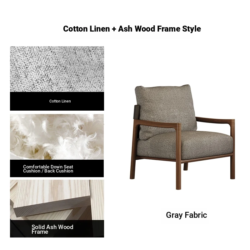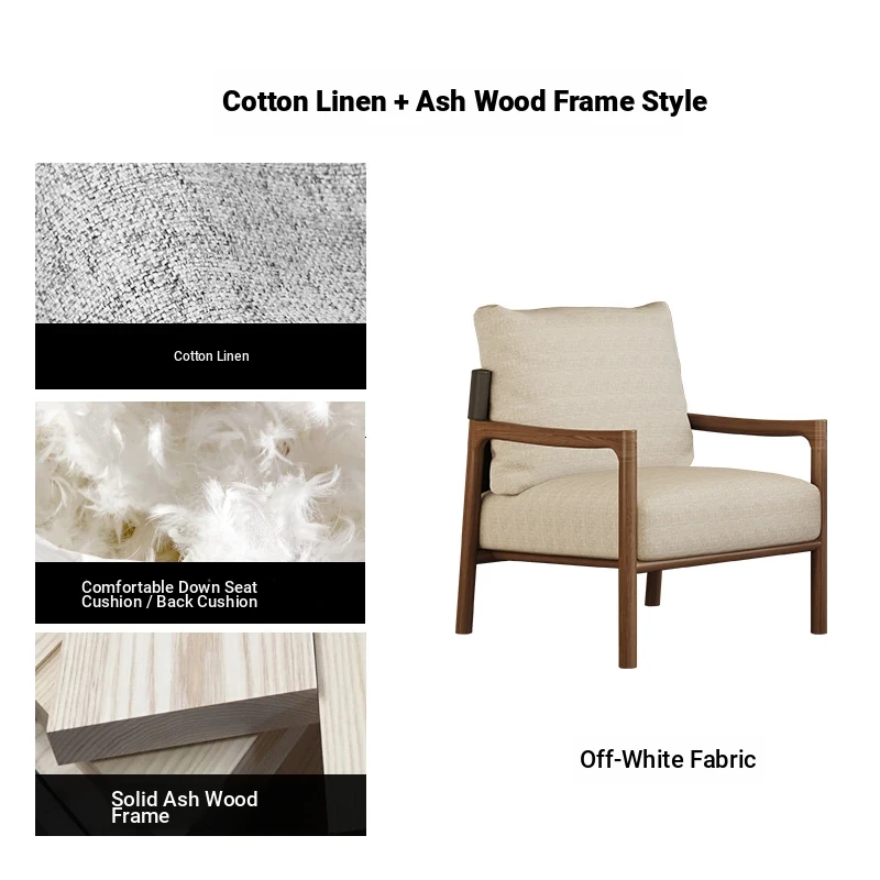 Nordic Solid Wood Leisure Chair - Artistic Single Sofa in Ash Wood, Perfect for a Luxurious Yet Cozy Living Room. Ideal for Relaxation and Style, this Armchair Combines Comfort with Elegance.
