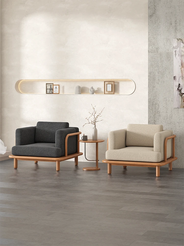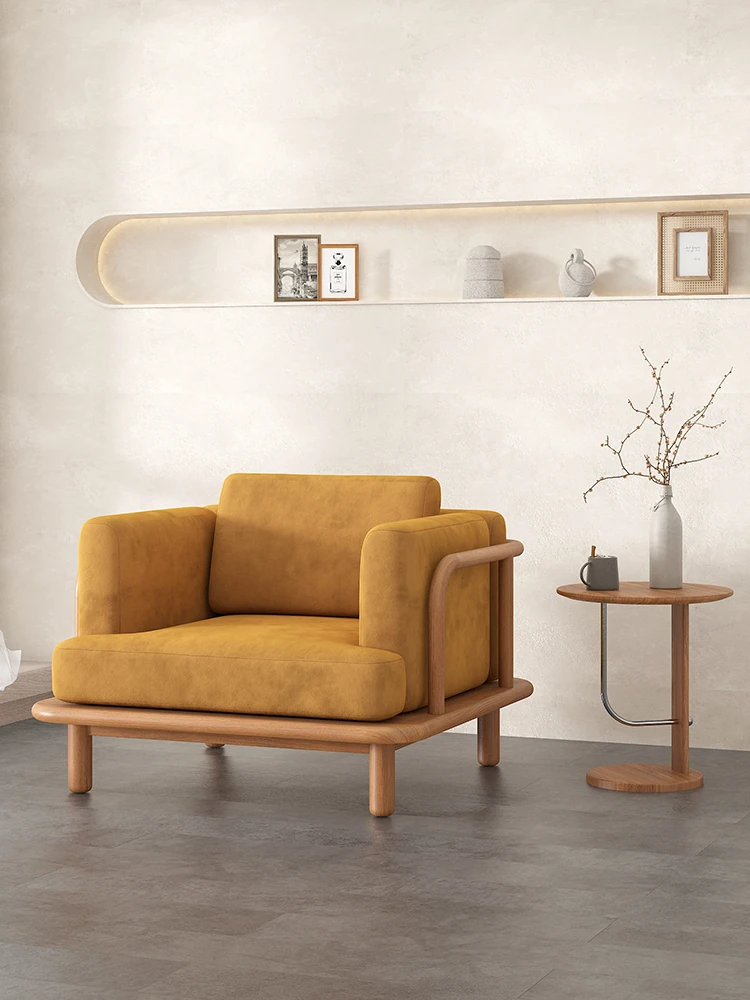 Nordic Solid Wood Single Sofa Chair - Modern Minimalist Design for Living Room and Balcony, Comfortable Lazy Chair by Designer