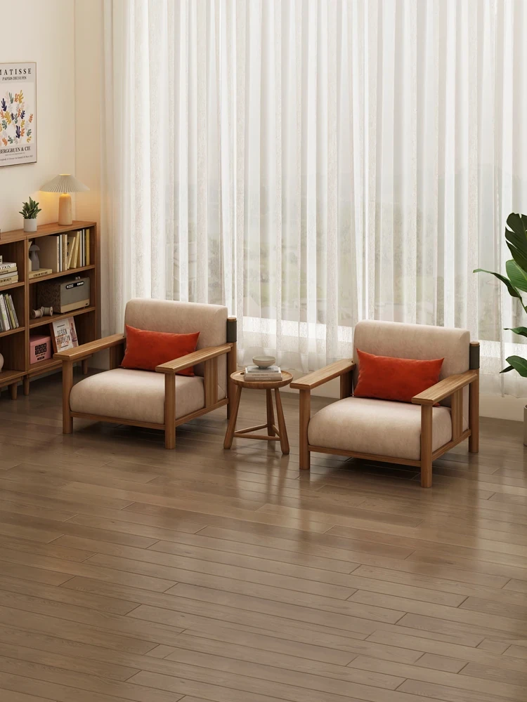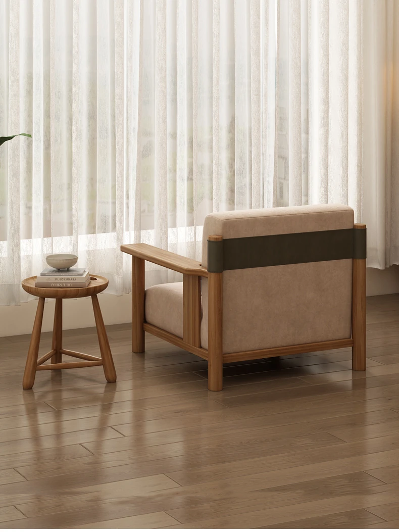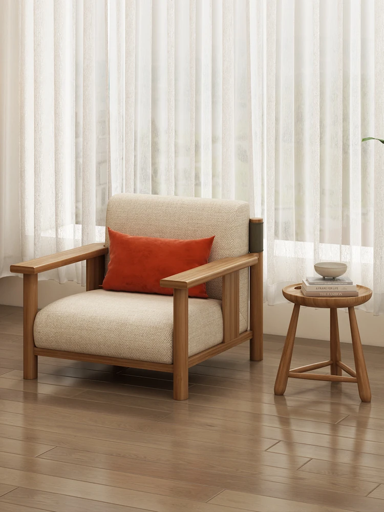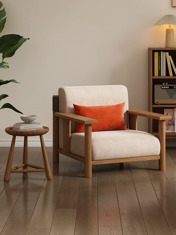 Nordic Solid Wood Single Sofa Chair - Modern Minimalist Lounge Chair for Living Room and Balcony, Embracing Wabi-Sabi Aesthetic with Mid-Century Charm