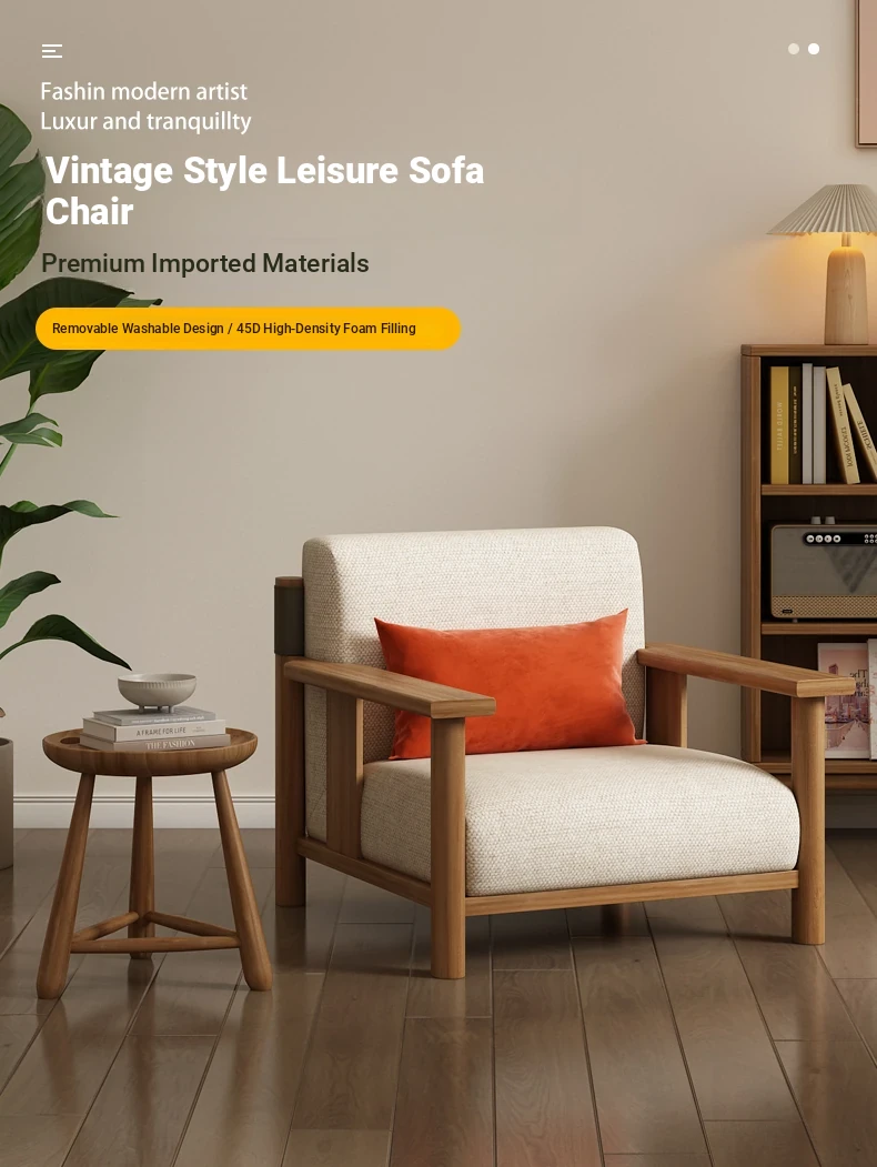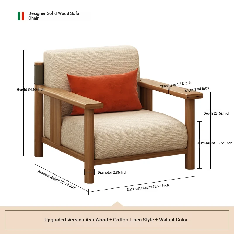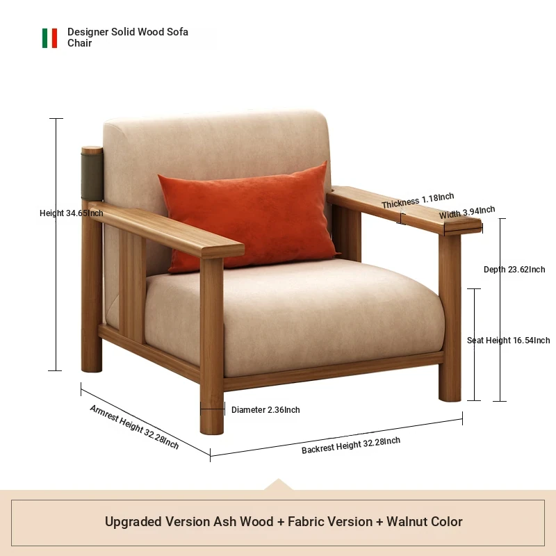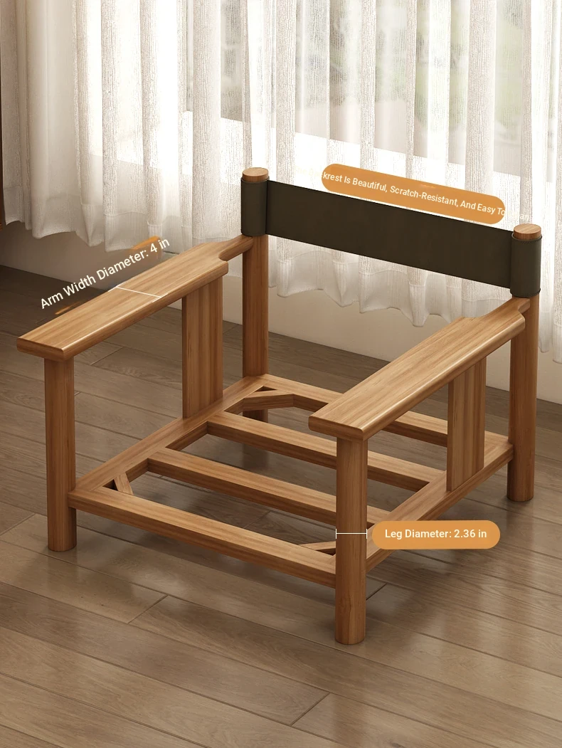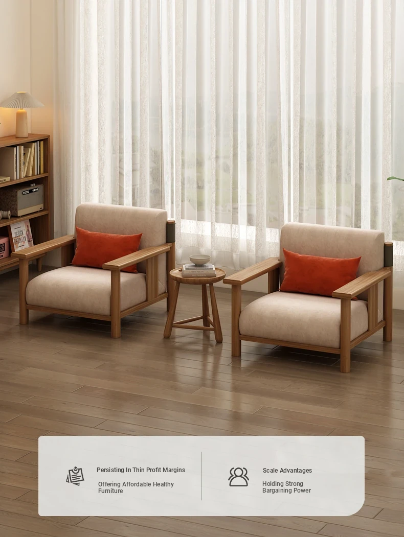 Nordic Solid Wood Single Sofa Chair - Modern Minimalist Lounge Chair for Living Room and Balcony, Embracing Wabi-Sabi Aesthetic with Mid-Century Charm