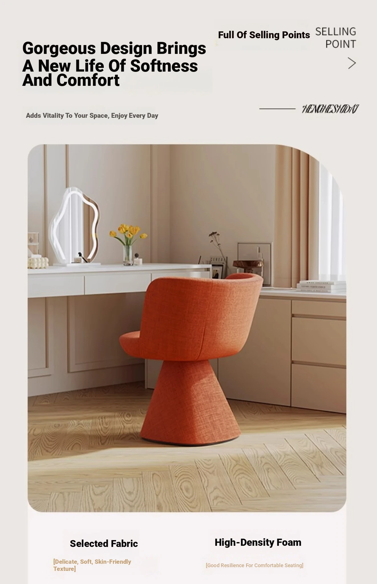 Nordic Style Rotating Makeup Stool - Chic Vanity Chair for Bedroom, Designer Lounge Chair in Creamy Aesthetic, Perfect for Your Makeup Station!