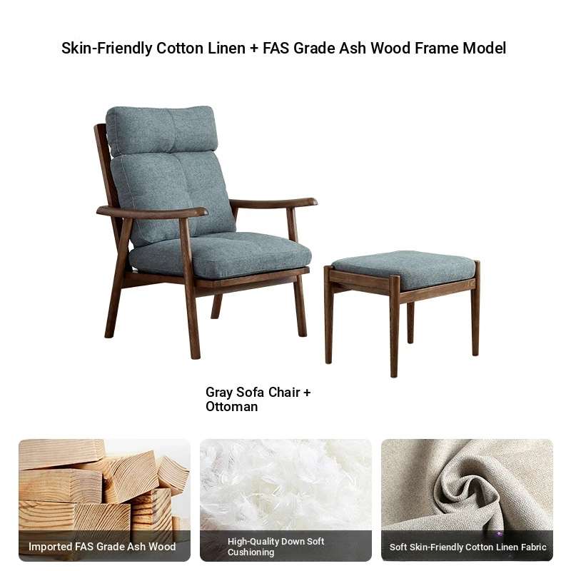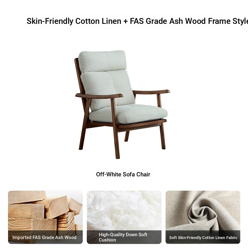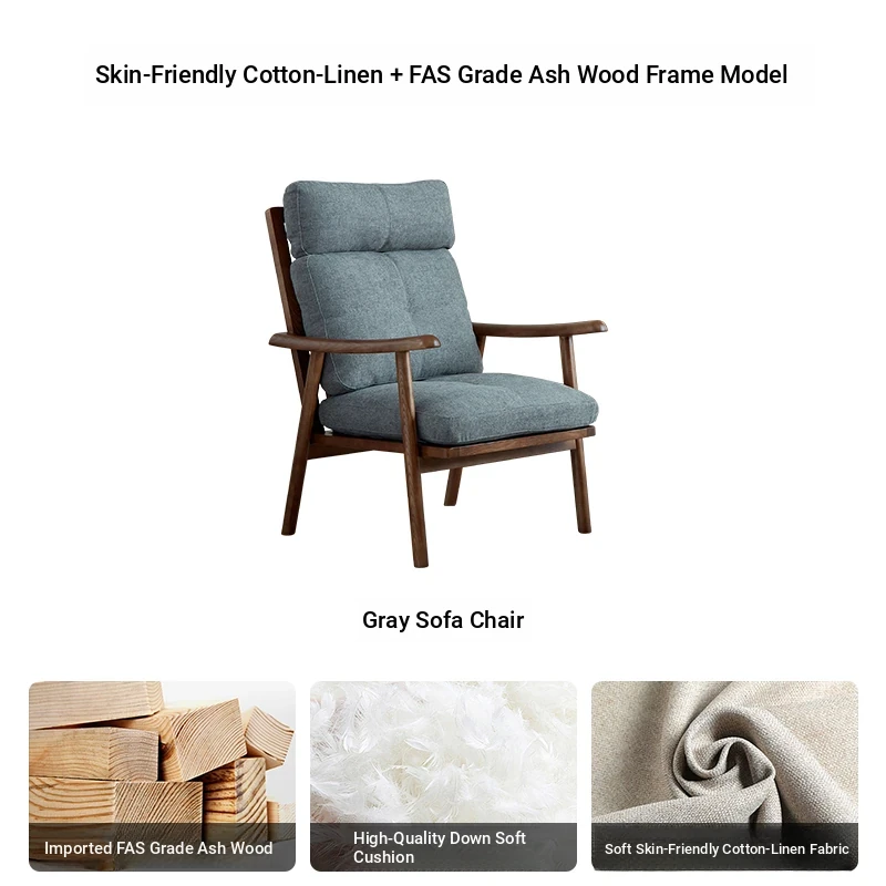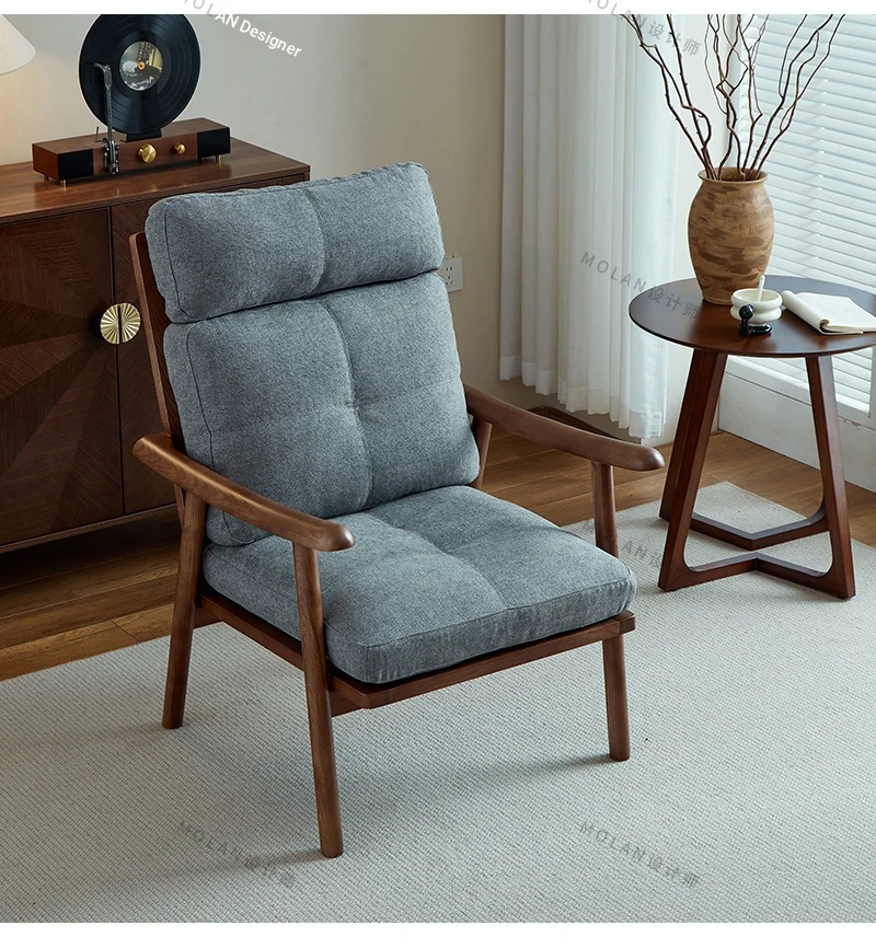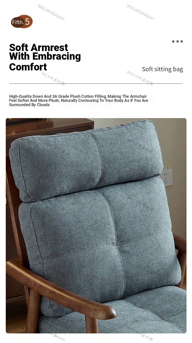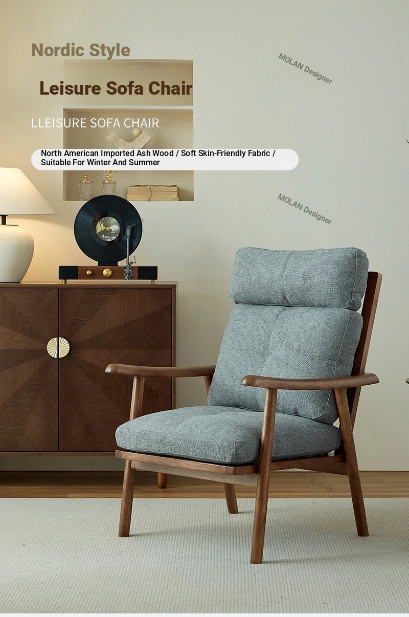 Nordic Style Solid Wood Fabric Leisure Chair - Designer Single Sofa for Living Room and Balcony, Trendy Headrest Chair, Perfect for Relaxation and Aesthetic Appeal