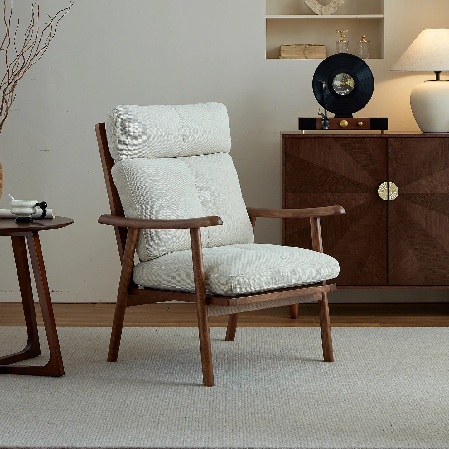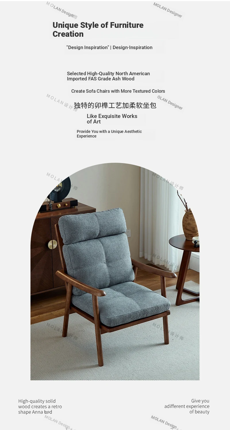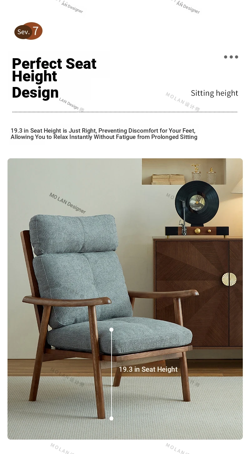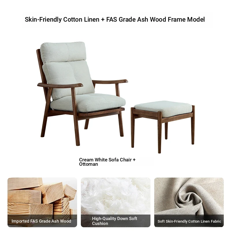 Nordic Style Solid Wood Fabric Leisure Chair - Designer Single Sofa for Living Room and Balcony, Trendy Headrest Chair, Perfect for Relaxation and Aesthetic Appeal