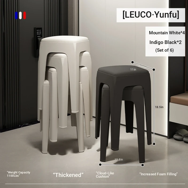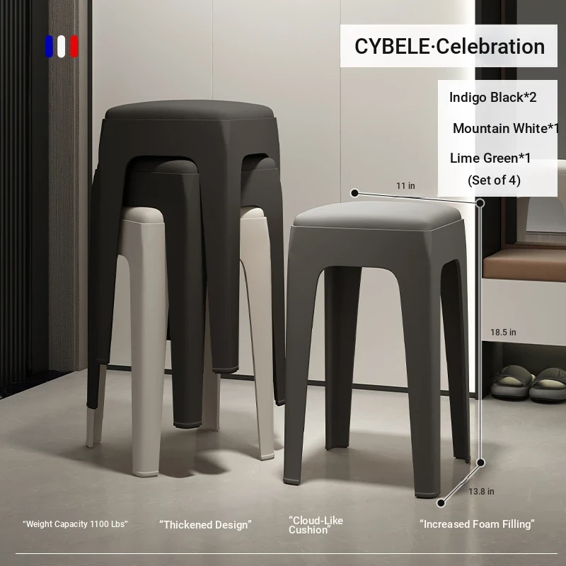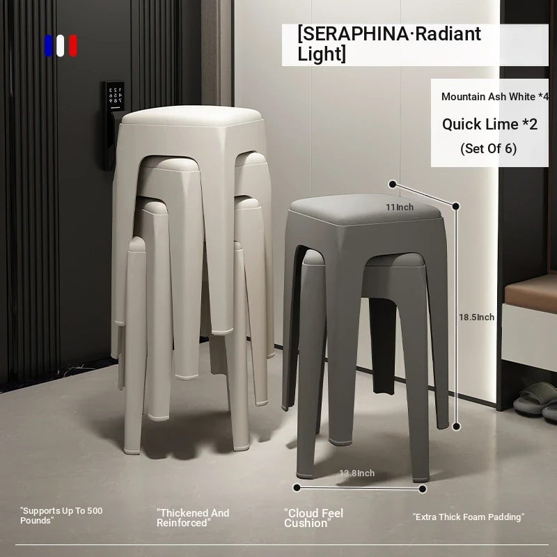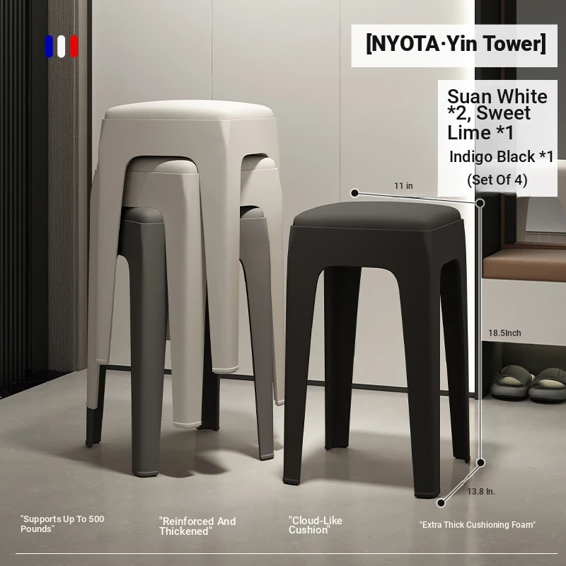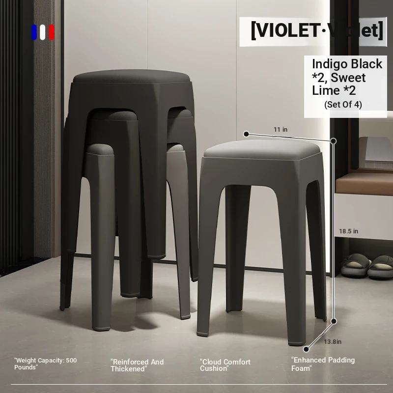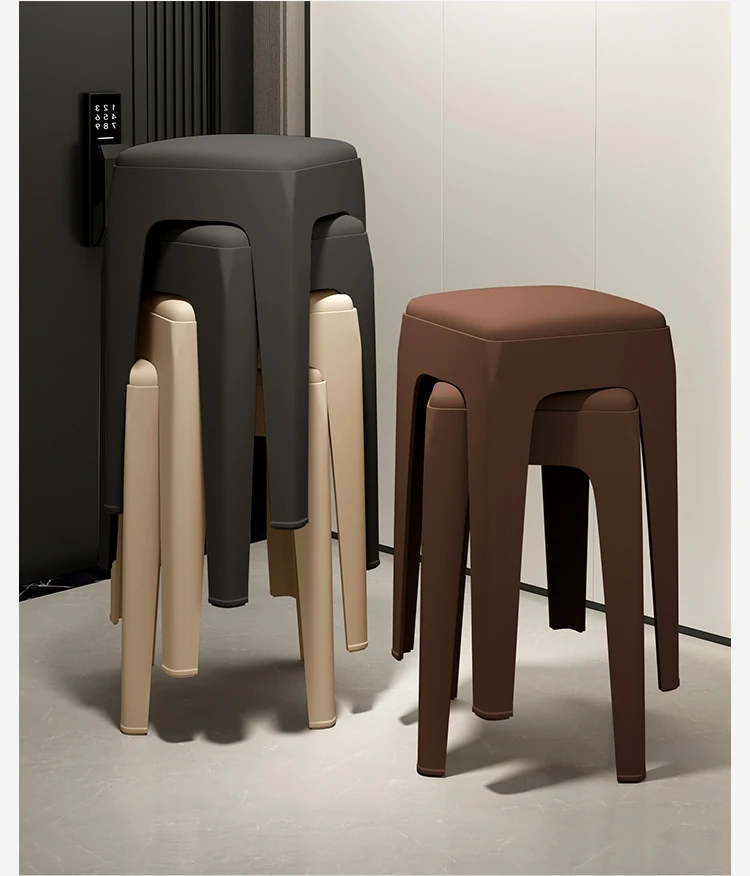 Premium French-Style Soft Plastic Stool - Thickened, Stackable, Minimalist Design for Home Use, Perfect for Dining Tables and Restaurants