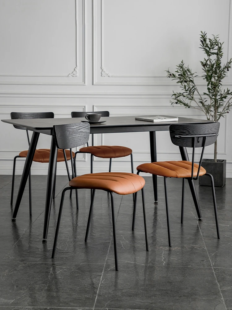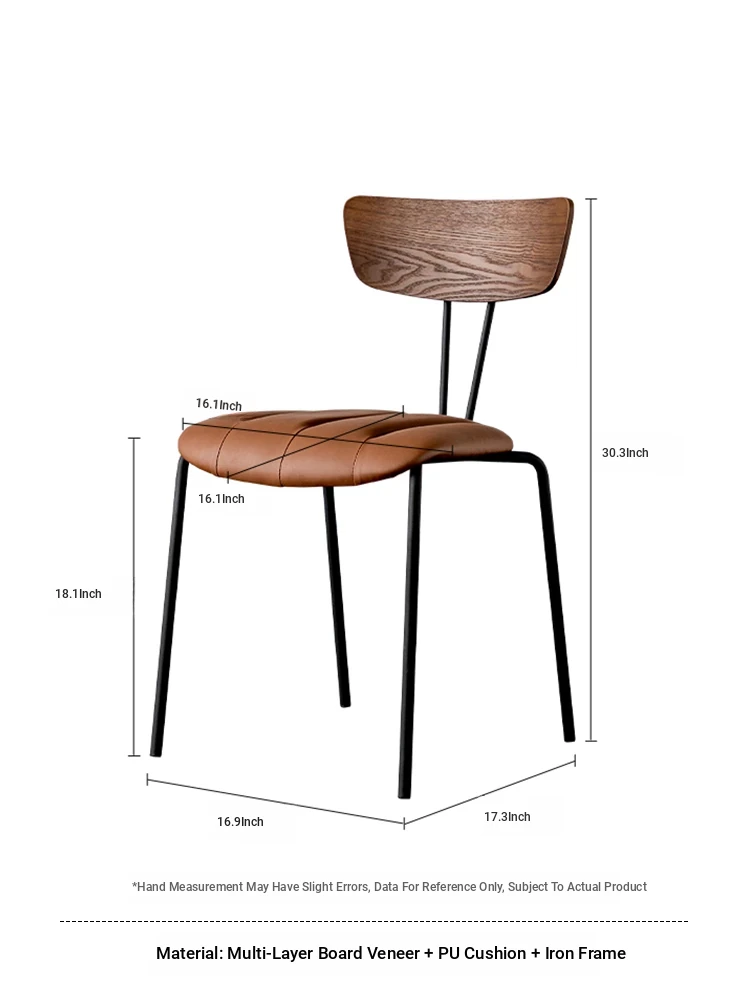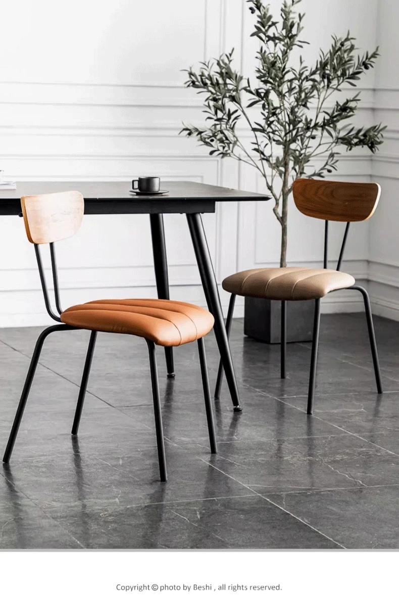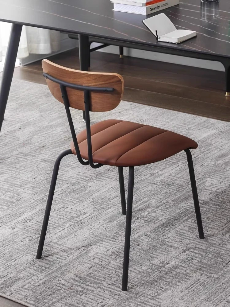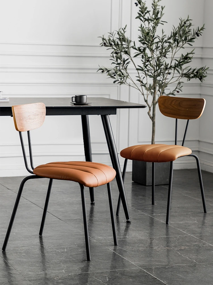 Walnut Backrest + Toffee Brown PU Classy Retro Stylish Dining Table and Chair 2024 New arrival Stool Backrest Coffee Normcore Chair [Praise Return]]