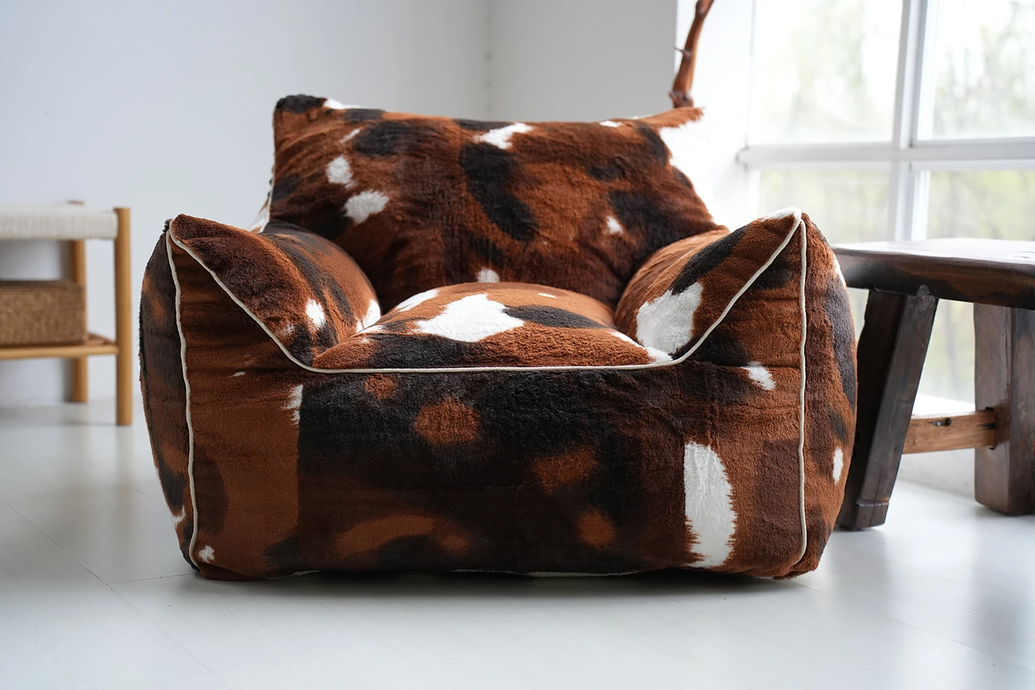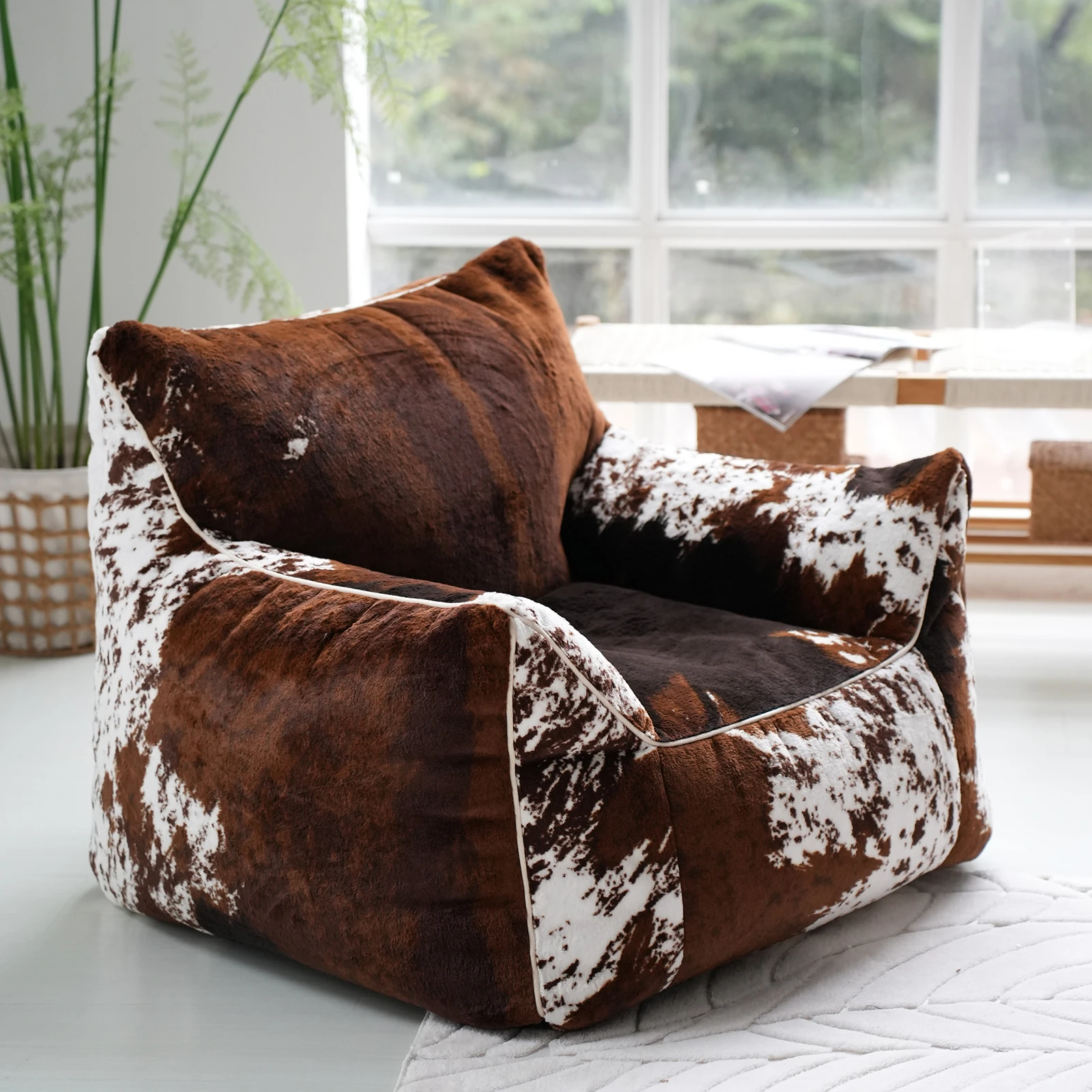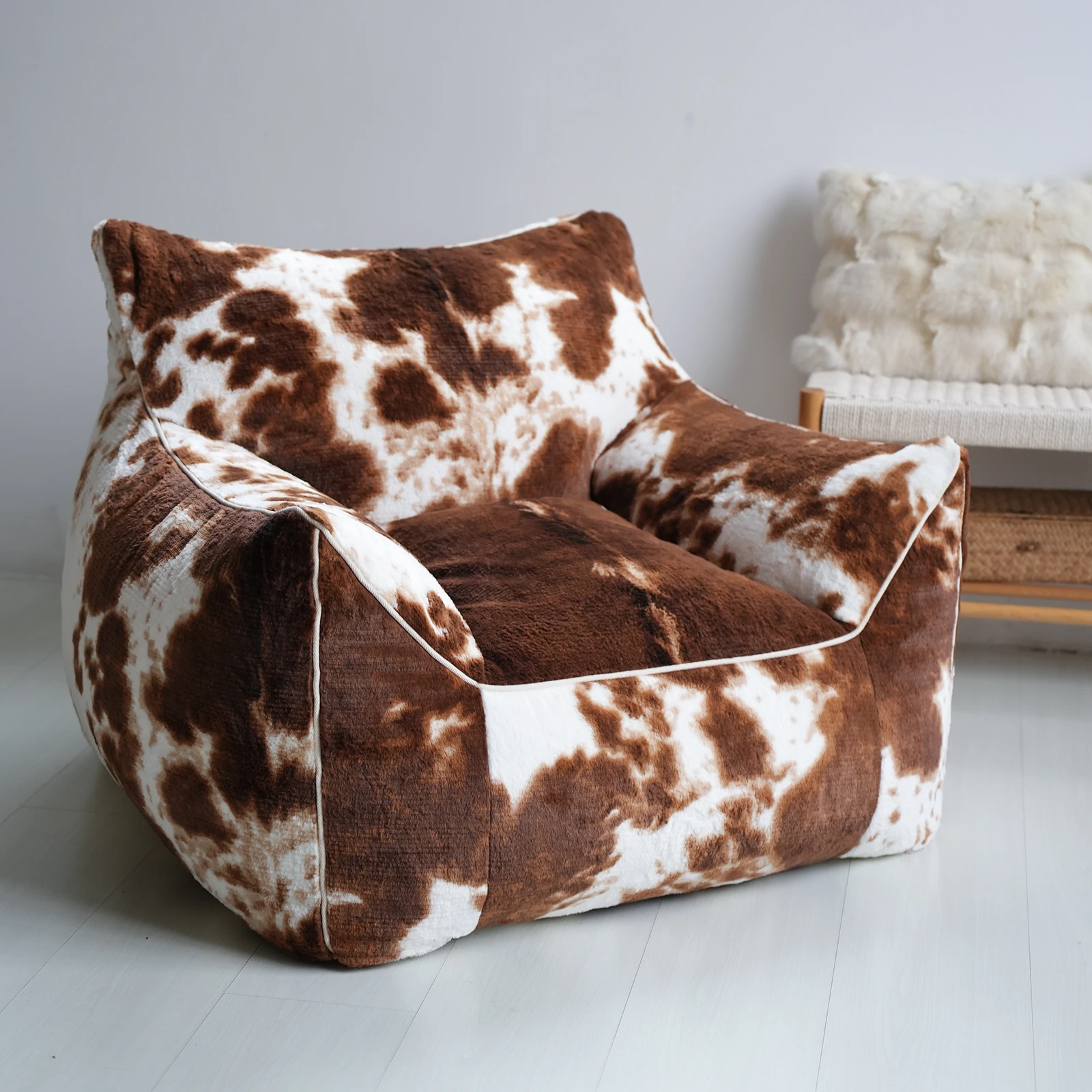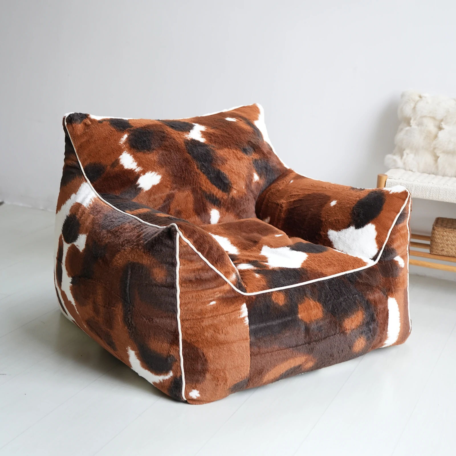 Realistic Faux Leather Lazy Sofa - Plush Animal Print Bean Bag Chair for Ultimate Comfort - Stylish and Unique Single Seat