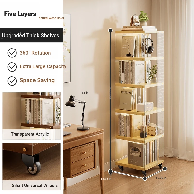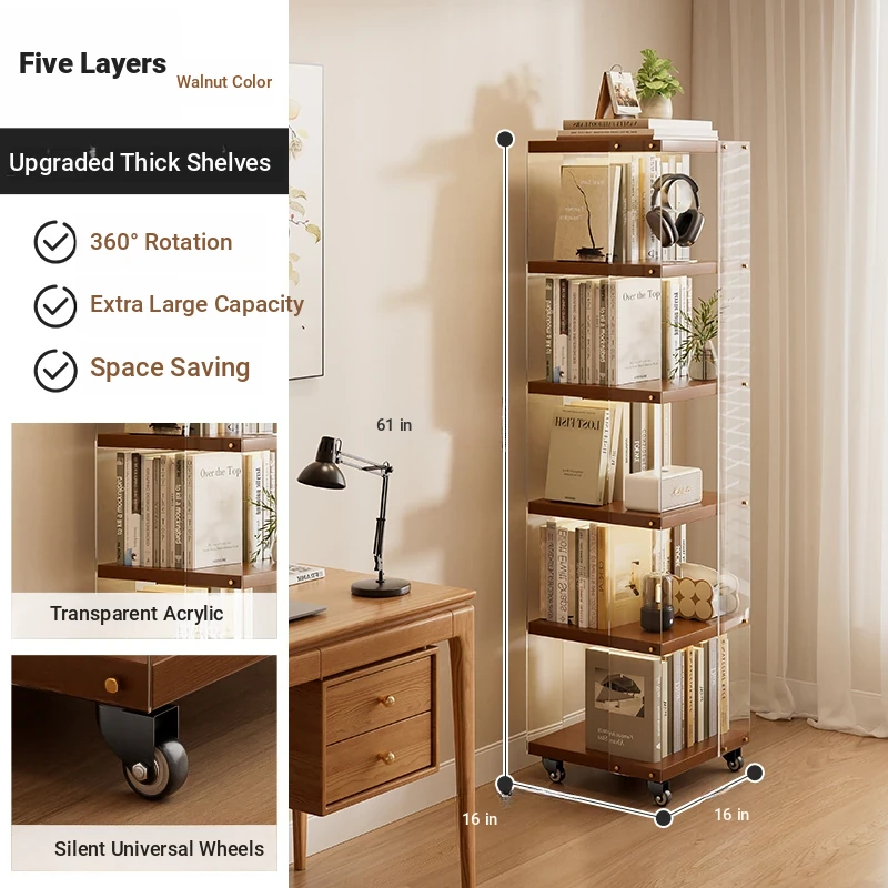 [HD Transparent] Five Layers-Walnut Color (360-degree Rotate) Removable