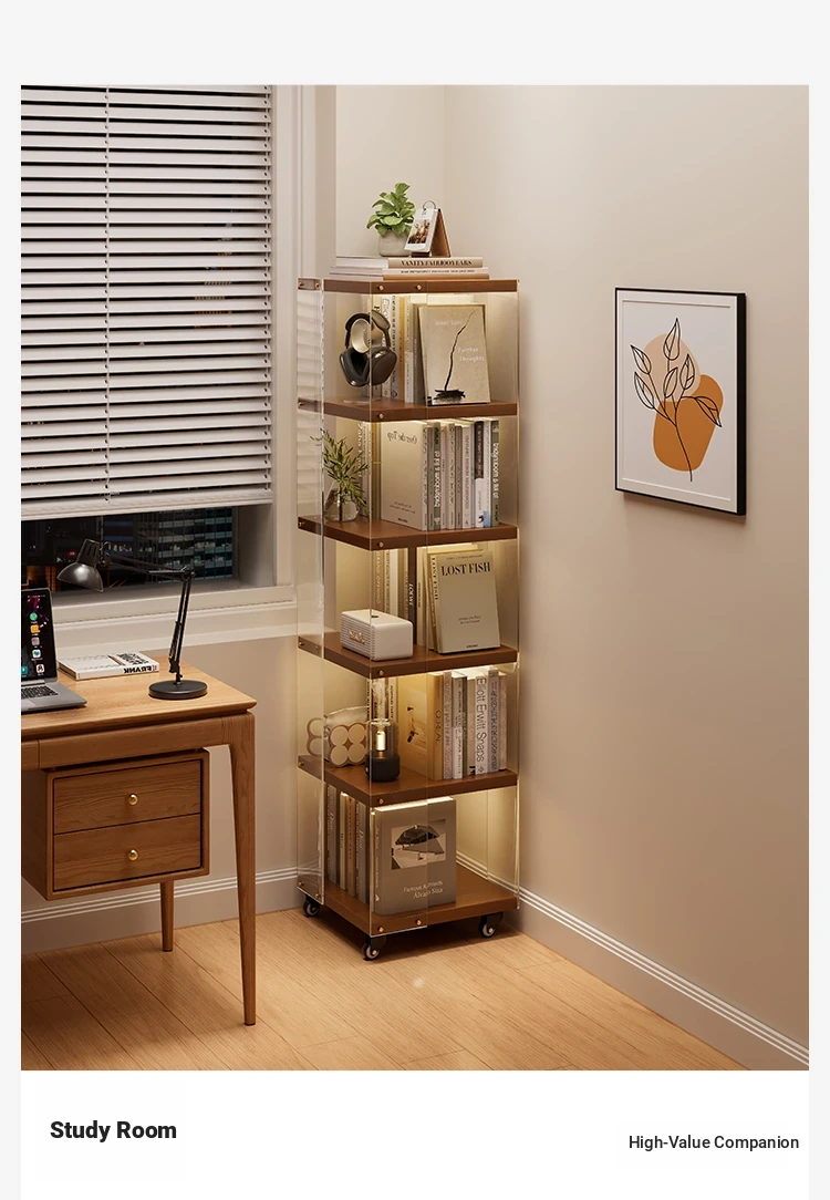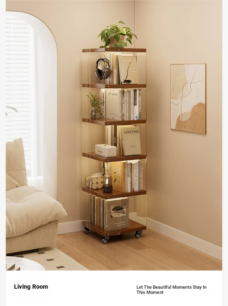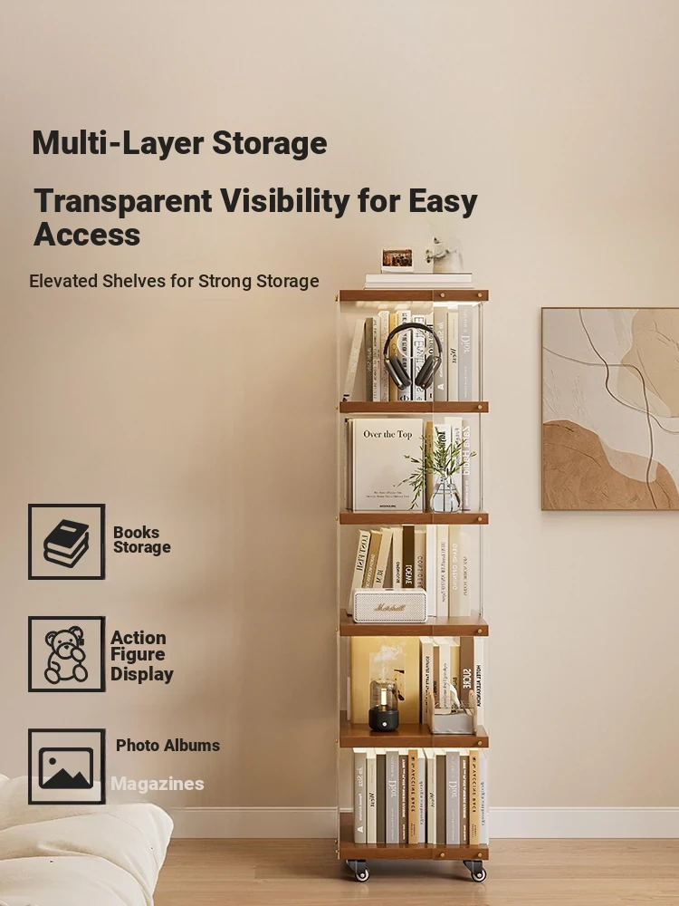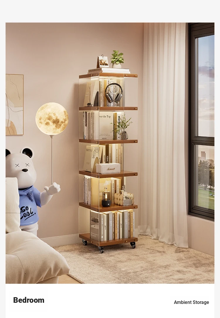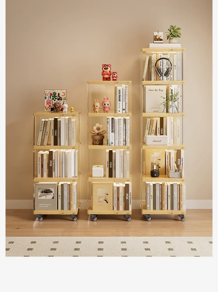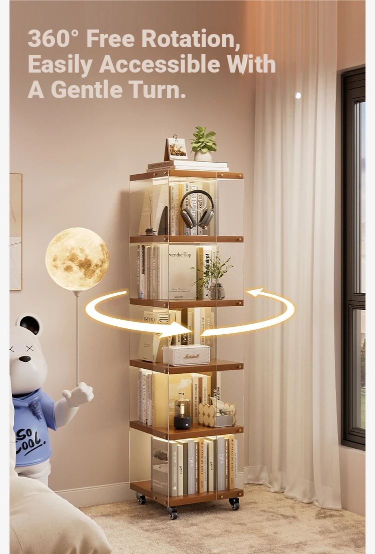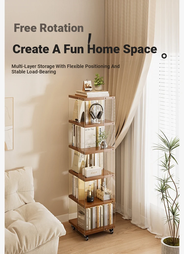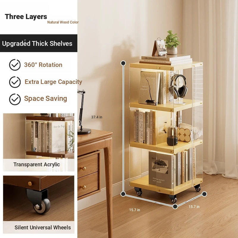 Rotating Bookshelf Floor Storage Rack - Simple Solid Wood Bookcase for Home Use, Children's Display Shelf, Living Room Organizer
