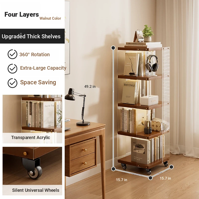 [HD Transparent] Four-Layer-Walnut Color (360-degree Rotate) Removable
